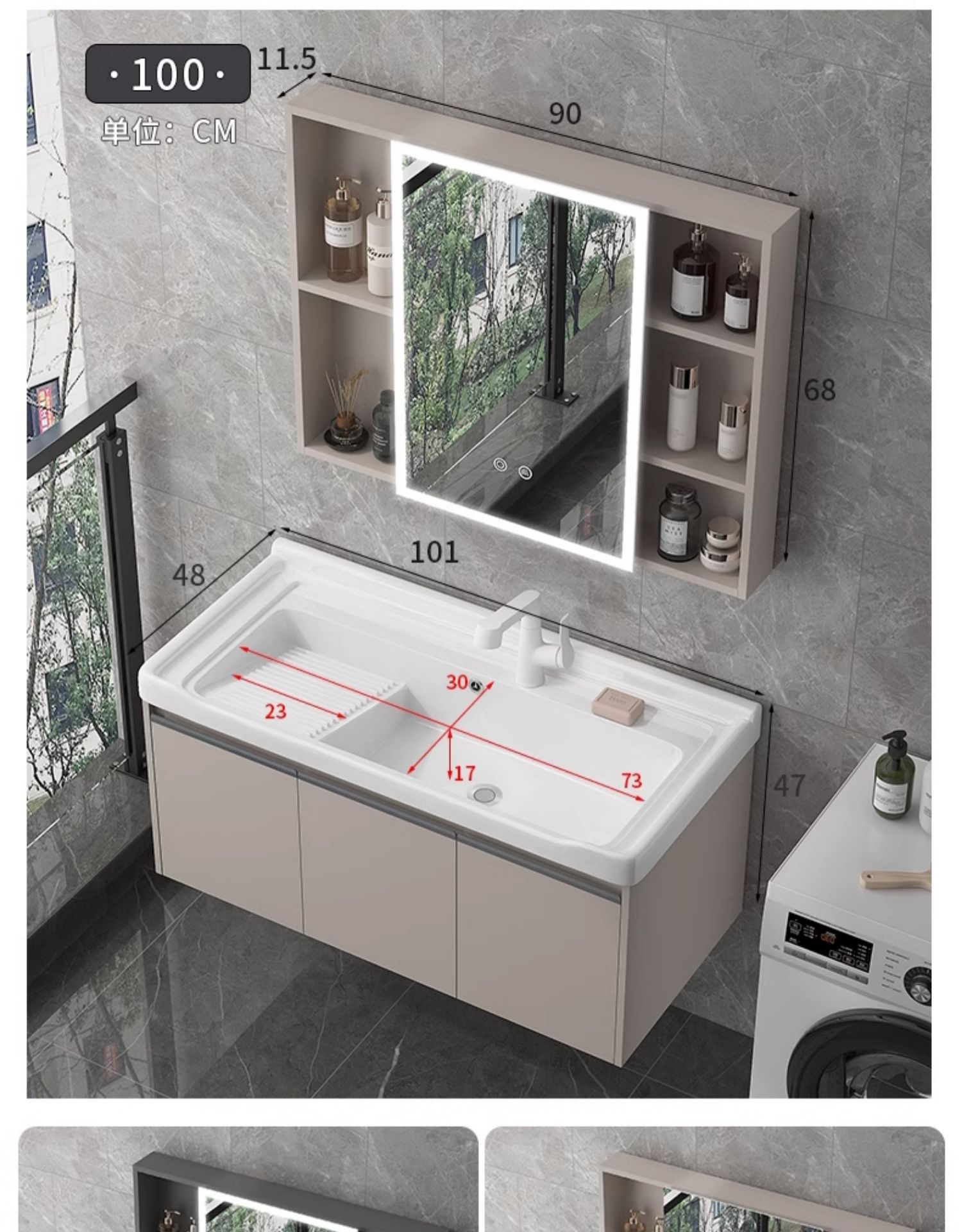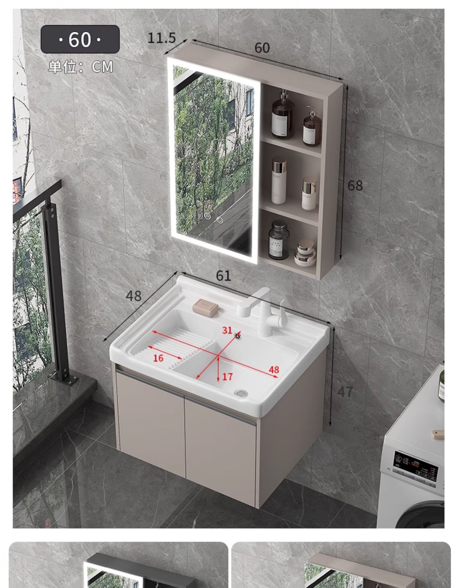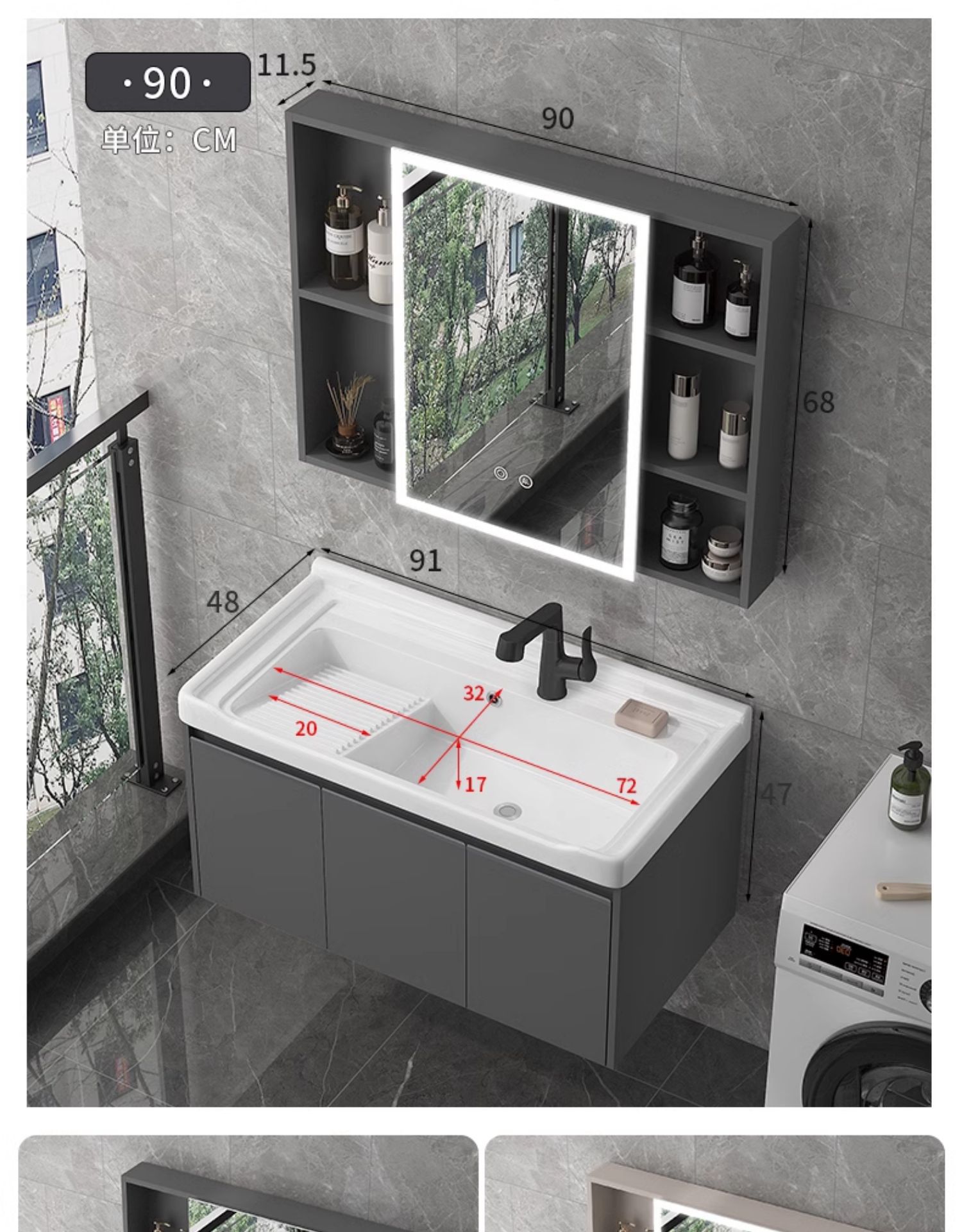 lavabo de lavandería de balcón tipo casa pequeña lavabo armario combinado con placa de fricción cerámica integrada lavabo de lavandería tipo colgante