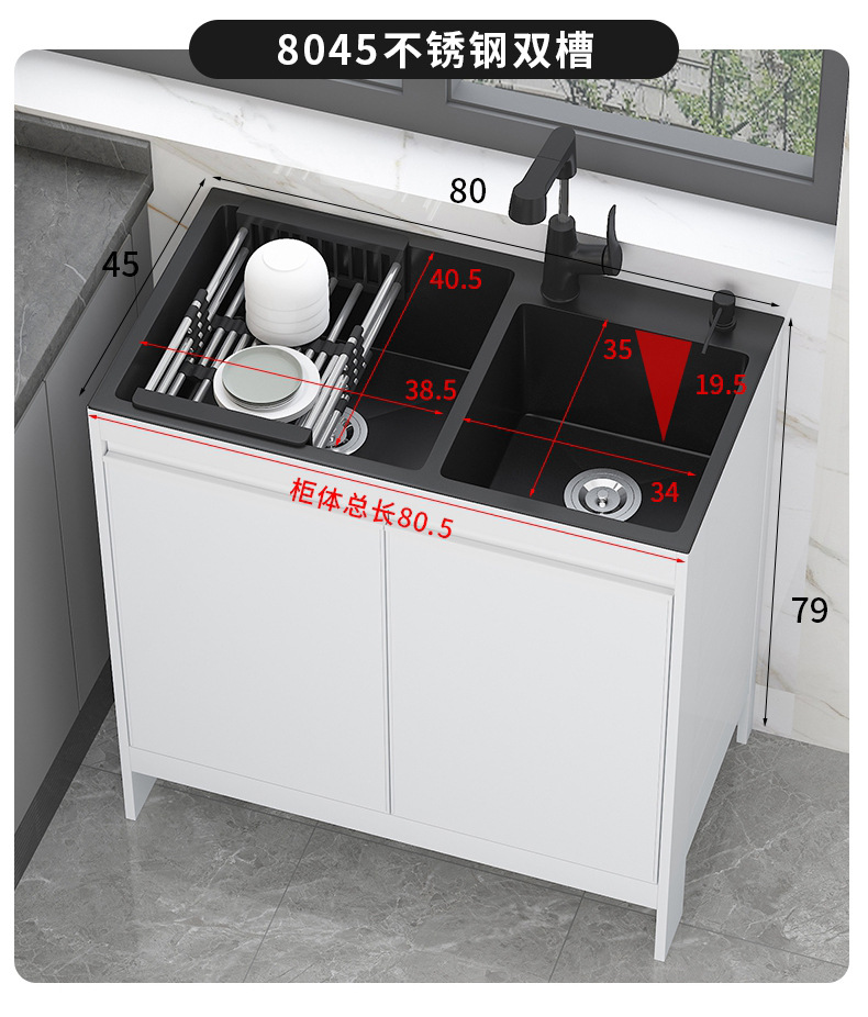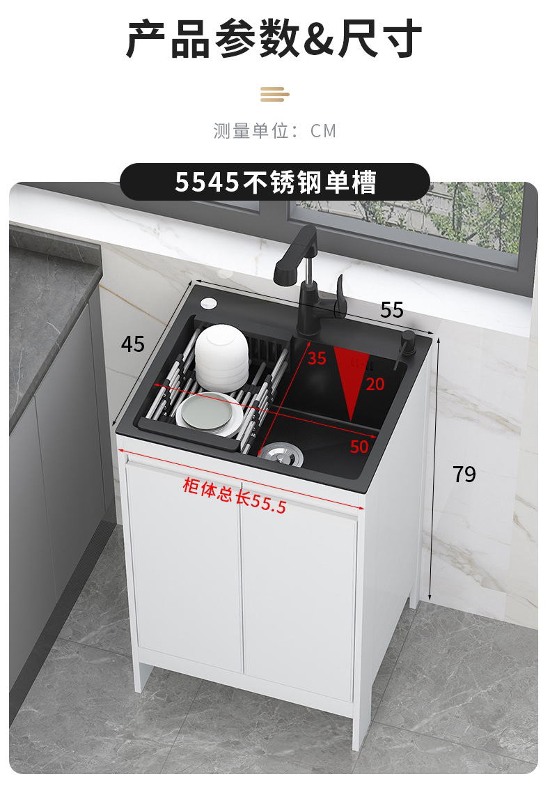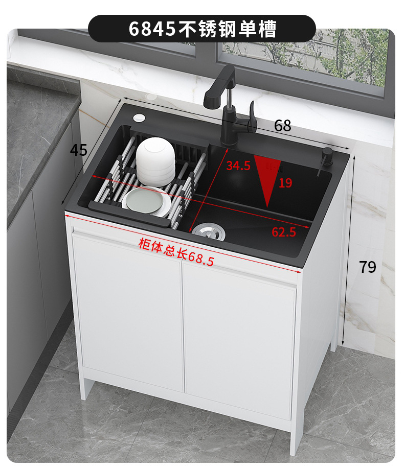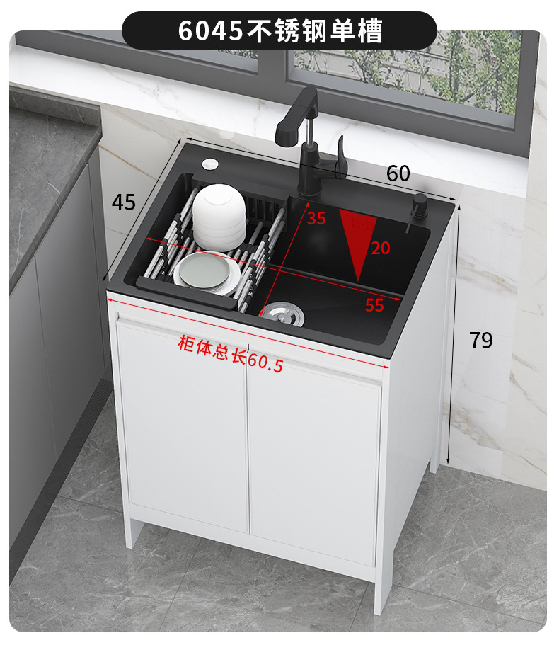 lavabo de acero inoxidable de una sola ranura balcón tipo piso integrado espacio lavabo armario de lavabo de cocina lavabo de platos