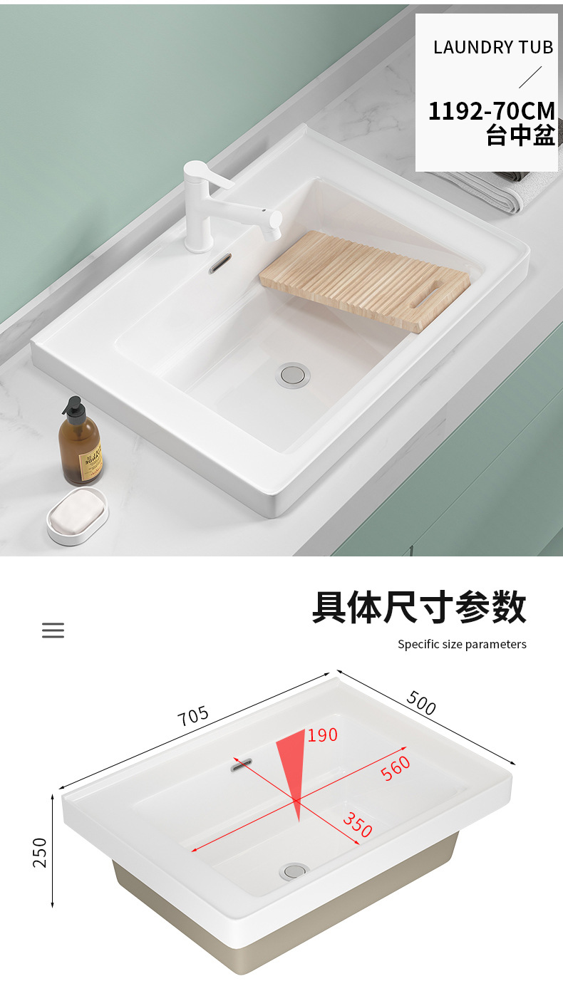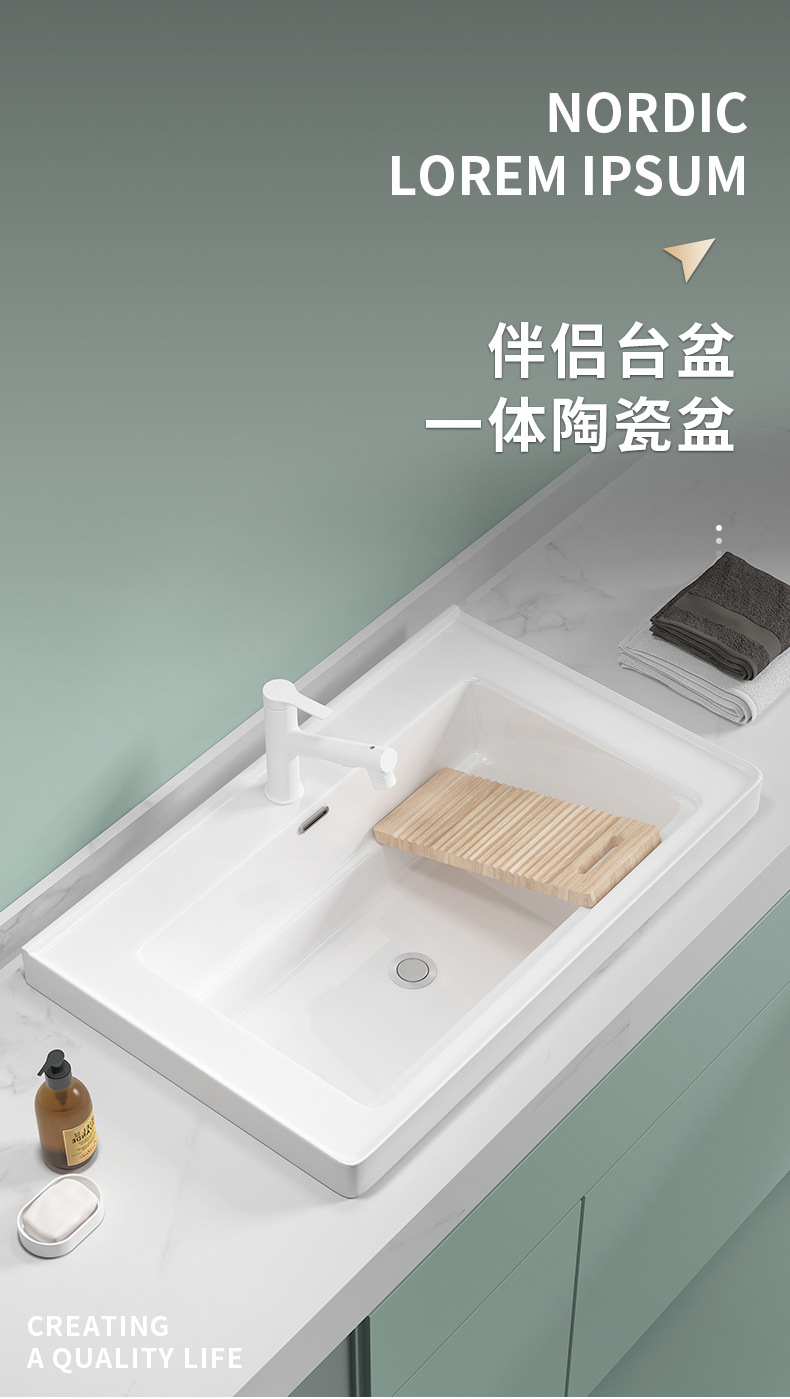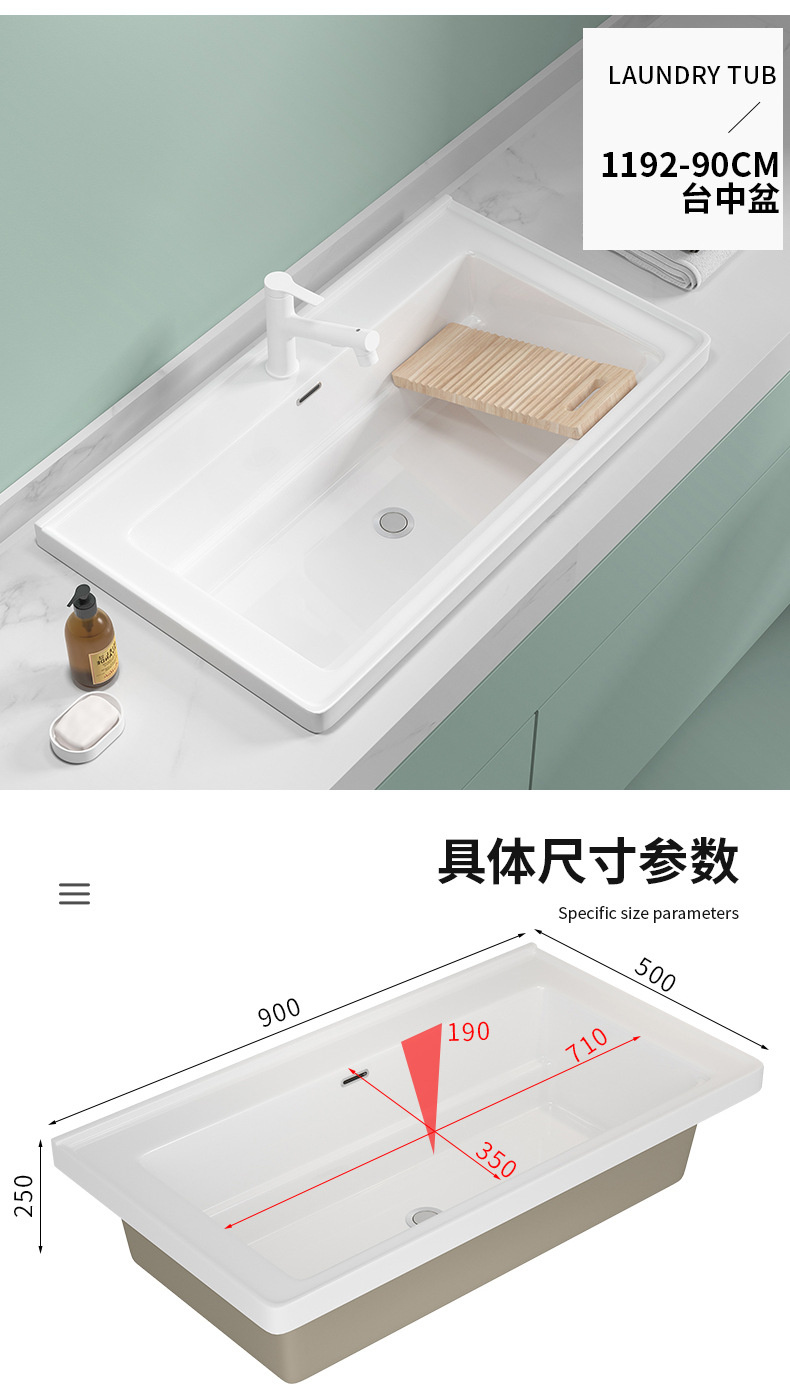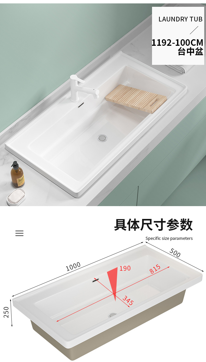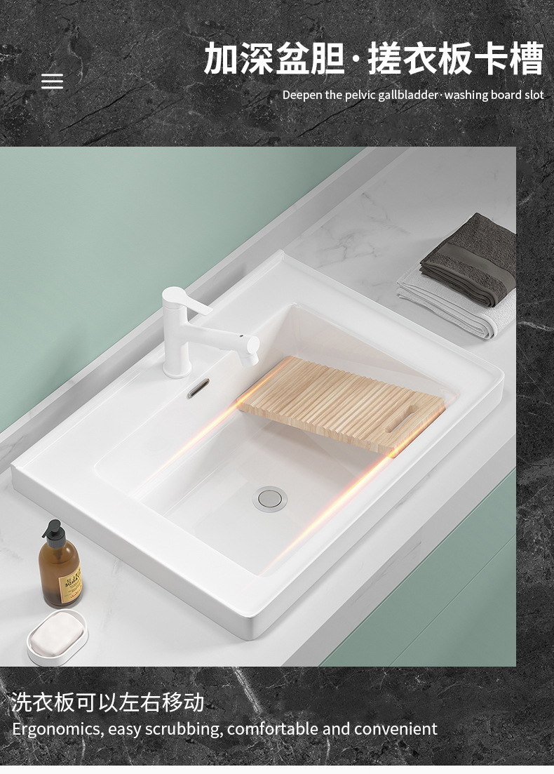 lavabo de balcón lavabo de ranura profunda tablero de lavabo cerámico semicrustado integral lavabo de mano único tablero de lavabo doméstico con tablero de fricción