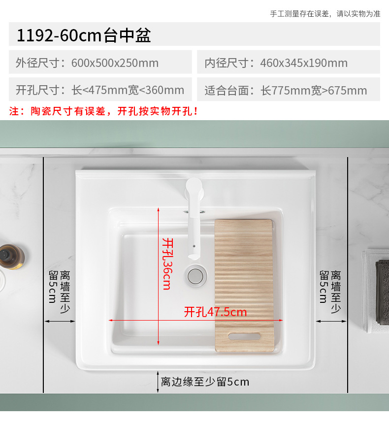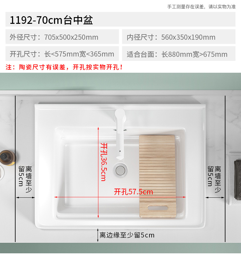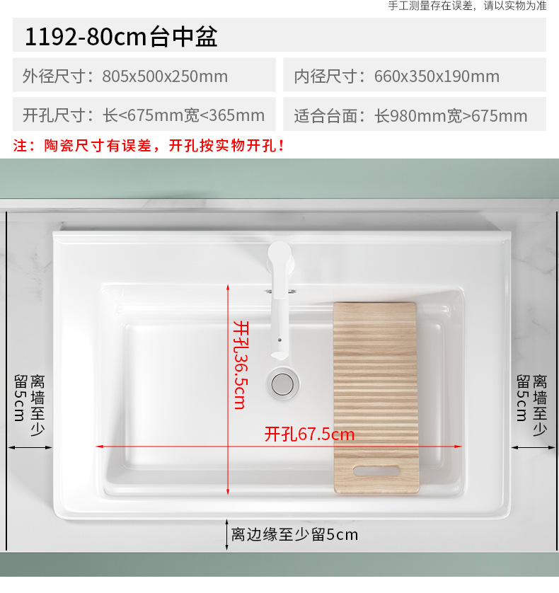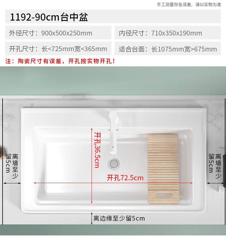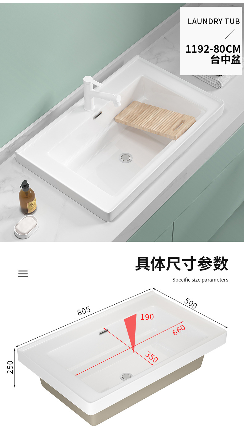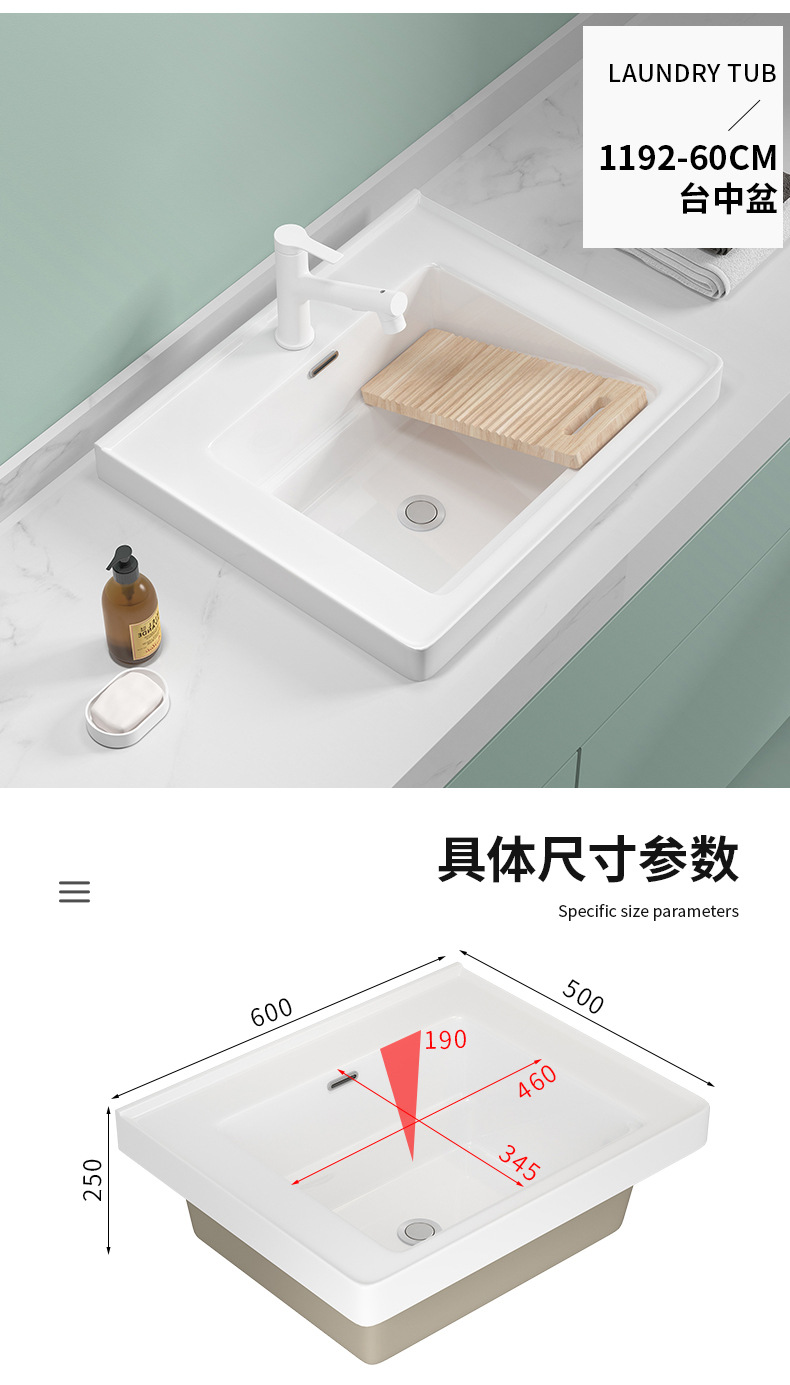 lavabo de balcón lavabo de ranura profunda tablero de lavabo cerámico semicrustado integral lavabo de mano único tablero de lavabo doméstico con tablero de fricción