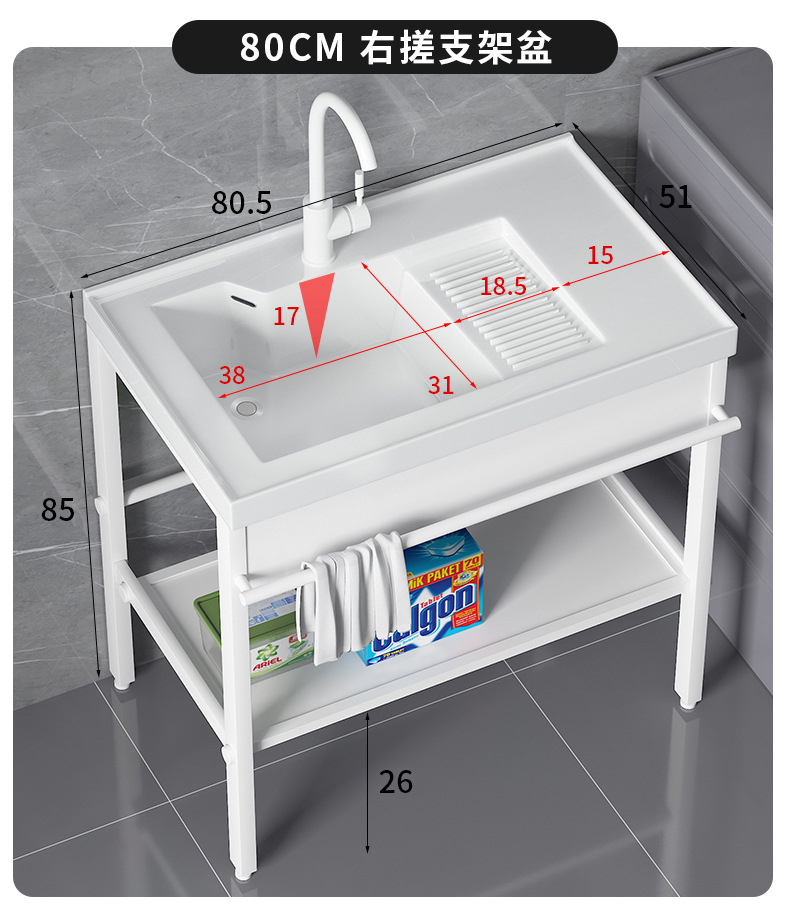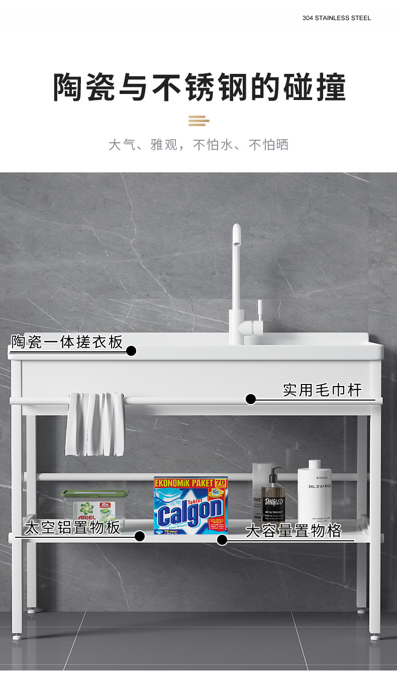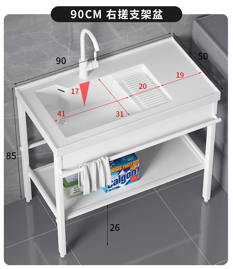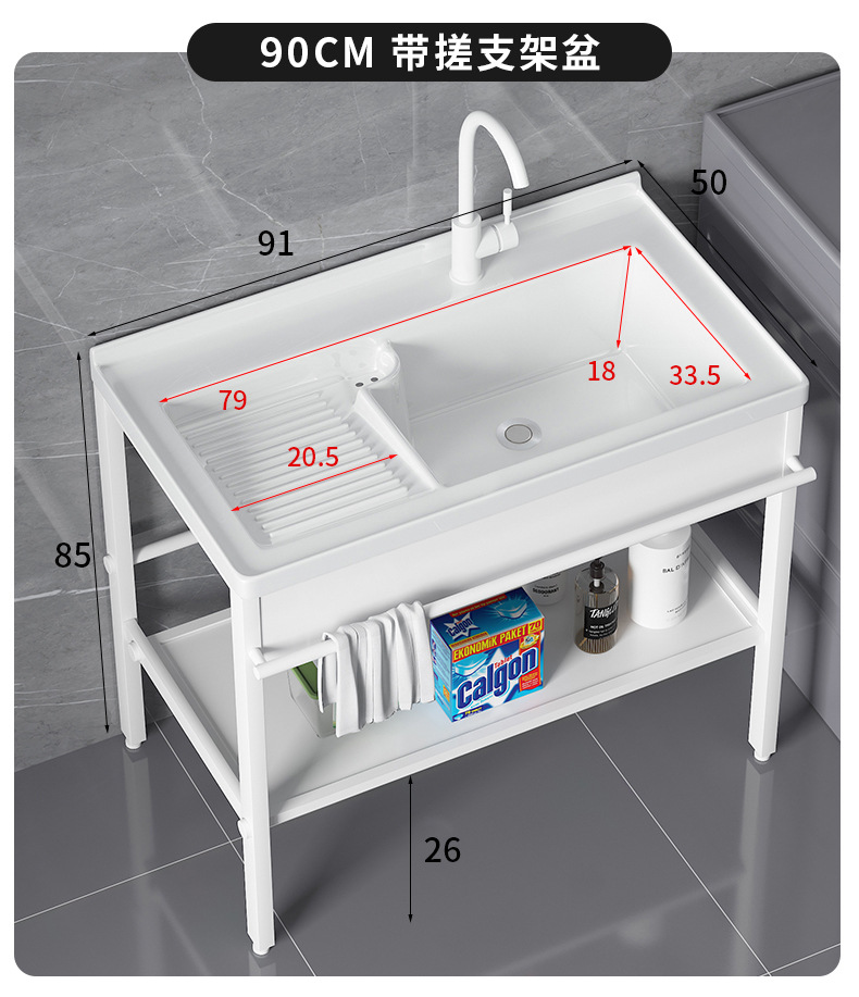 lavabo de cerámica con tablero de fricción tipo piso al aire libre soporte de acero inoxidable lavabo de manos balcón lavabo integrado lavabo de mesa