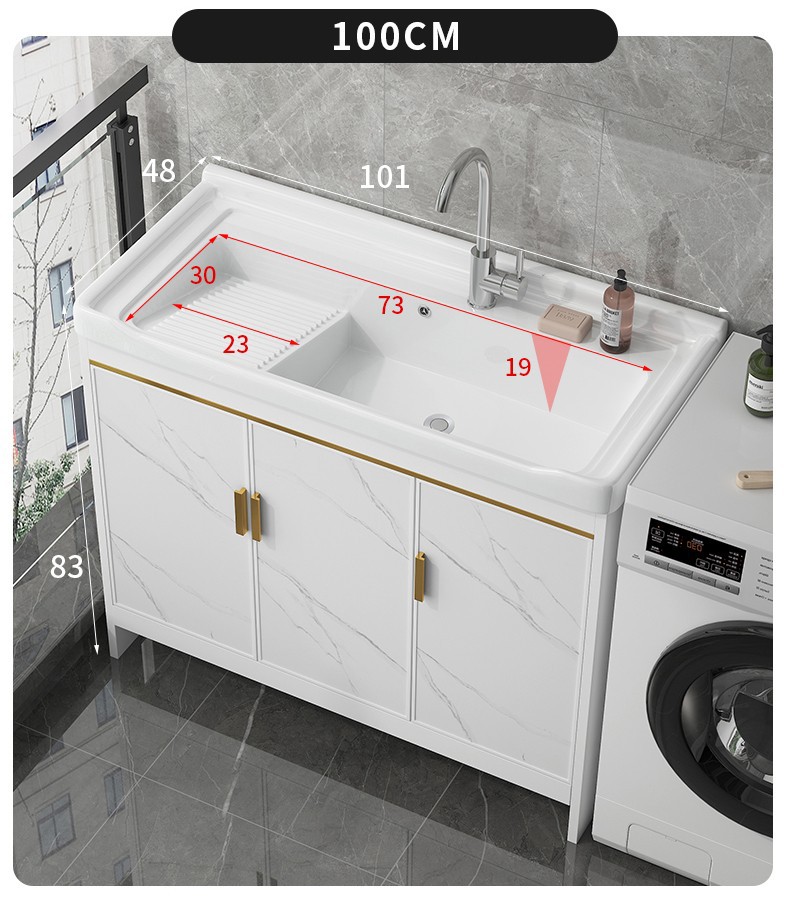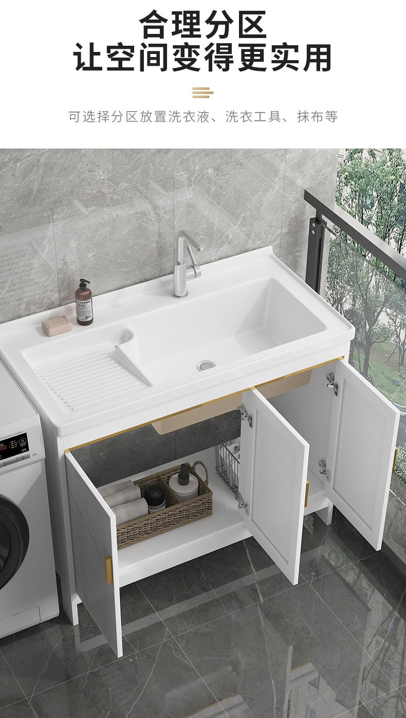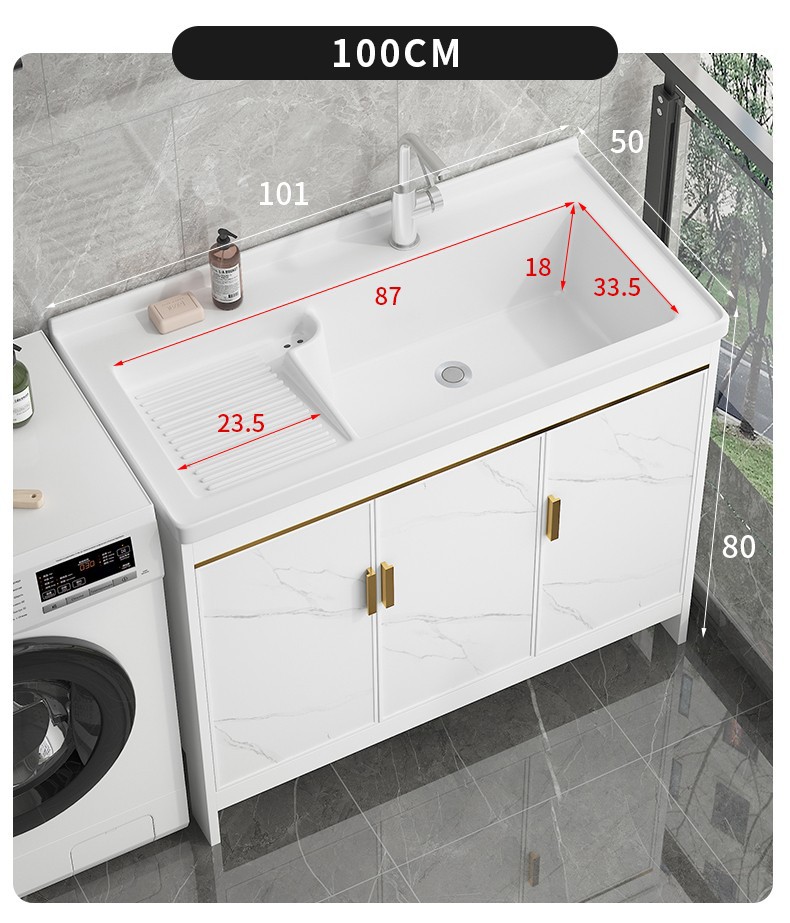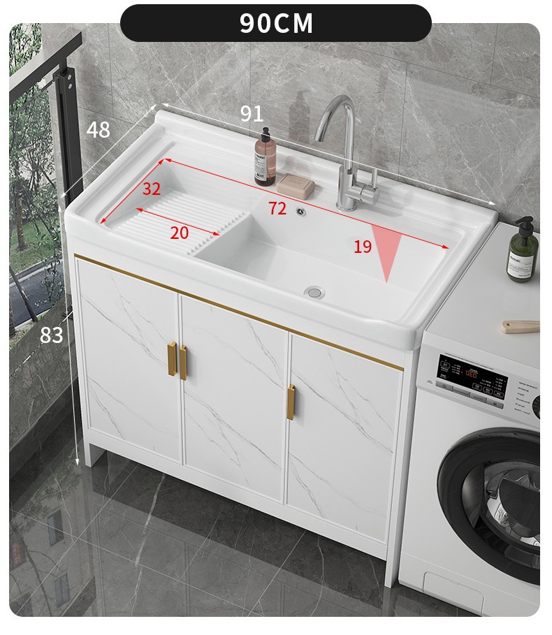 lavabo de balcón lavabo de mano con tablero de fricción armario de aluminio espacio combinado lavabo de lavandería integral al aire libre