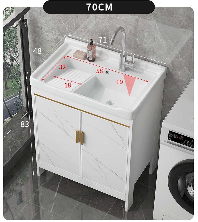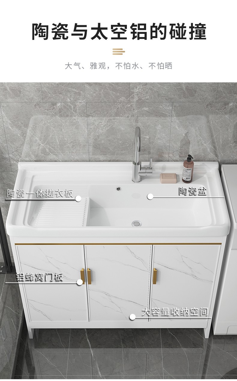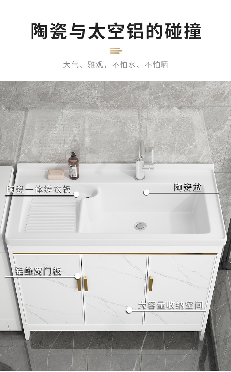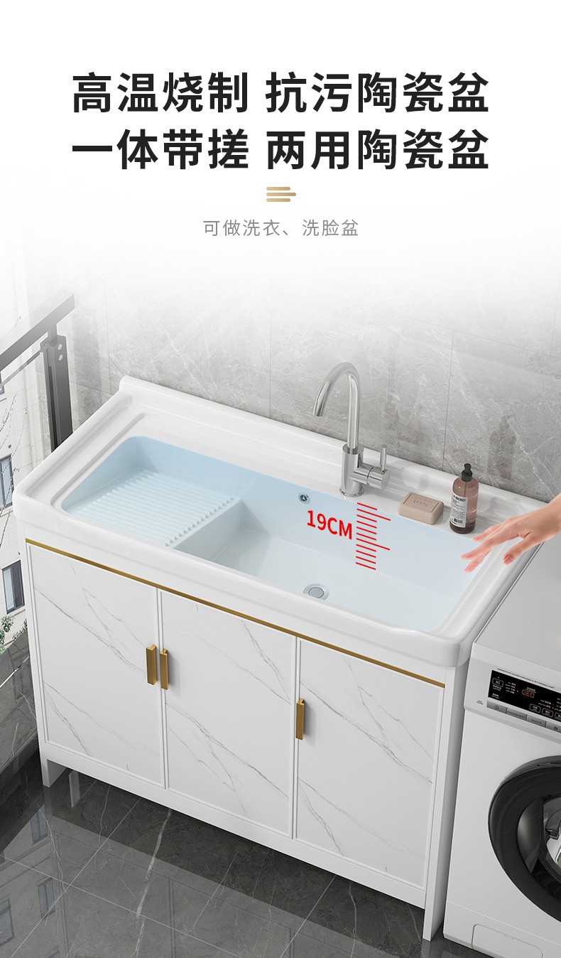 lavabo de balcón lavabo de mano con tablero de fricción armario de aluminio espacio combinado lavabo de lavandería integral al aire libre