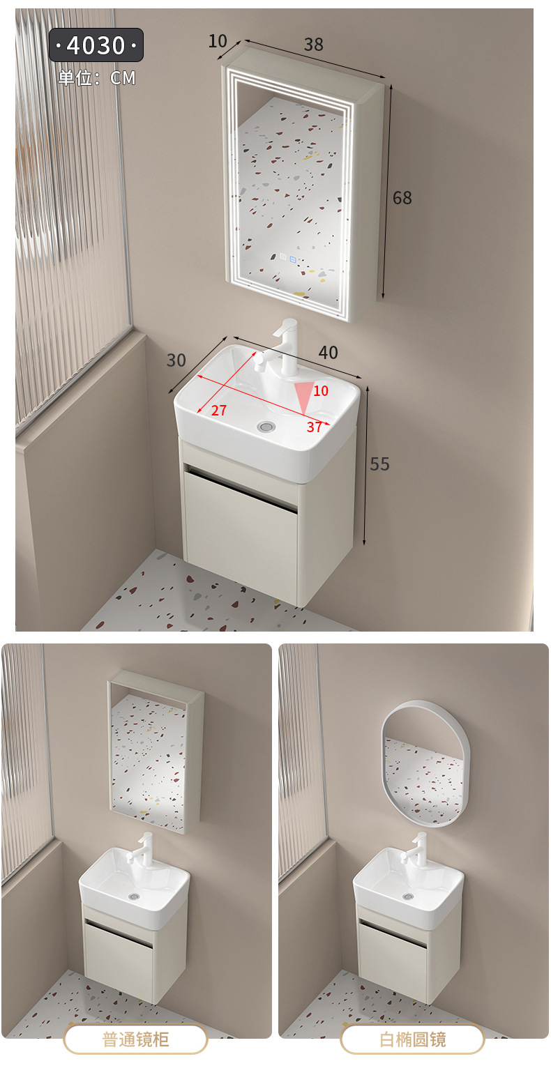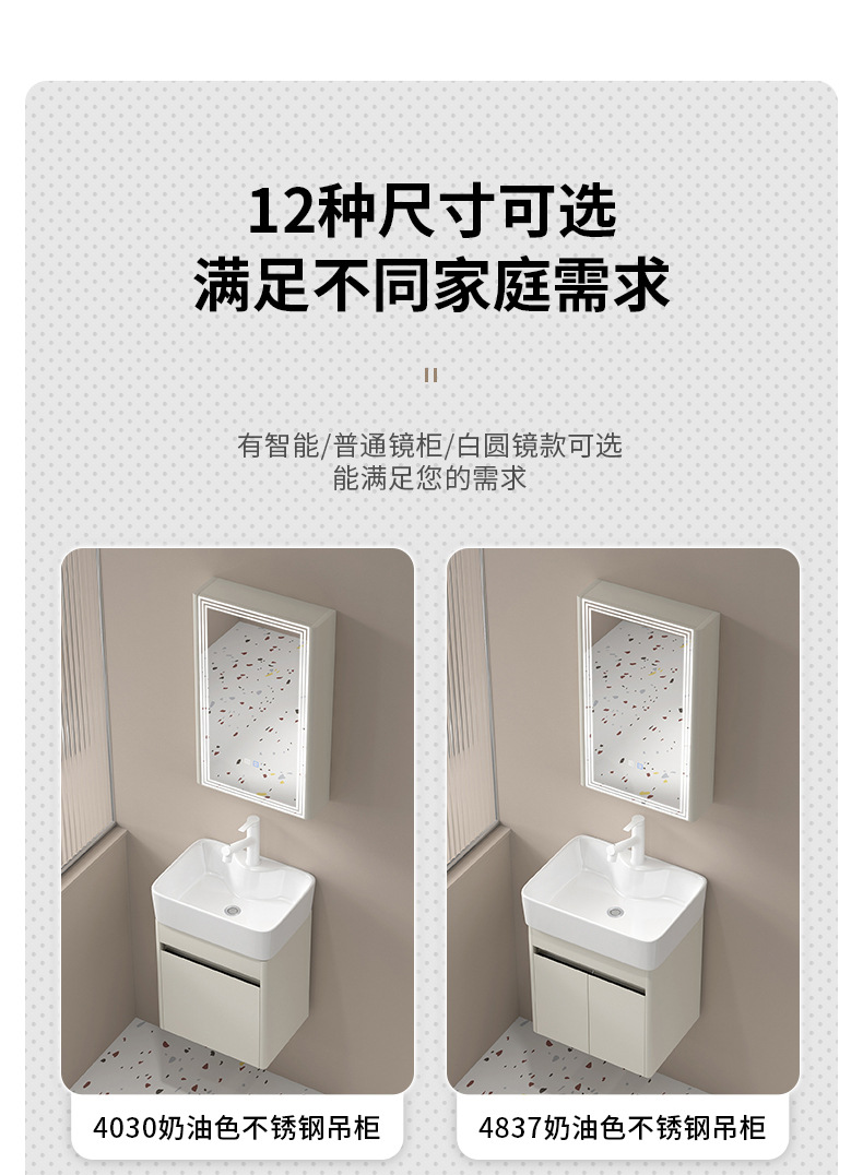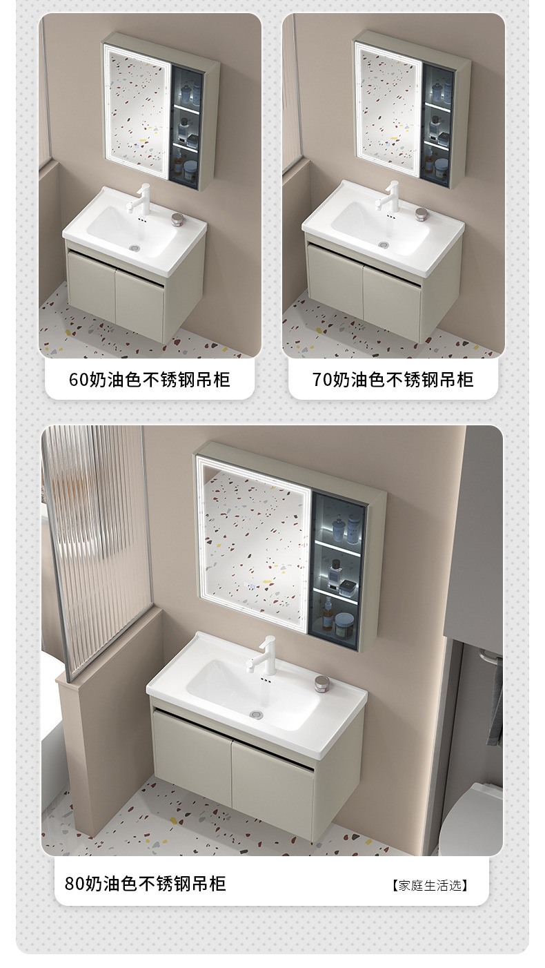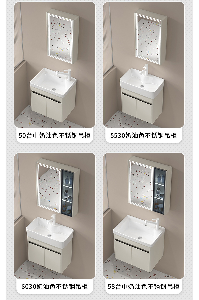 Cuenca de ángulo redondeado tipo pequeño gabinete de lavabo 304 acero inoxidable tipo pared lavabo cerámico integral lavabo