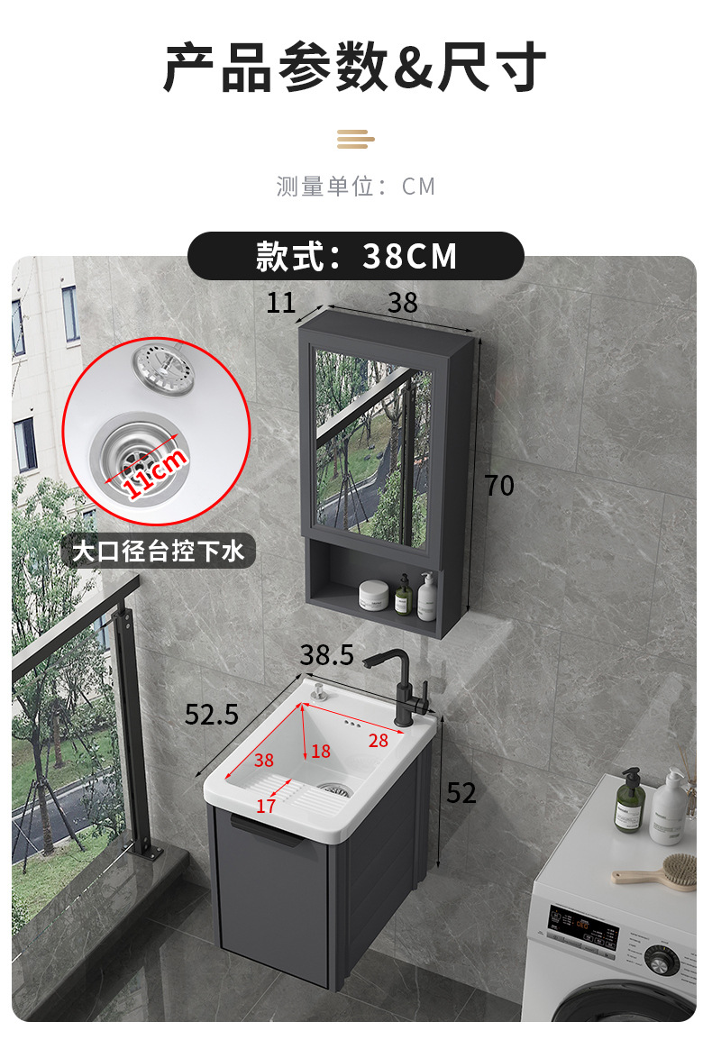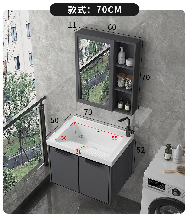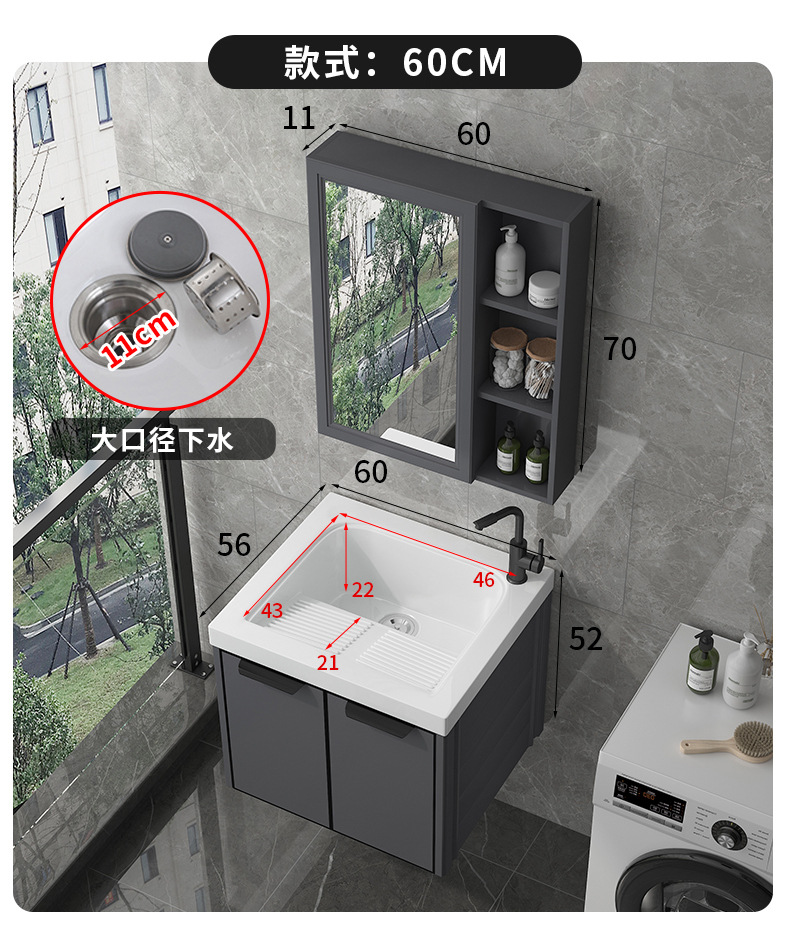 lavabo de lavandería de balcón lavabo de tipo pequeño lavabo de lavandería colgante lavabo integrado gabinete combinado lavabo con tabla de fricción lavabo