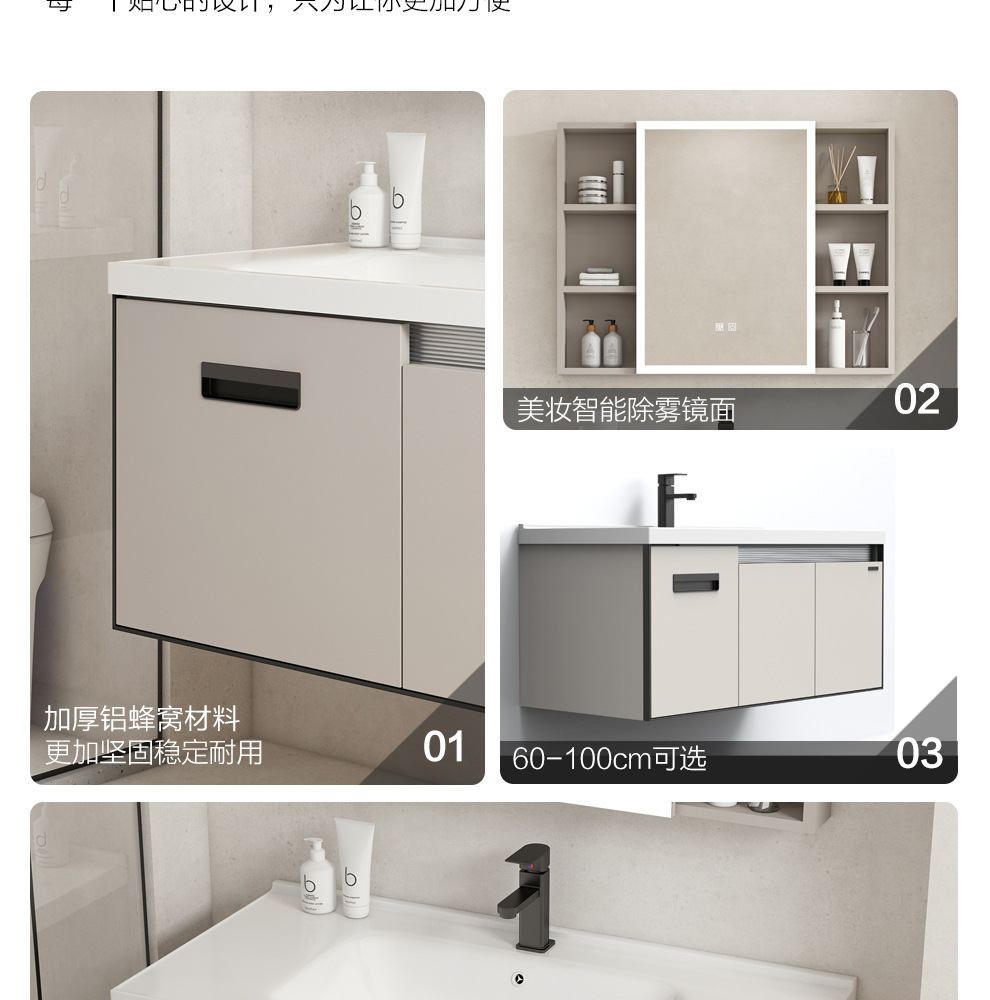 simple y de moda espacio aluminio panal de aluminio gabinete de baño combinado todo en cerámica meseta debajo de la mesa mesa de lavabo doméstico