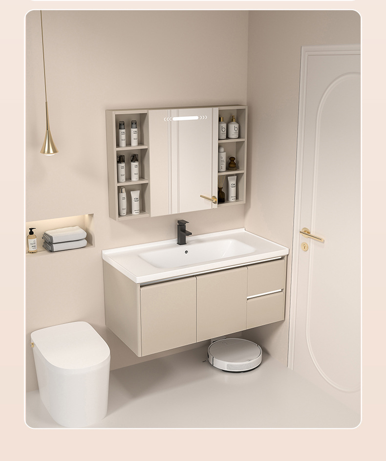 Cabinet de baño de abeja de aire crema combinación moderna simple lavabo inodoro sanitario lavabo todo en uno lavabo