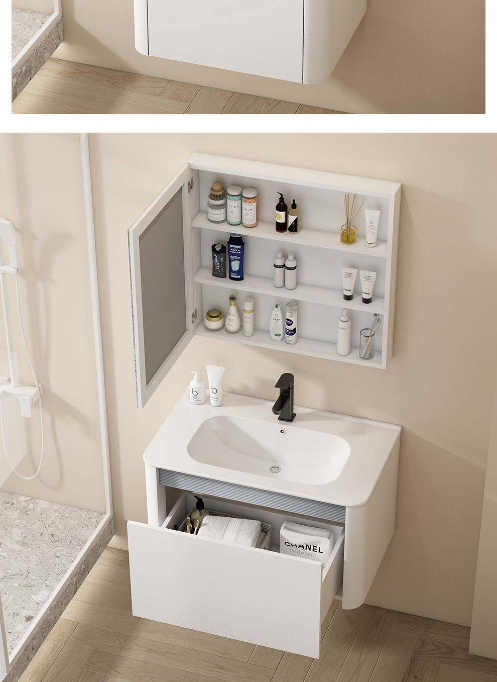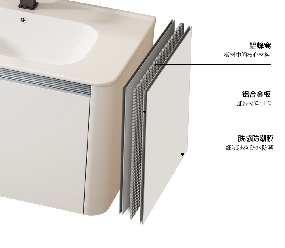 Leche blanca abeja de aluminio espacio cajón de aluminio gabinete de baño lavabo lavabo integrado lavabo