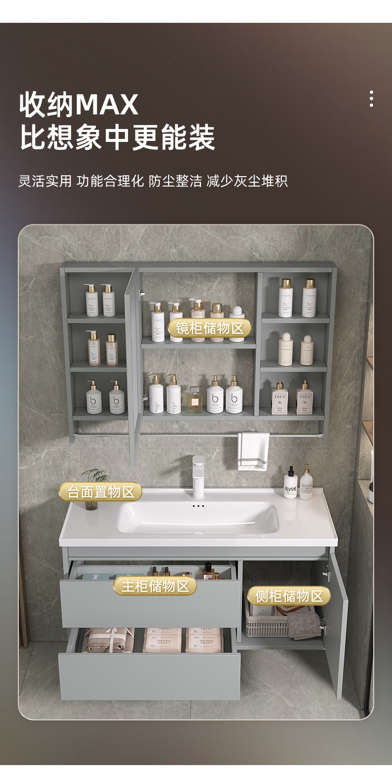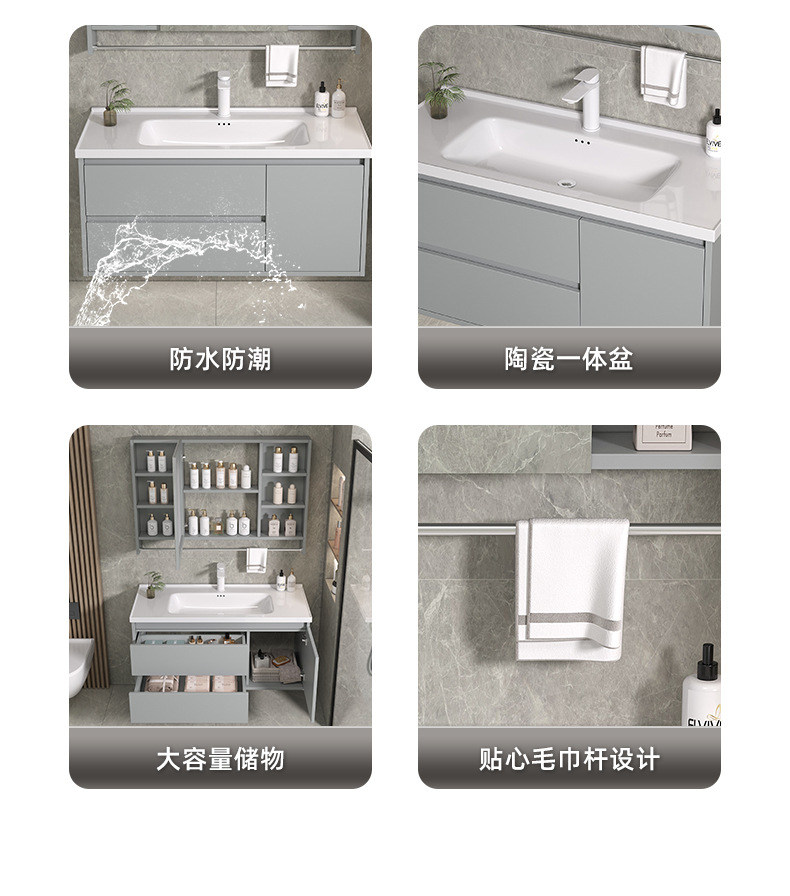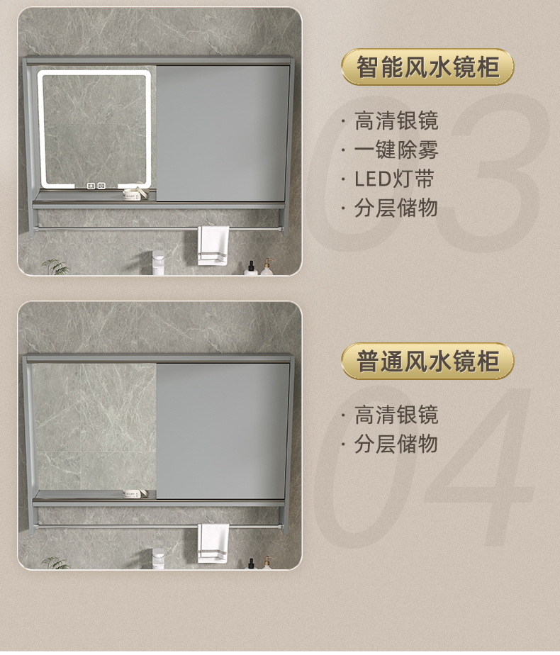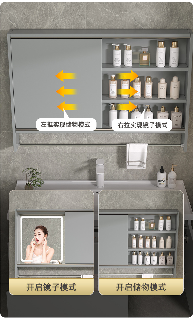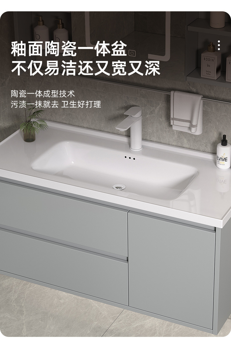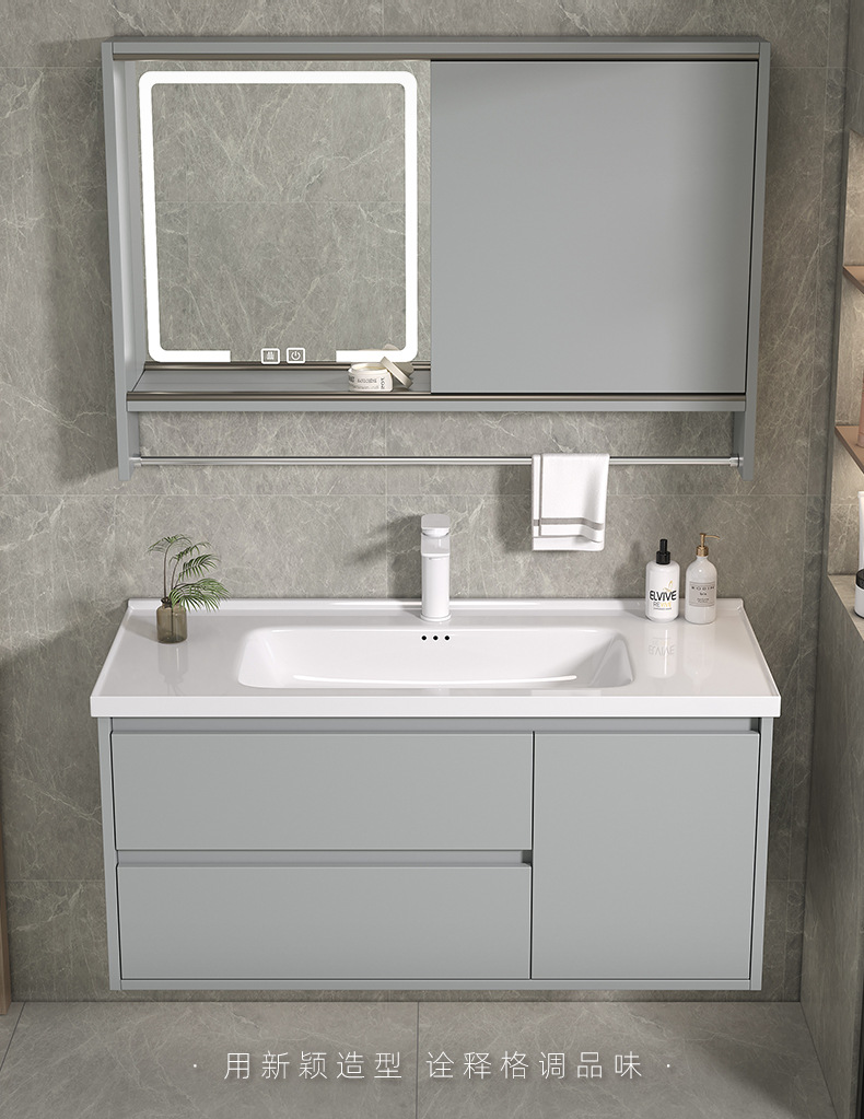 Espejo de Feng Shui oculto tipo push-pull de cerámica integral lavabo gabinete de baño combinado lavabo de baño lavabo de manos gabinete lavabo
