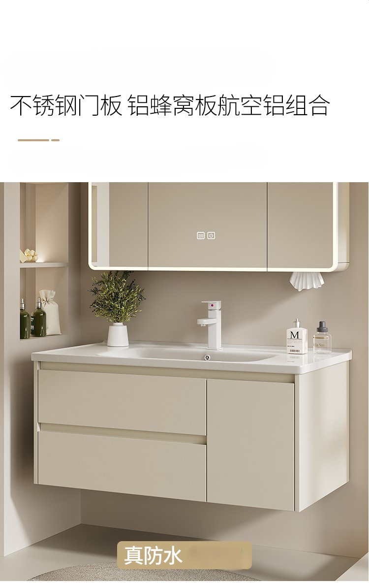 gabinete de baño de acero inoxidable crema viento cerámica integral lavabo gabinete lavabo combinación lavabo