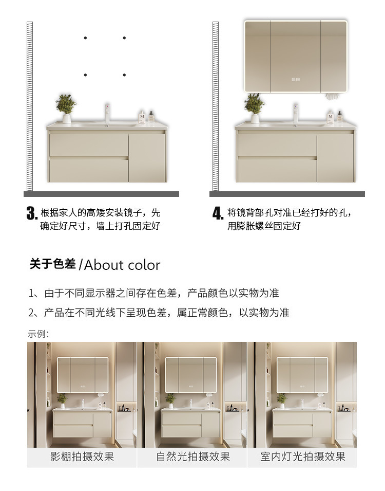 | Color | 60 (doble cajón) cuenca de cerámica + sin gabinete de espejo, 60 (doble cajón) cuenca de cerámica + gabinete de espejo general, 60 (doble cajón) cuenca de cerámica + espejo inteligente |