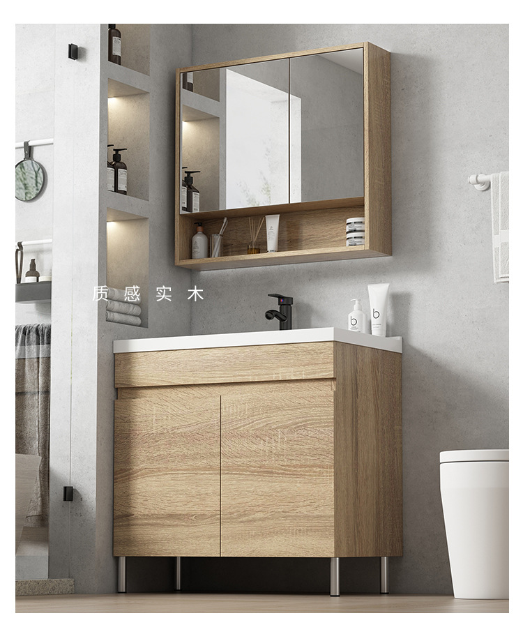 gabinete de baño de madera sólida gabinete combinado de baño tipo piso gabinete lavabo balcón con tabla de fricción lavabo lavabo lavabo