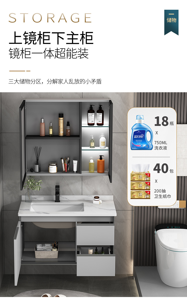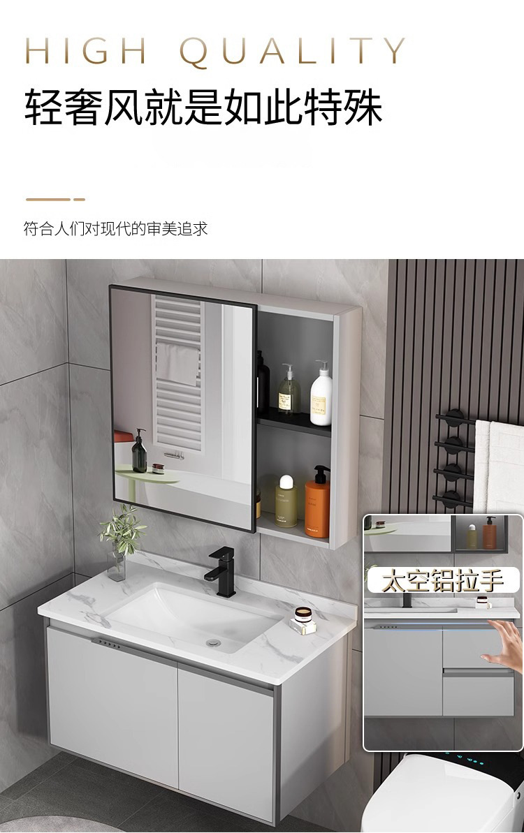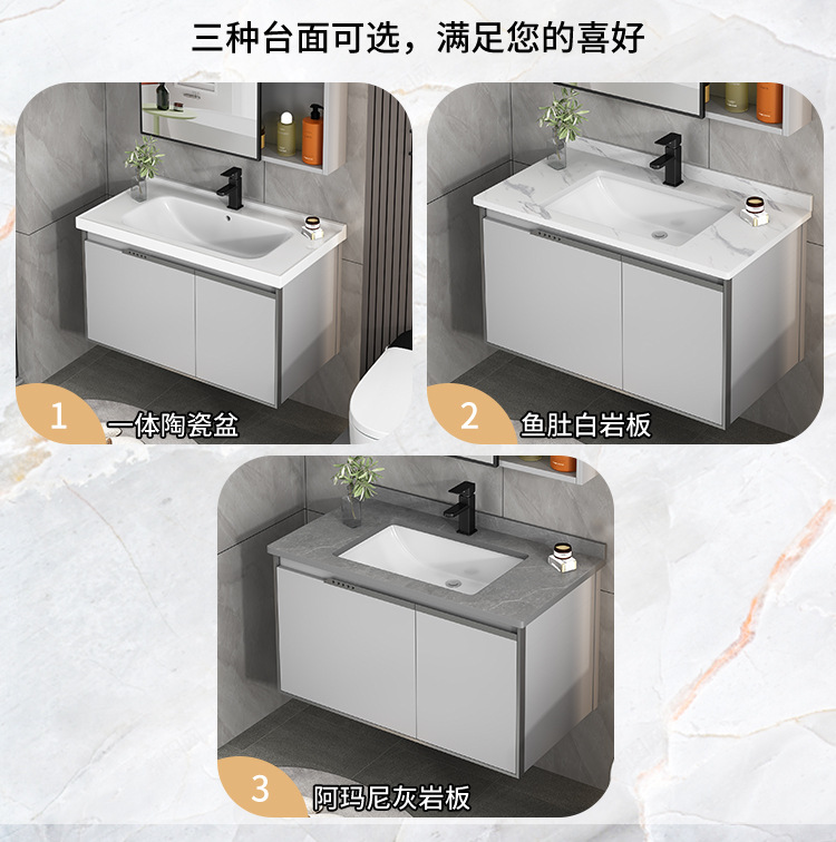 Engrosado espacio de aluminio gabinete de baño combinación lavabo piscina baño integrado lavabo de cerámica mesa de lavado