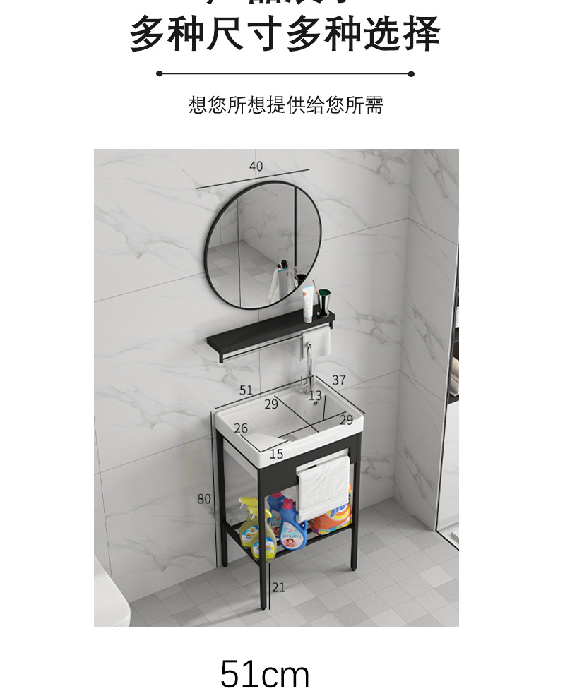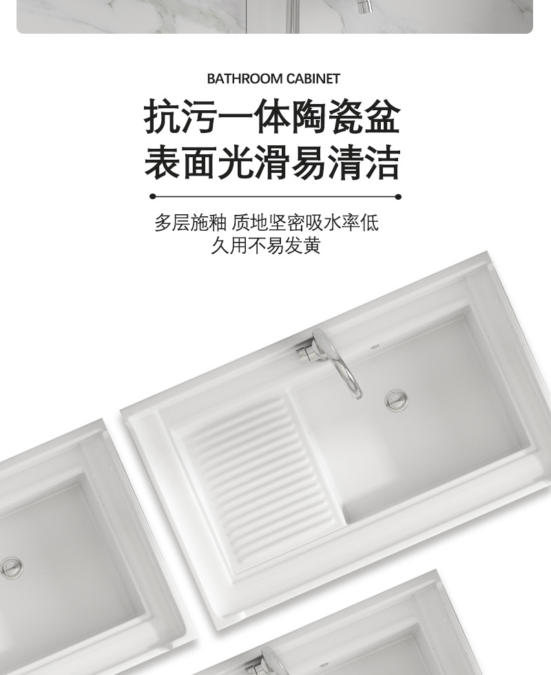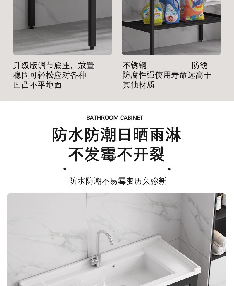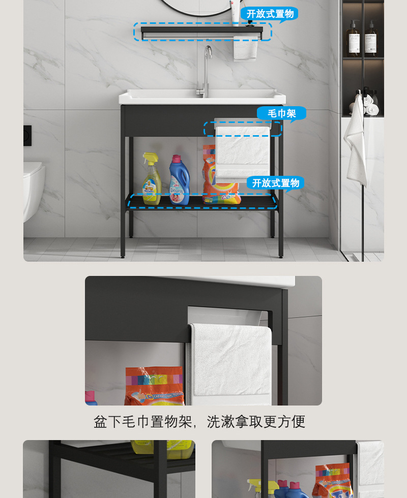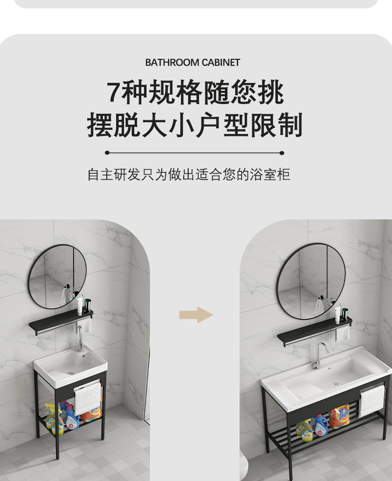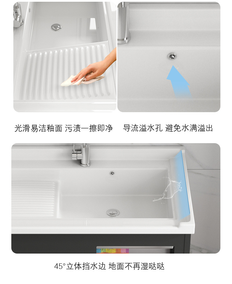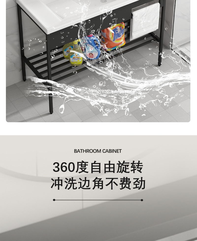 Armario negro de acero inoxidable de pie de piso lavabo balcón lavabo integrado de baño de cerámica con lavabo