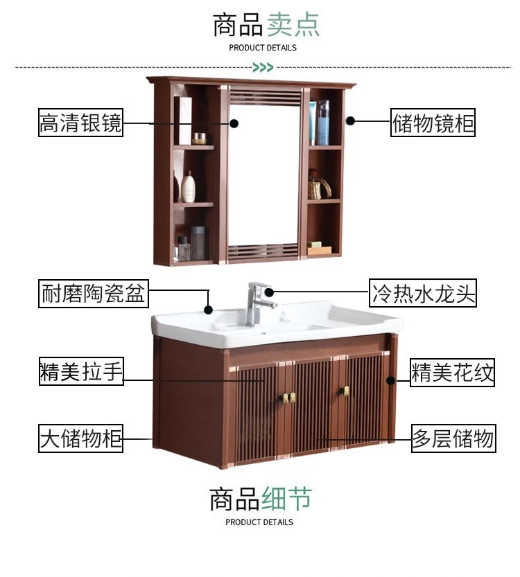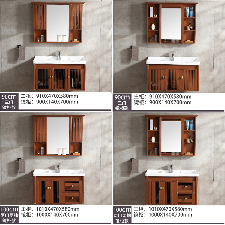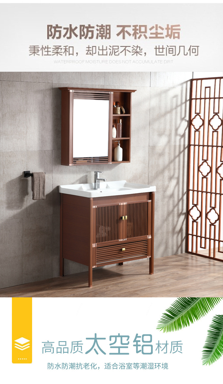 Nuevo gabinete de baño de estilo chino combinación espacio lavabo de aluminio gabinete lavabo de Baño Luz piso de lujo pequeño apartamento