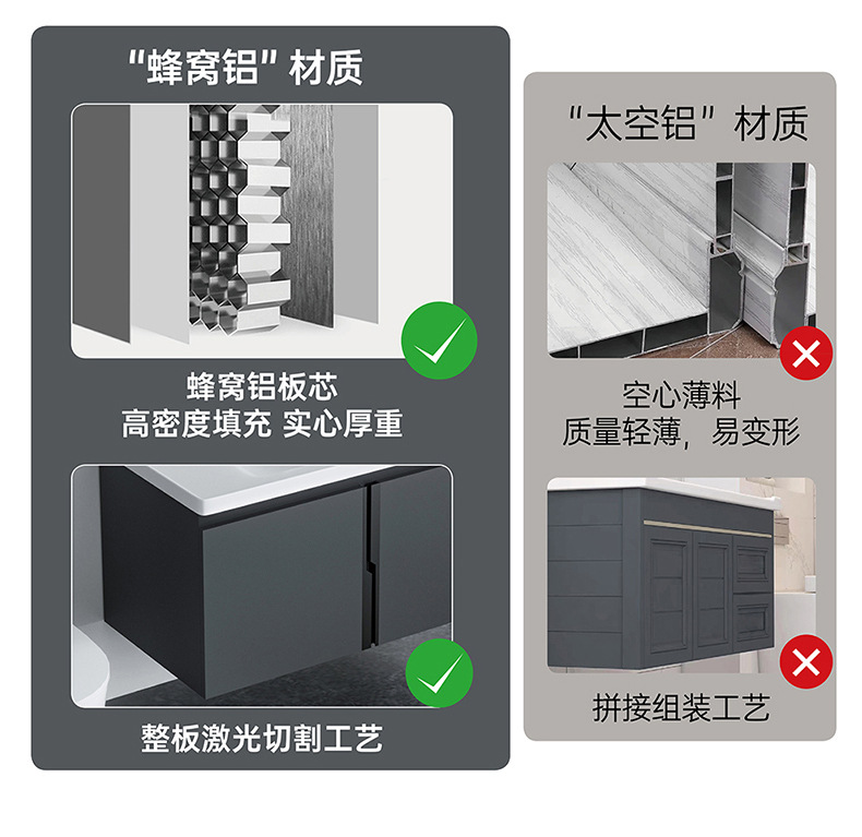 Panal de aleación de aluminio combinación gabinete de baño inodoro lavabo gabinete roca placa de cerámica mesa de lavado integrado