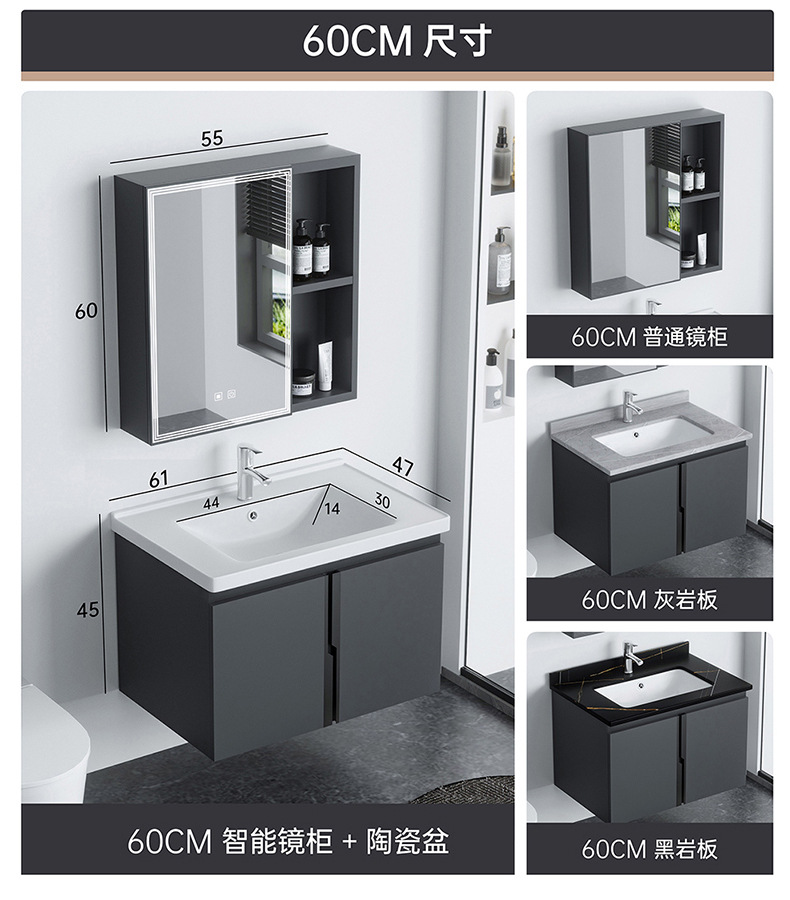 | color | Gris oscuro 60cm+lavabo cerámico+armario con espejo Gris oscuro 60cm+lavabo cerámico+armario con espejo inteligente Gris oscuro 60cm+pizarra negra+armario con espejo Gris oscuro 60cm |
