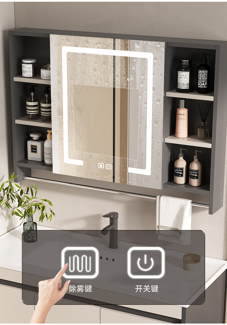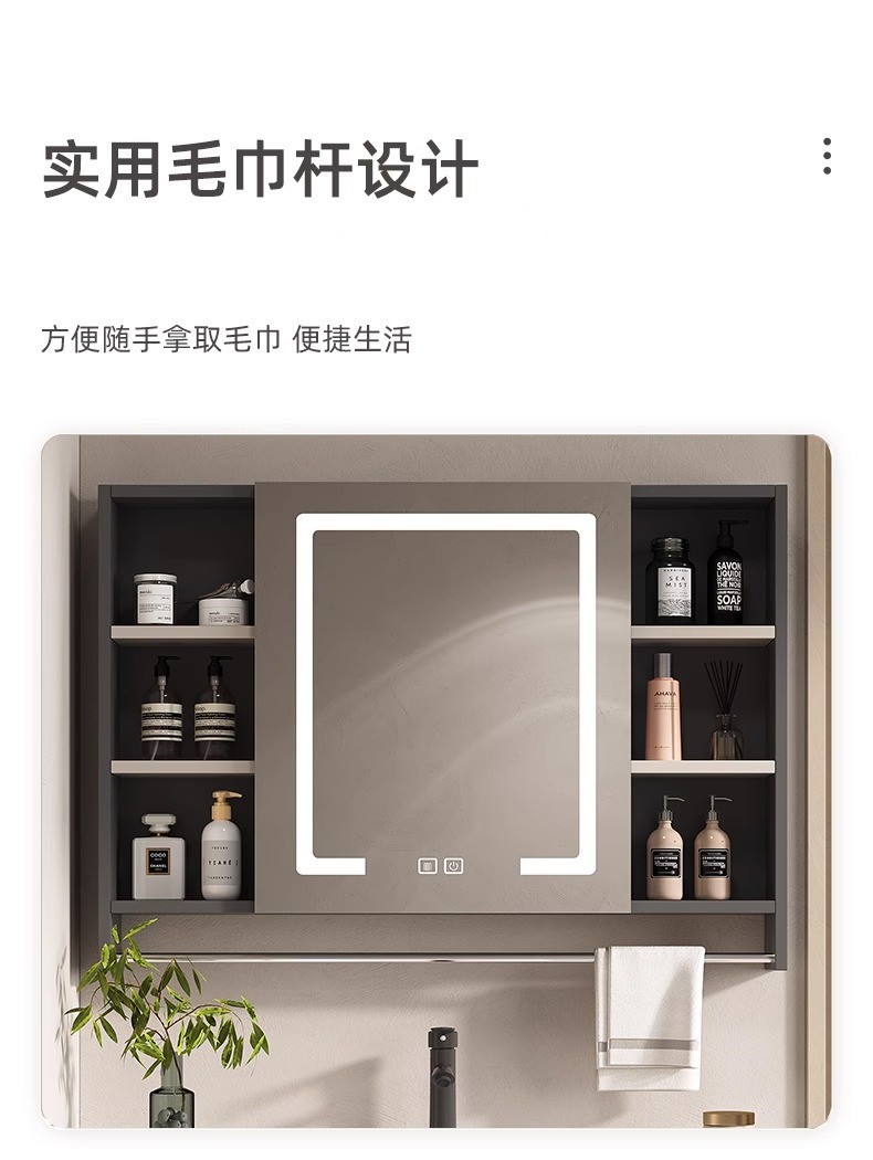 Feng Shui gabinete espejo gabinete de baño caja de espejo oculto combinación invisible baño inteligente Push-Pull gabinete de espejo montado en la pared