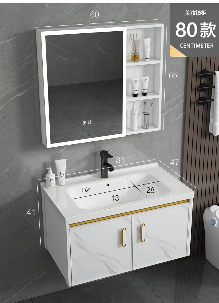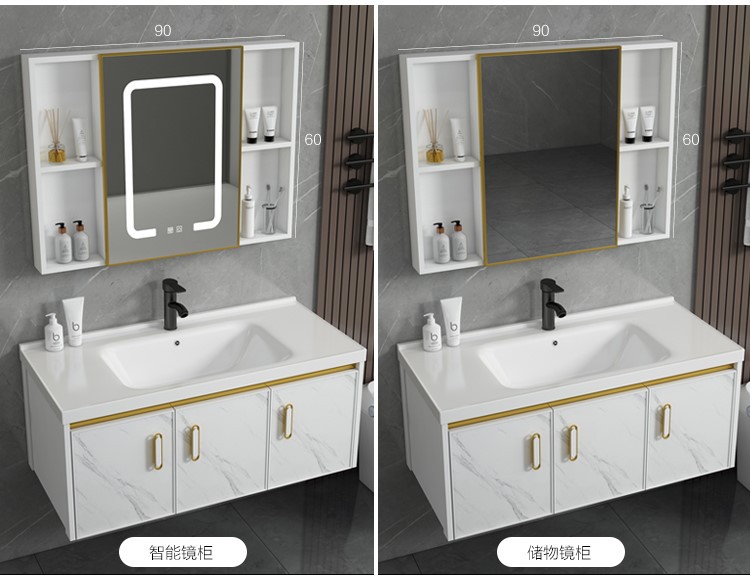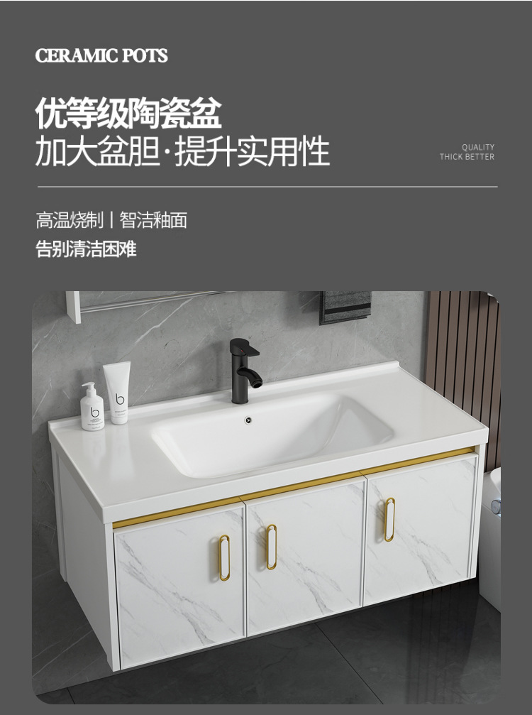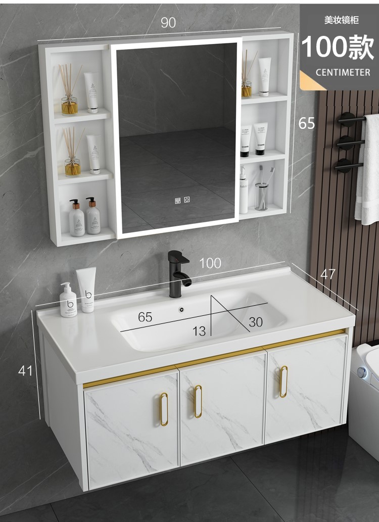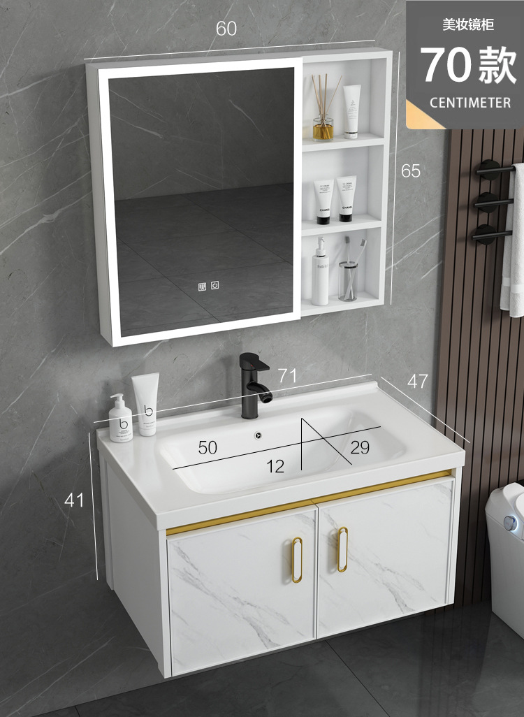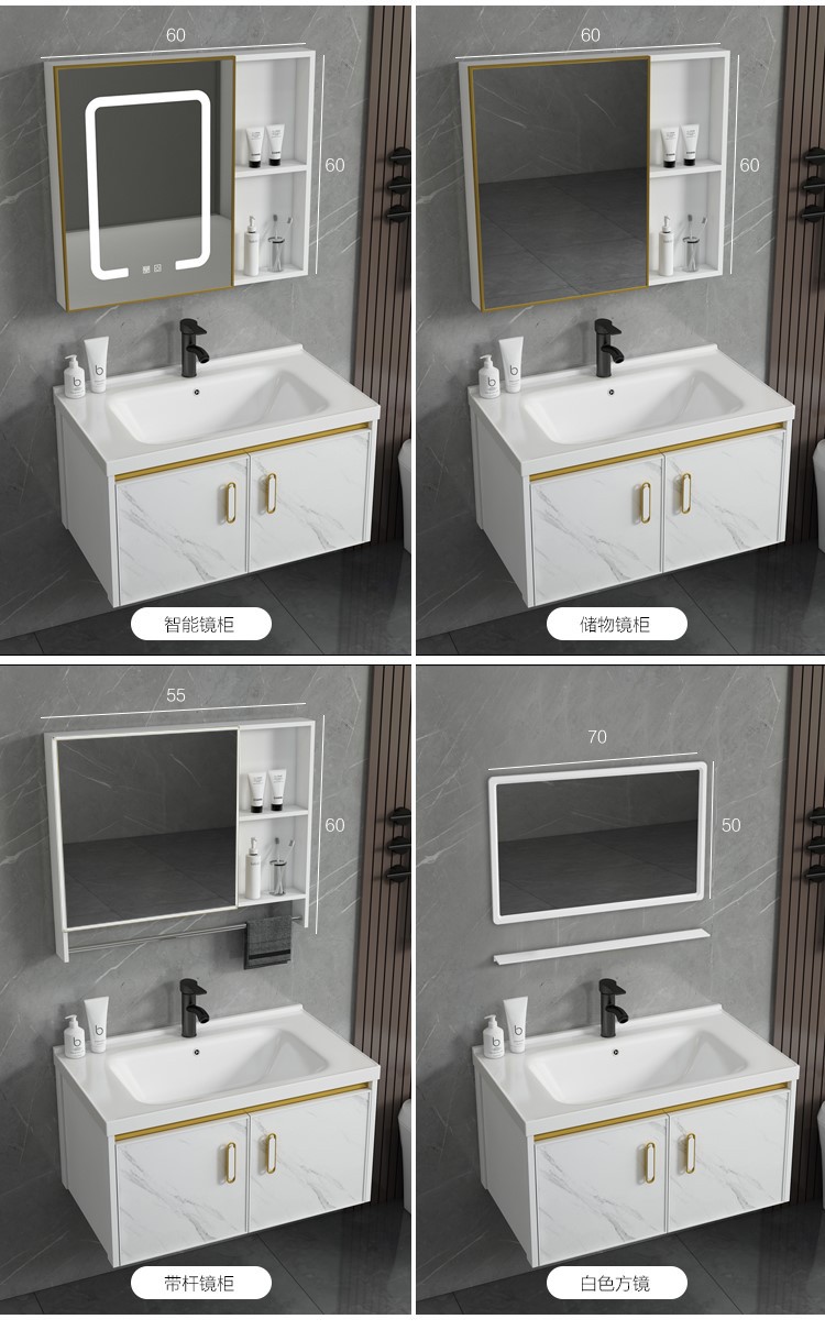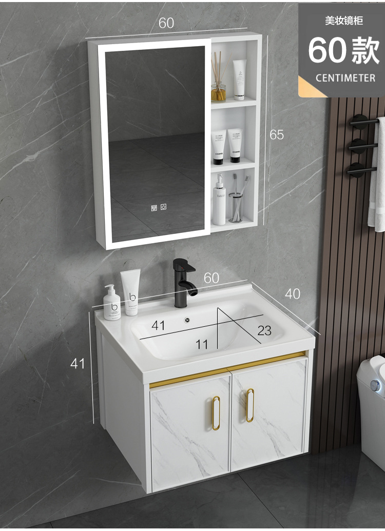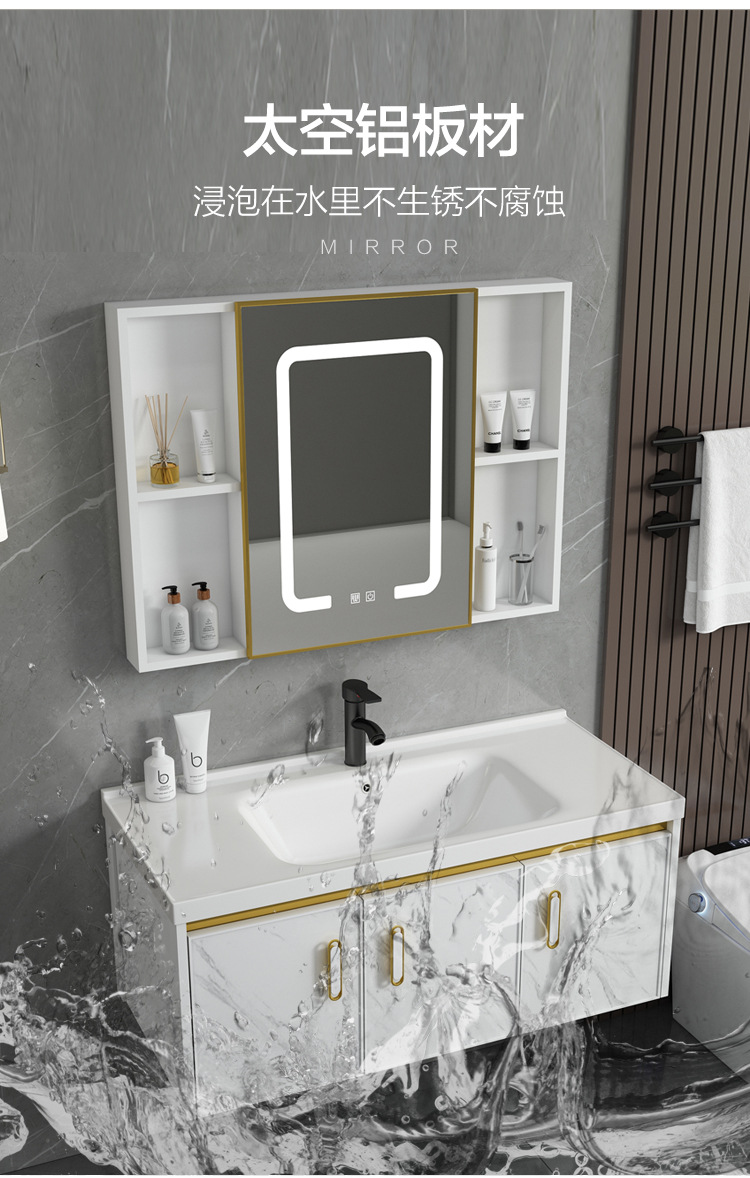Moderno espacio de aluminio simple gabinete de baño combinación de cerámica integrado lavabo gabinete balcón lavabo