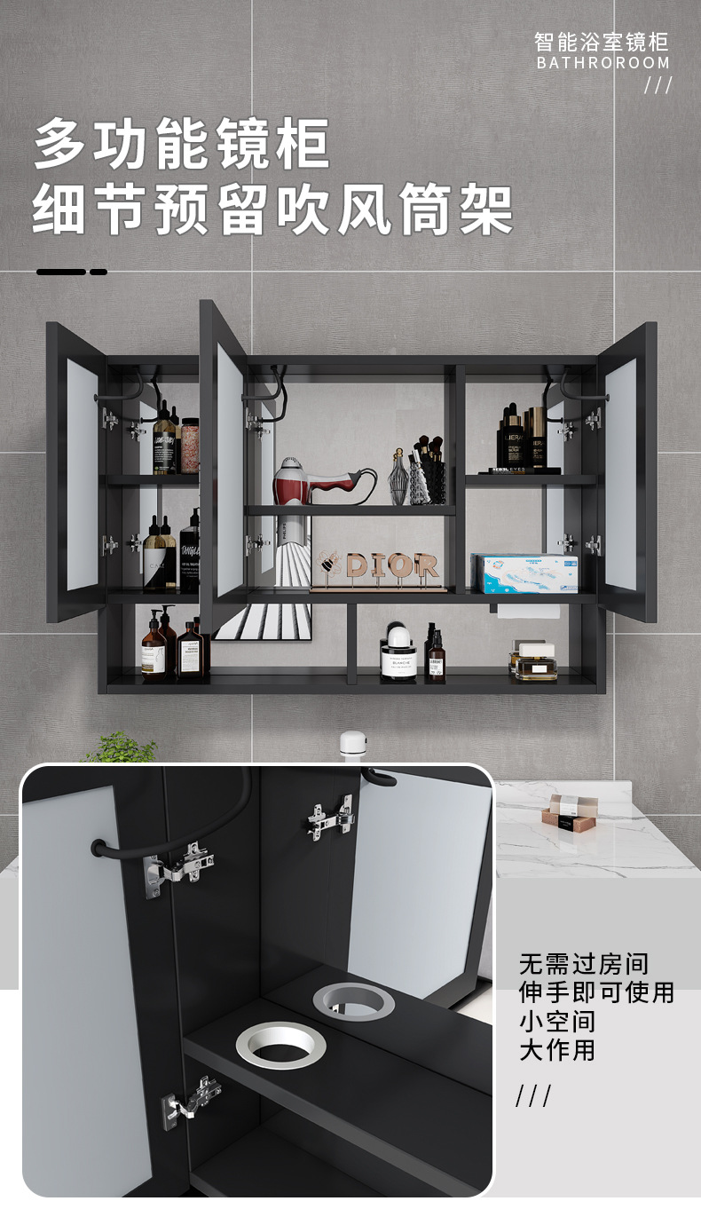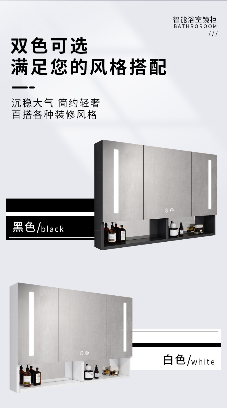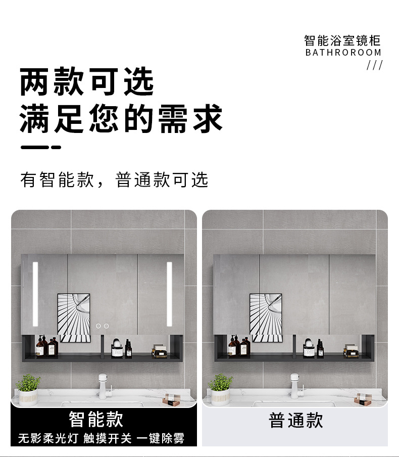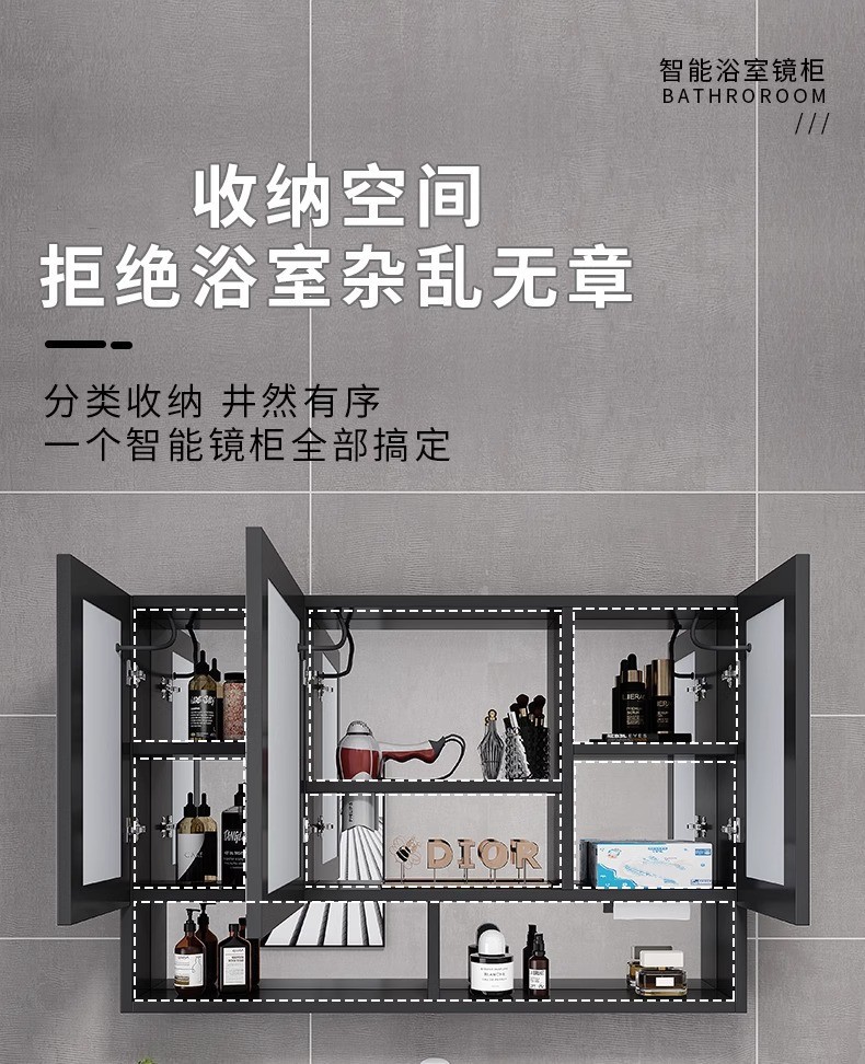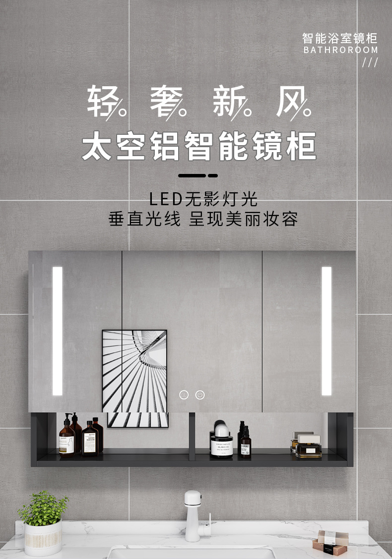 Espacio de aluminio inteligente espejo de baño gabinete de baño anti-niebla con espejo de almacenamiento de luz montado en la pared caja de espejo de almacenamiento