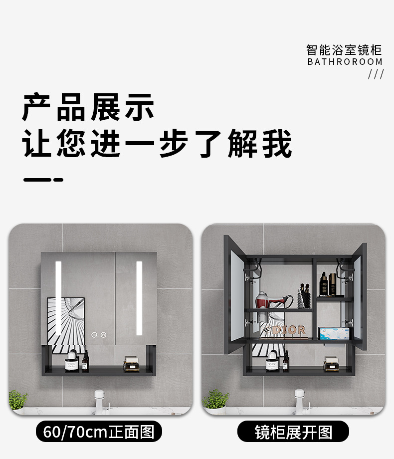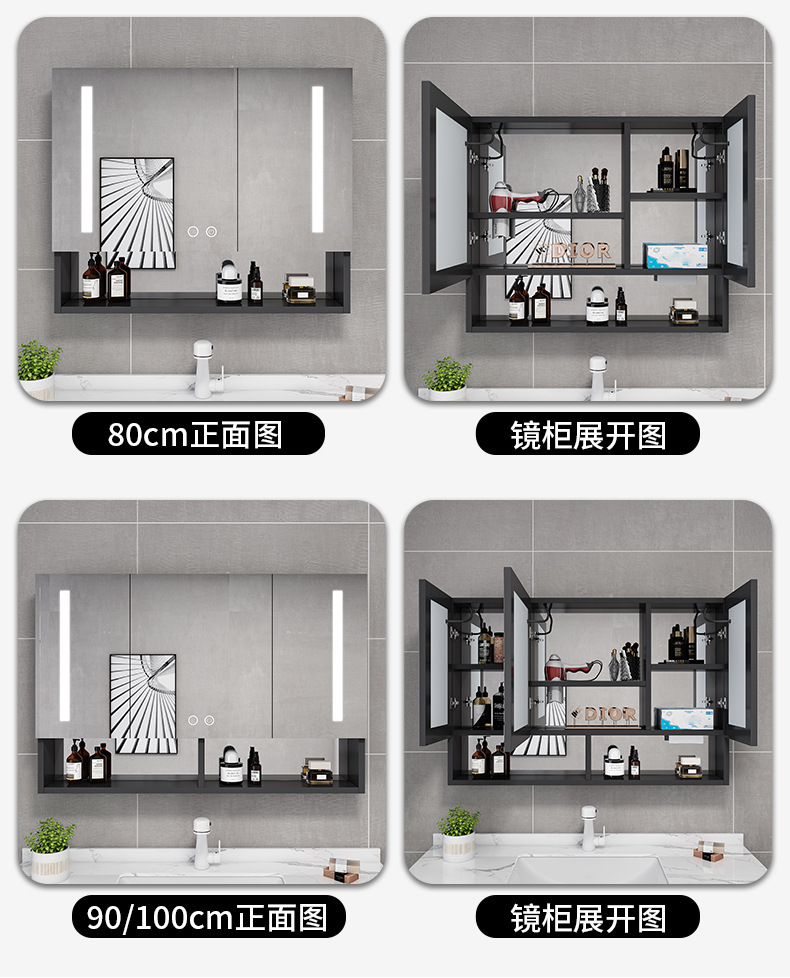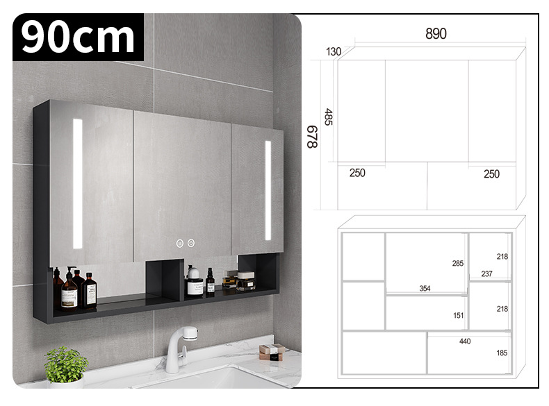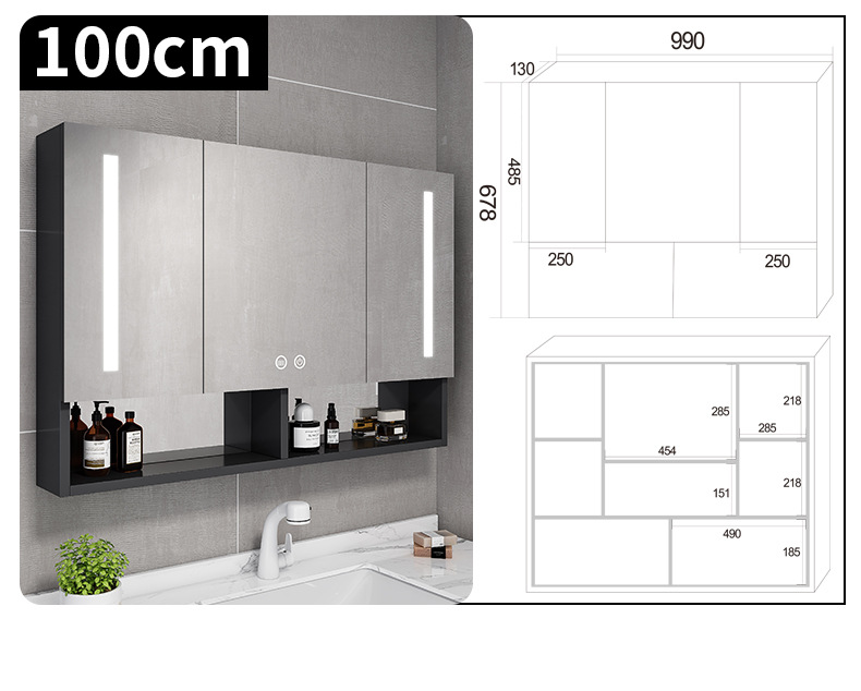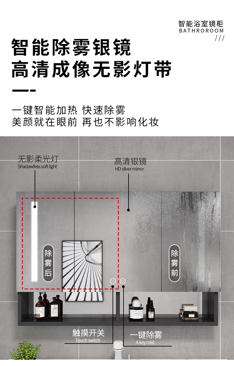 Espacio de aluminio inteligente espejo de baño gabinete de baño anti-niebla con espejo de almacenamiento de luz montado en la pared caja de espejo de almacenamiento