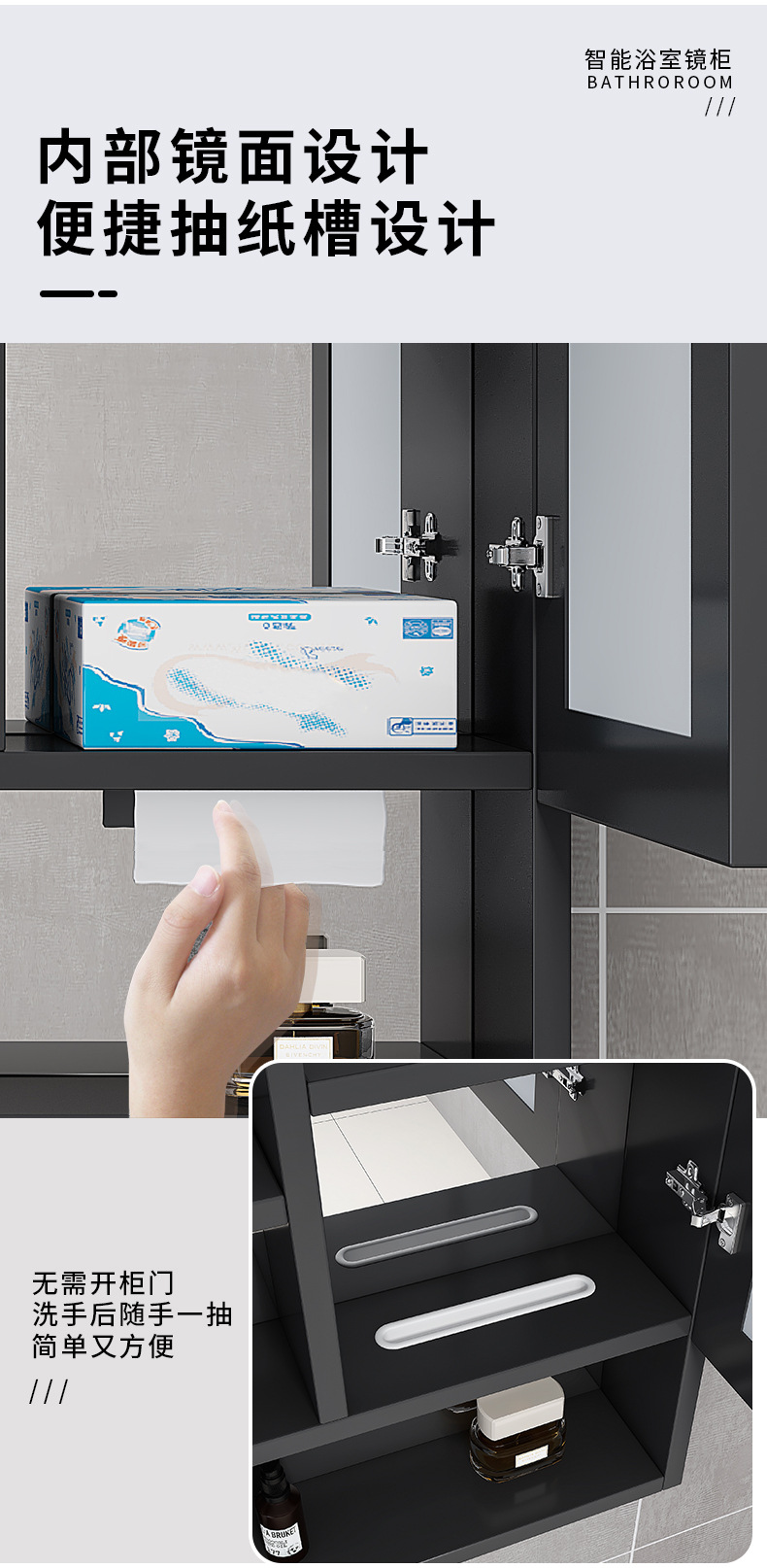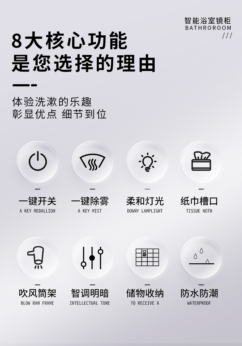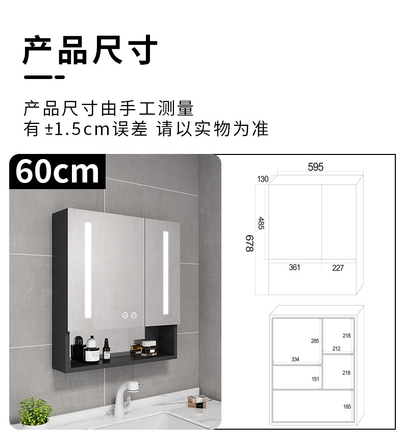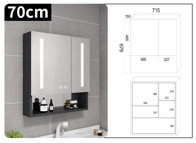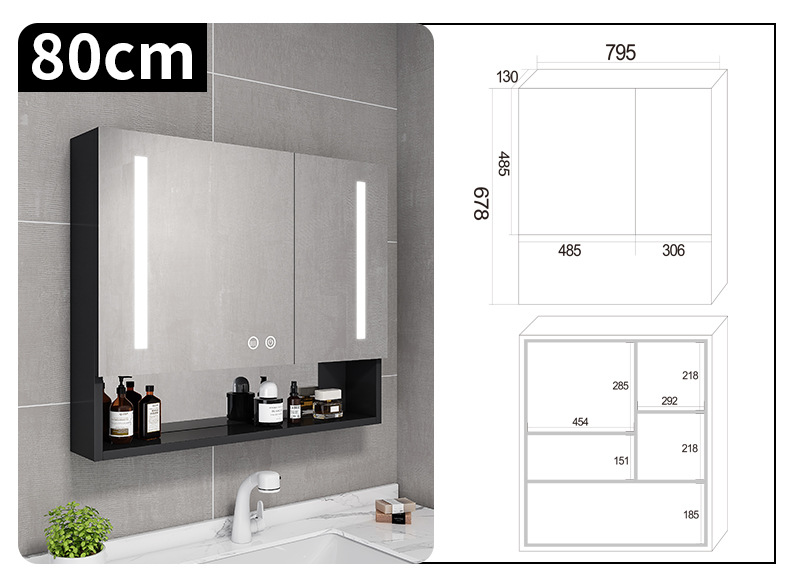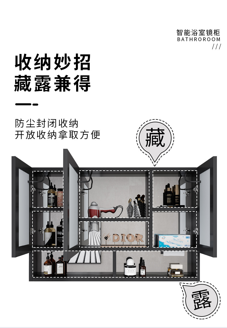 Espacio de aluminio inteligente espejo de baño gabinete de baño anti-niebla con espejo de almacenamiento de luz montado en la pared caja de espejo de almacenamiento