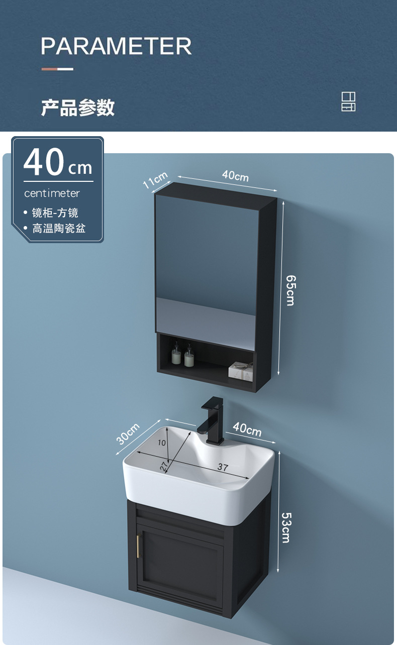 Pequeño espacio de apartamento de aluminio gabinete de baño combinación de baño lavabo del Gabinete lavabo del gabinete del baño lavabo