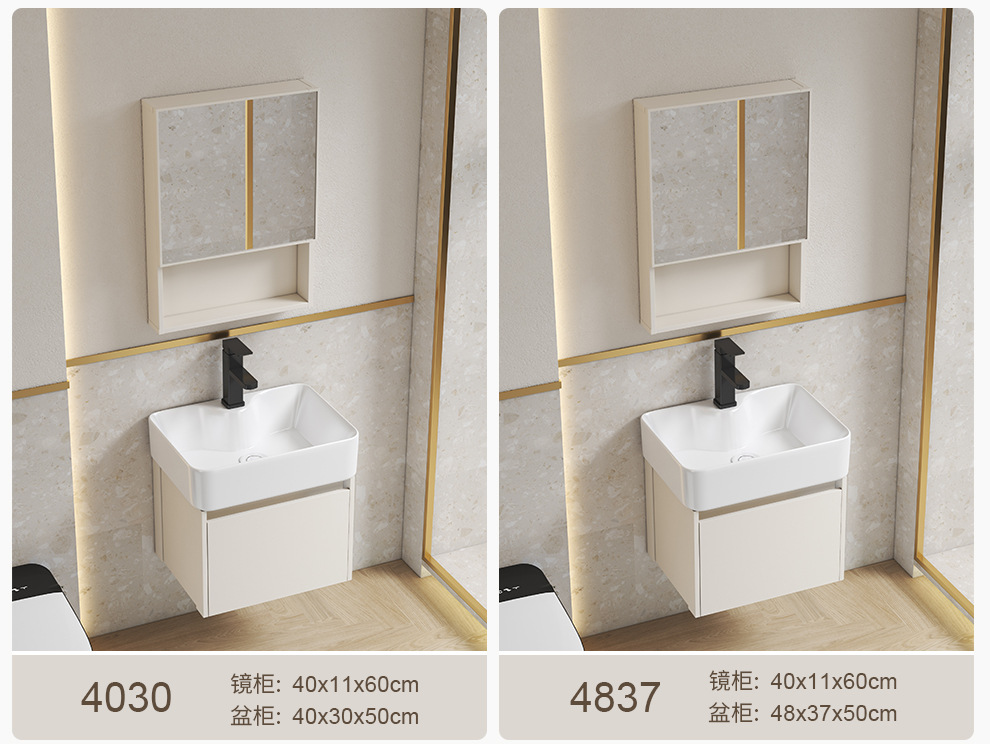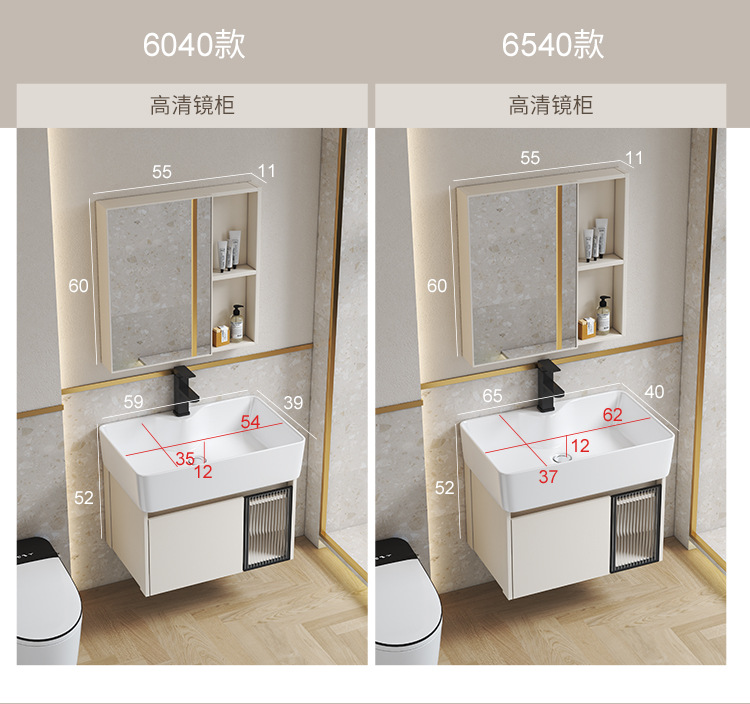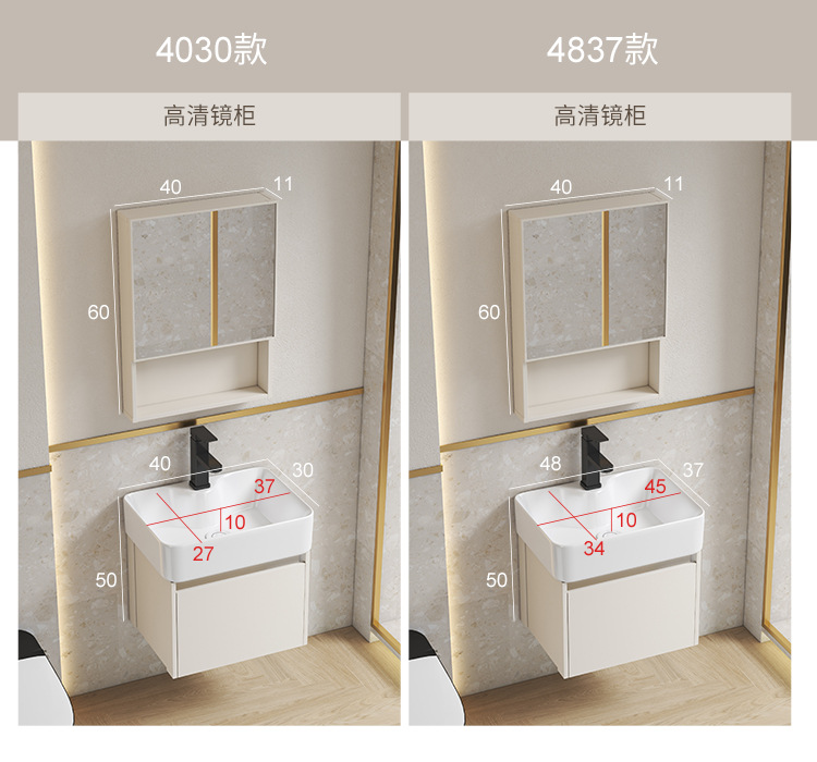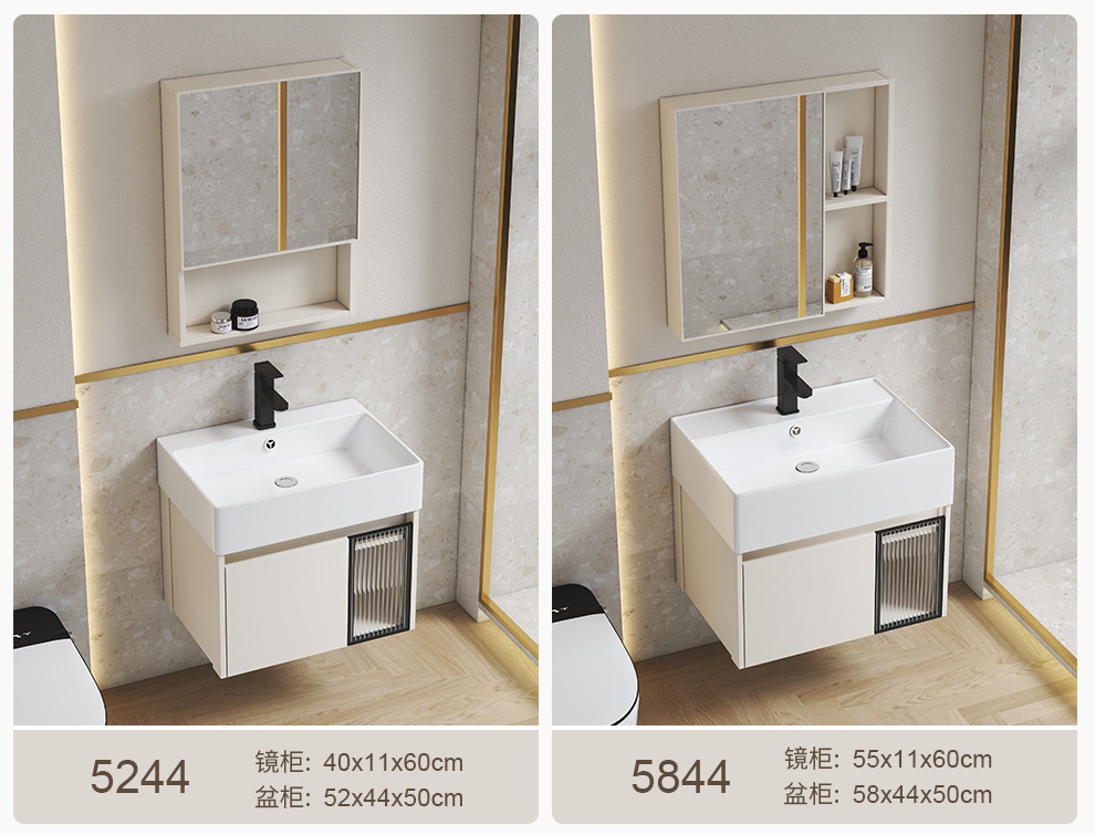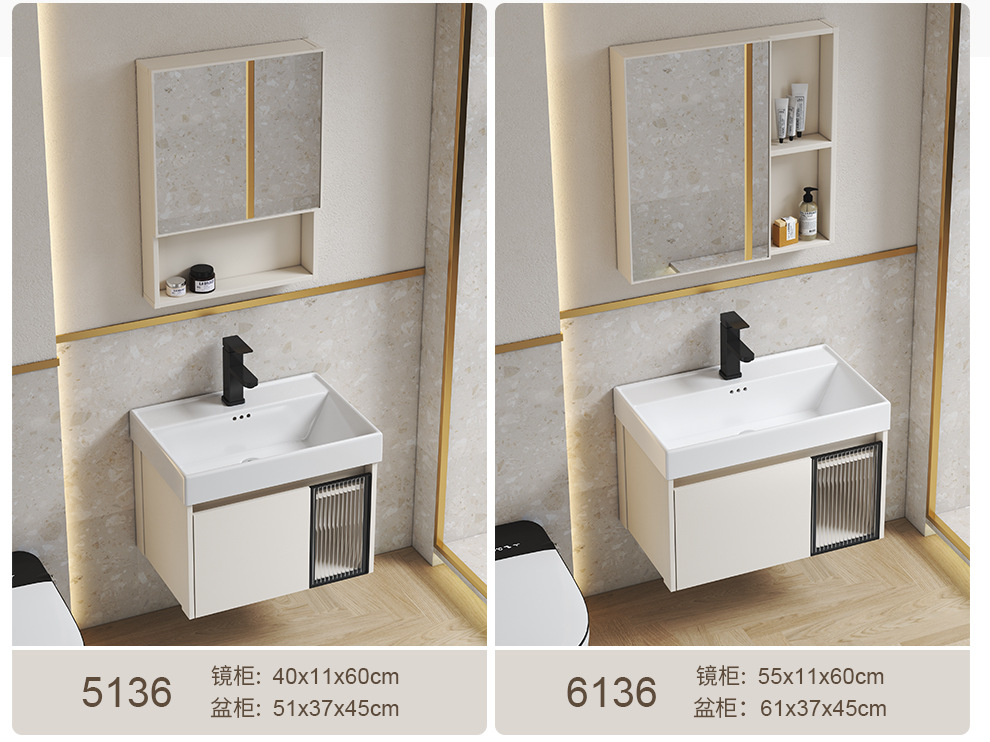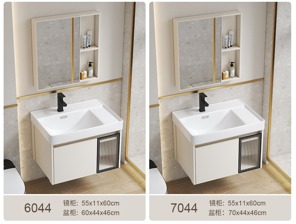 Estilo crema gabinete de baño combinación de espacio de aluminio pequeño apartamento lavabo de baño de cerámica integrado impermeable lavabo