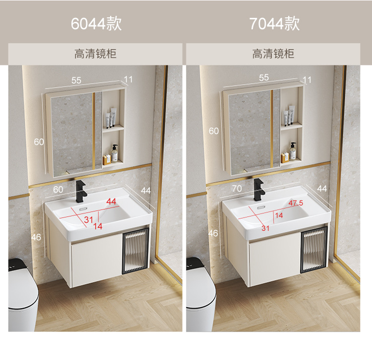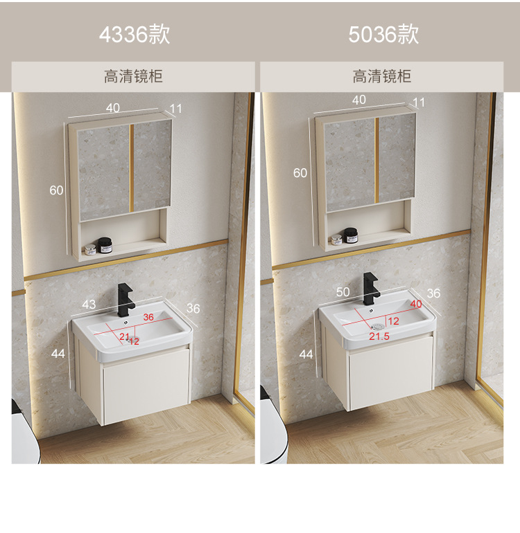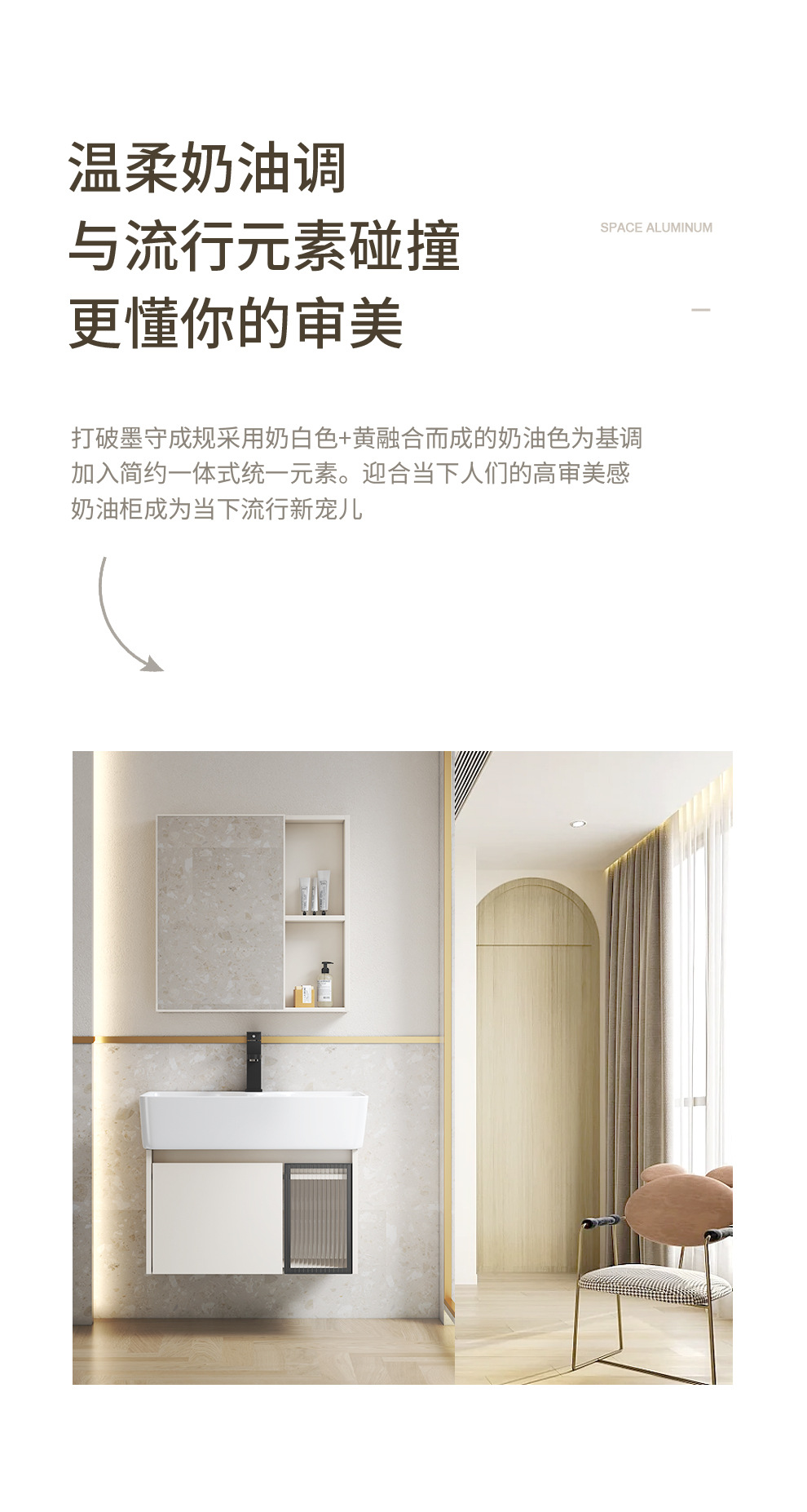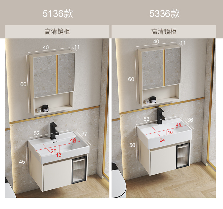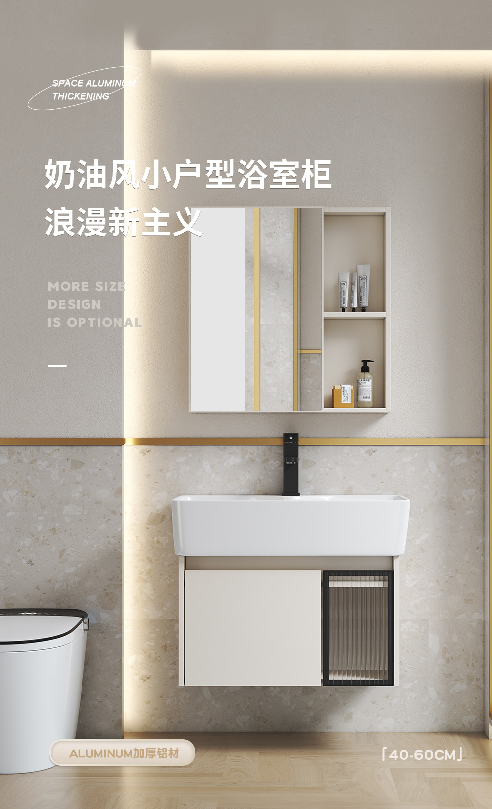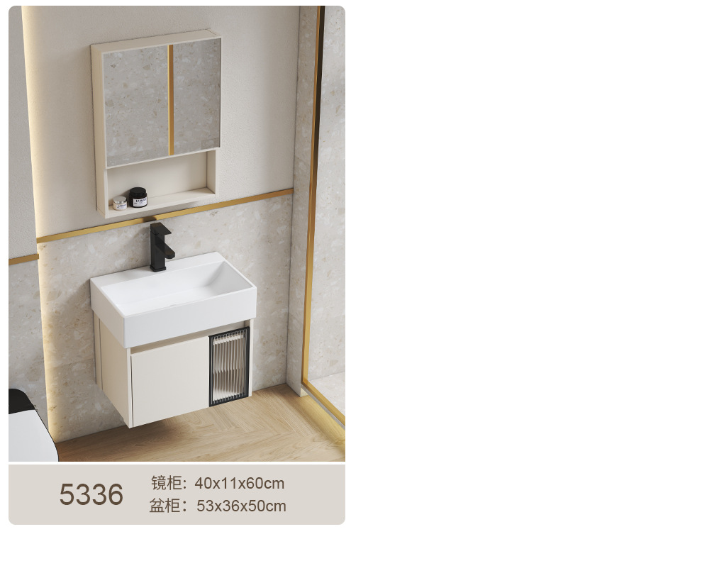 Estilo crema gabinete de baño combinación de espacio de aluminio pequeño apartamento lavabo de baño de cerámica integrado impermeable lavabo