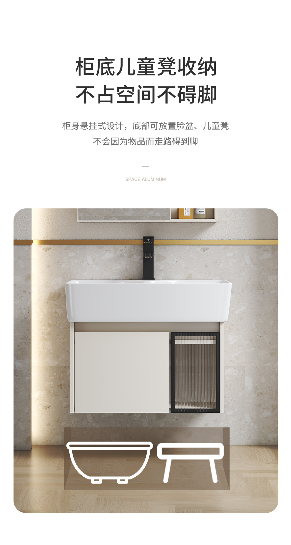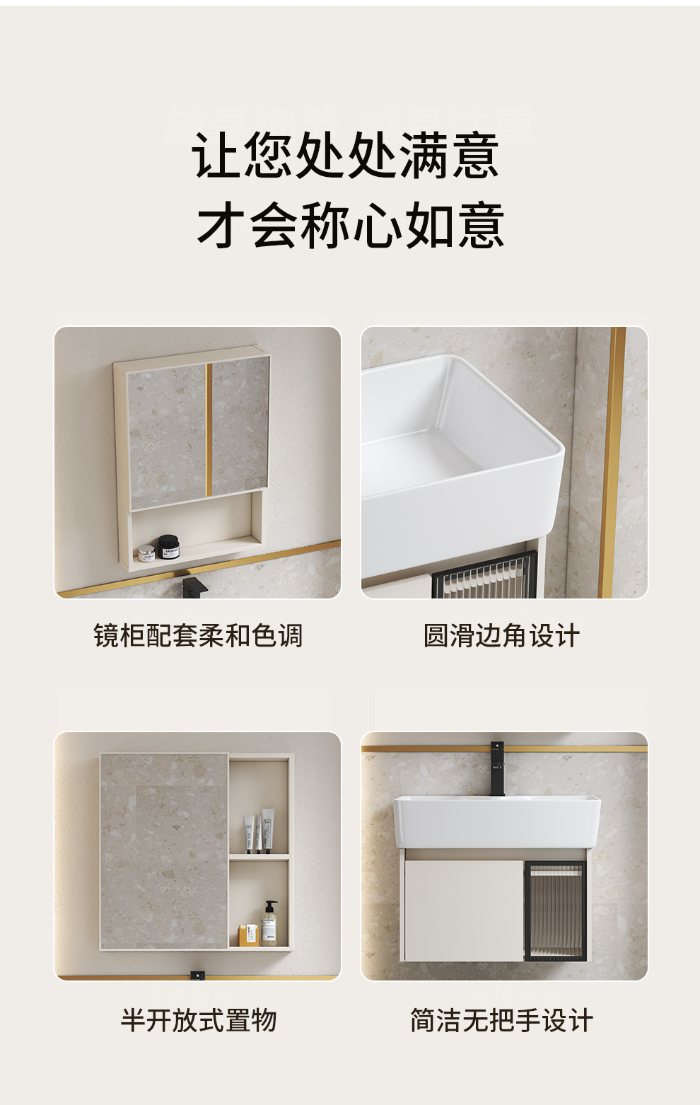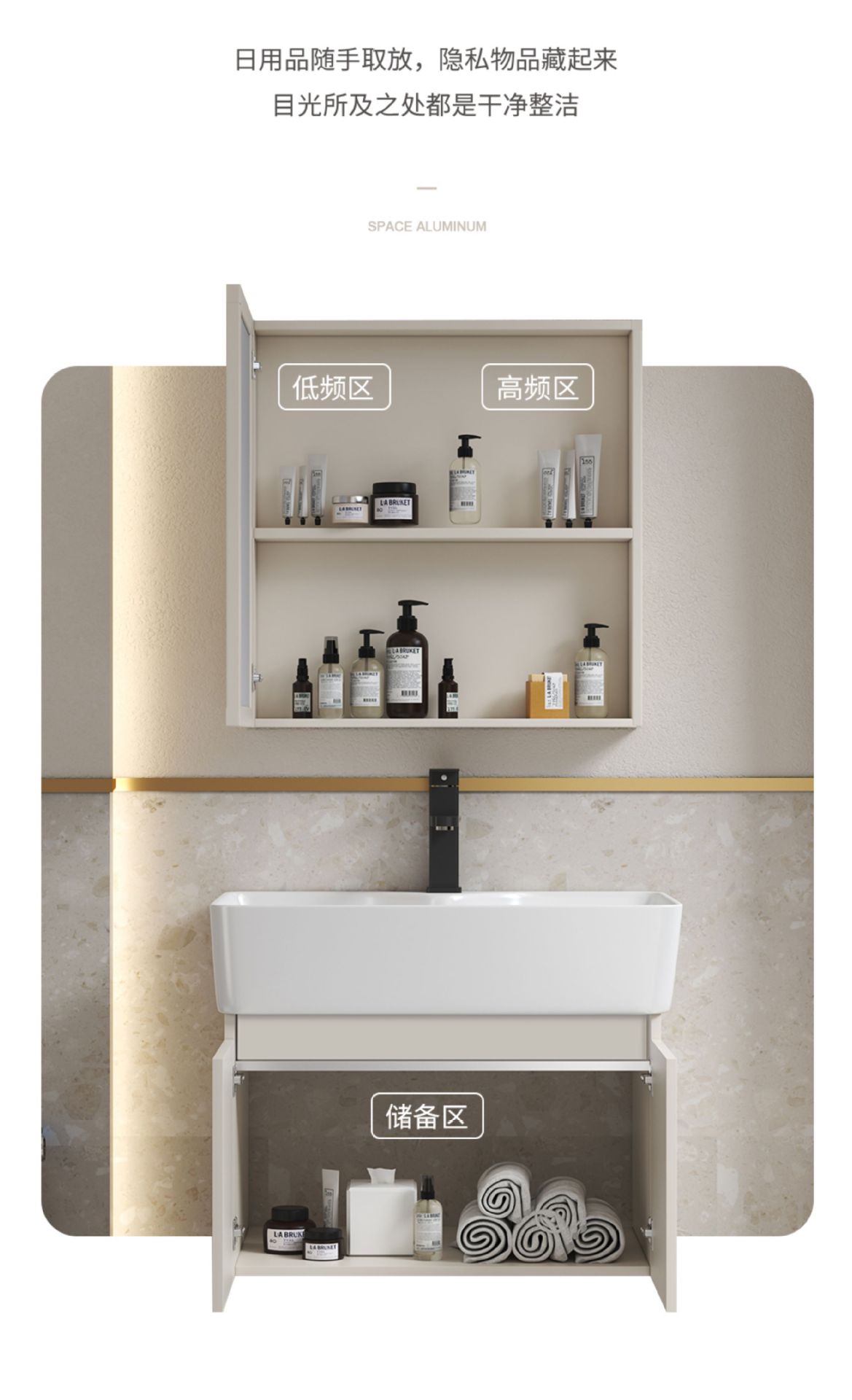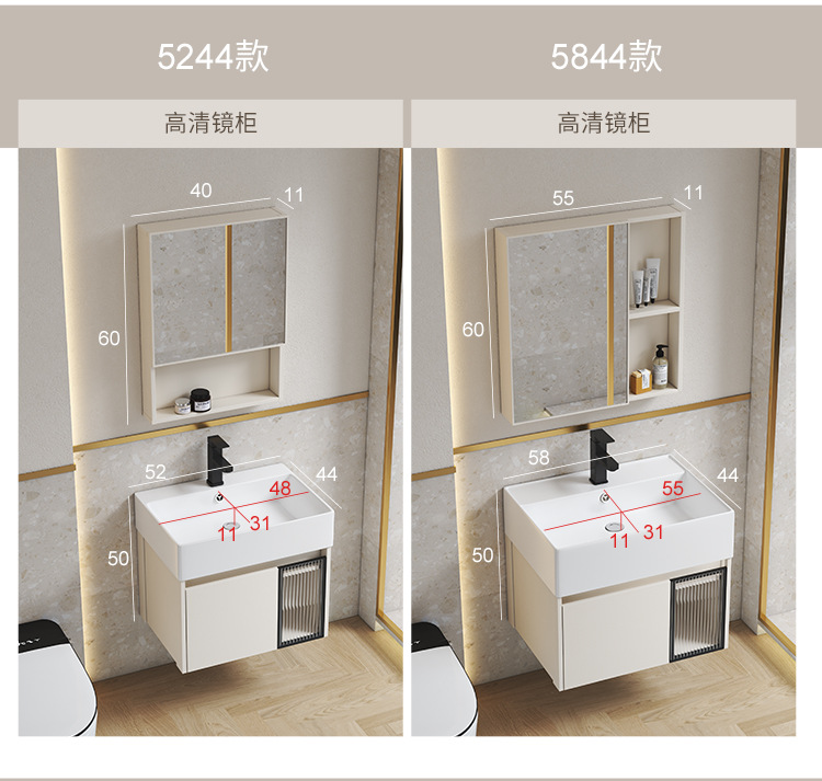 Estilo crema gabinete de baño combinación de espacio de aluminio pequeño apartamento lavabo de baño de cerámica integrado impermeable lavabo