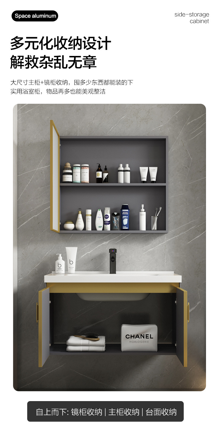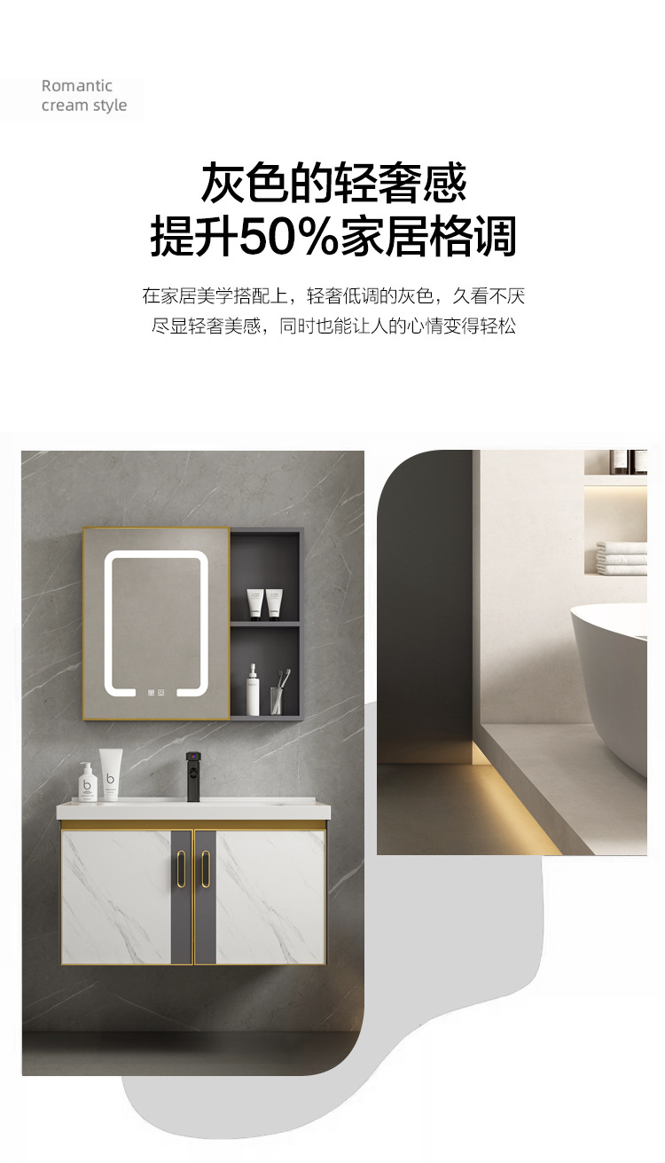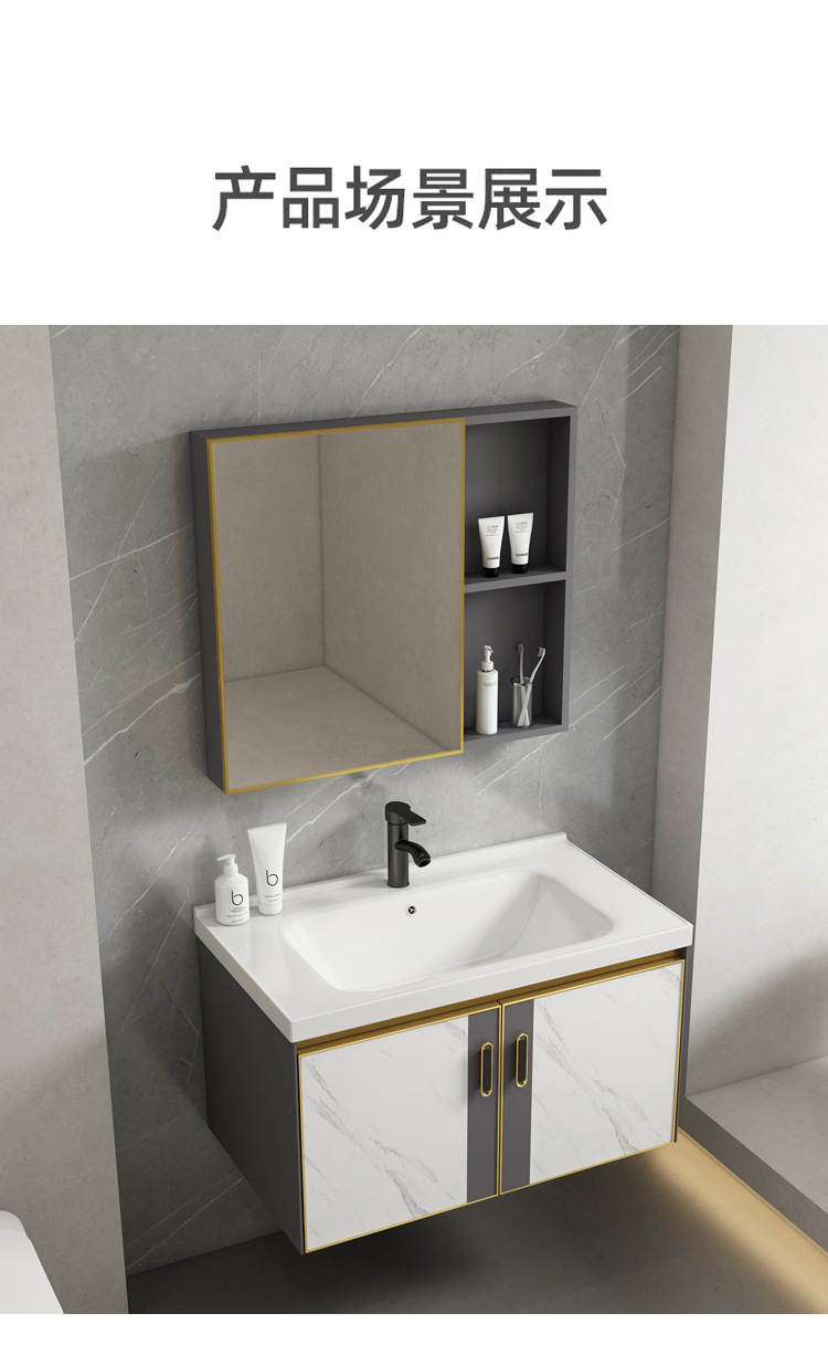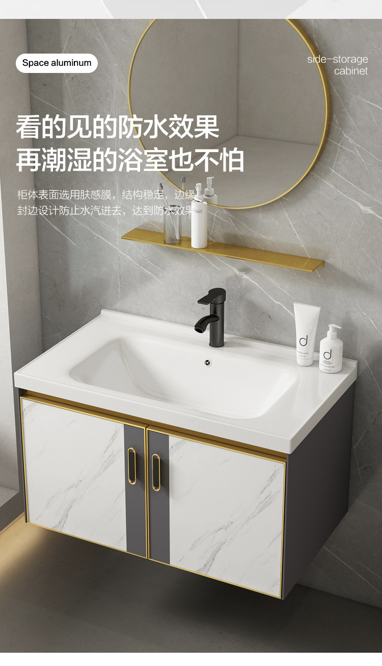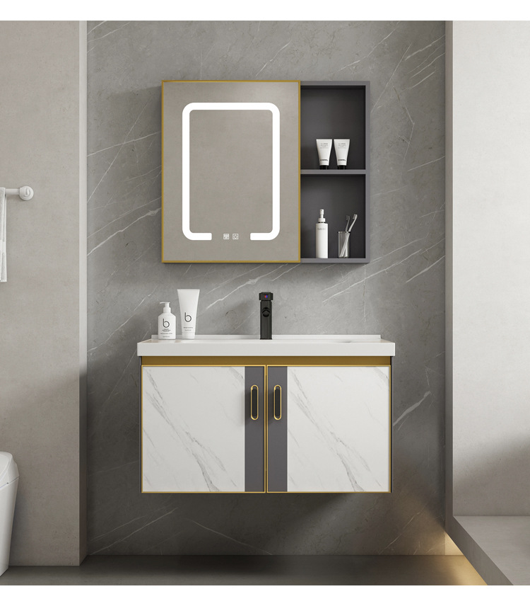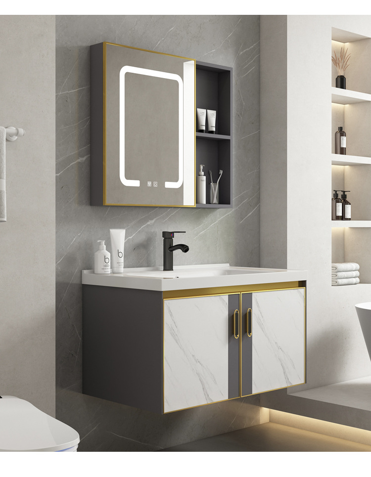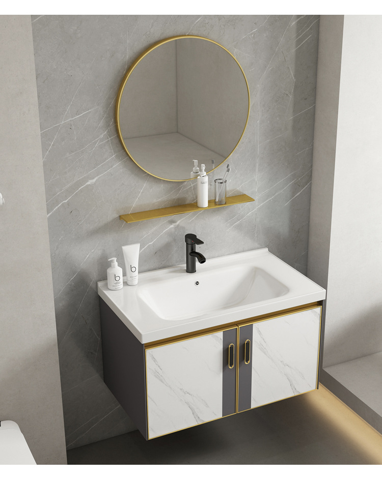 Cuarto de baño de aluminio del vientre de pescado blanco gabinete de baño combinación simple lavabo de cerámica integrado lavabo