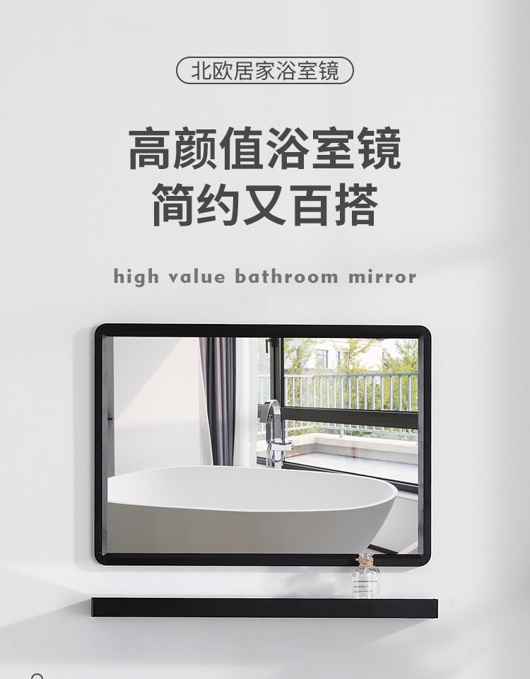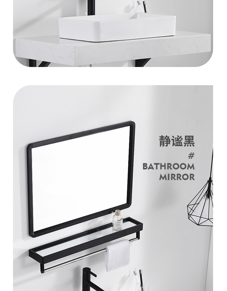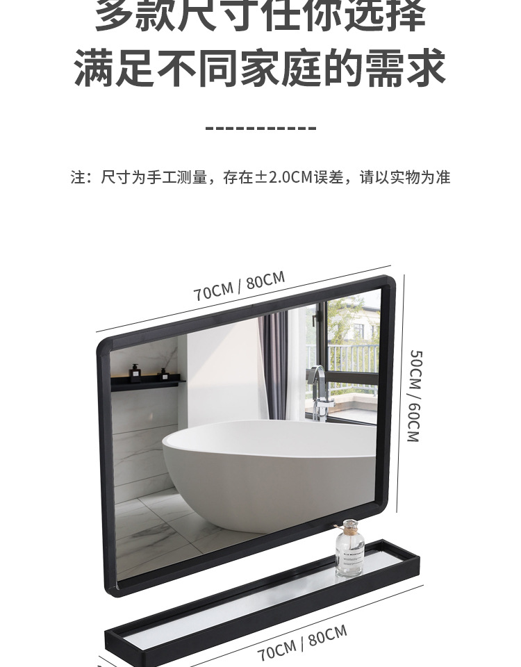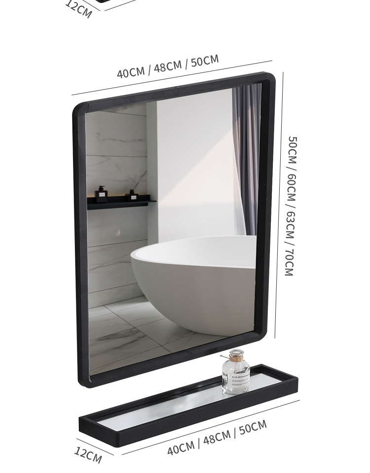 Espejo de baño cuadrado negro espejo de baño espejo de pared colgante espejo de tocador espejo cosmético con estante de almacenamiento
