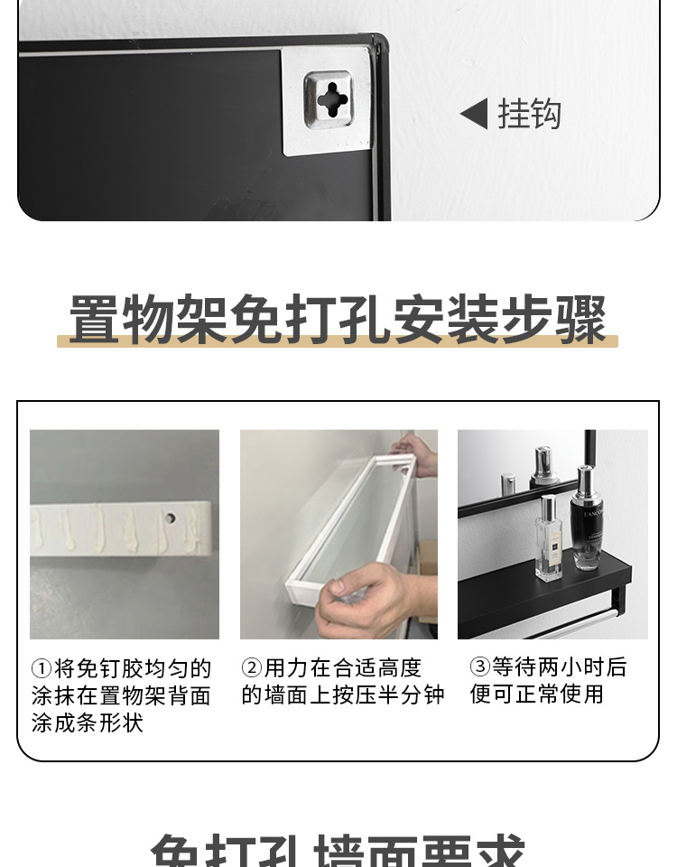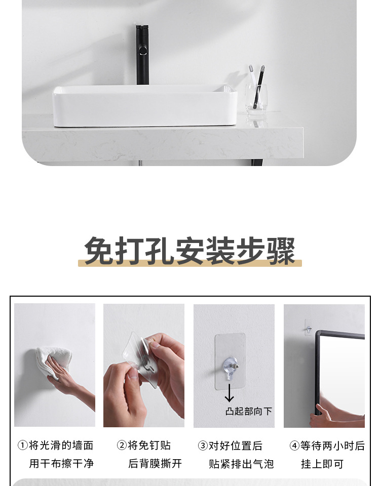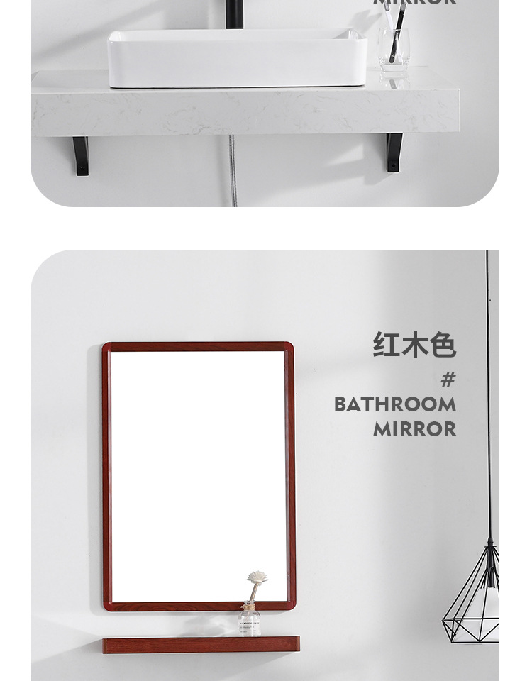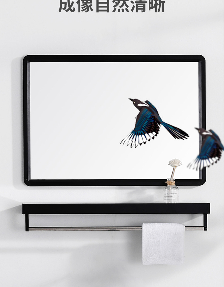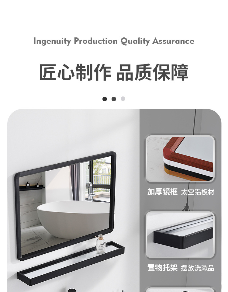 Espejo de baño cuadrado negro espejo de baño espejo de pared colgante espejo de tocador espejo cosmético con estante de almacenamiento