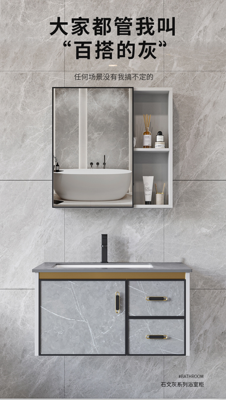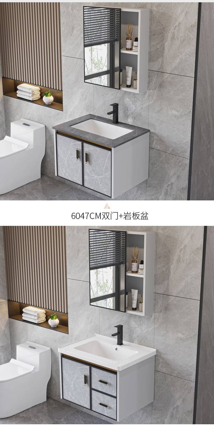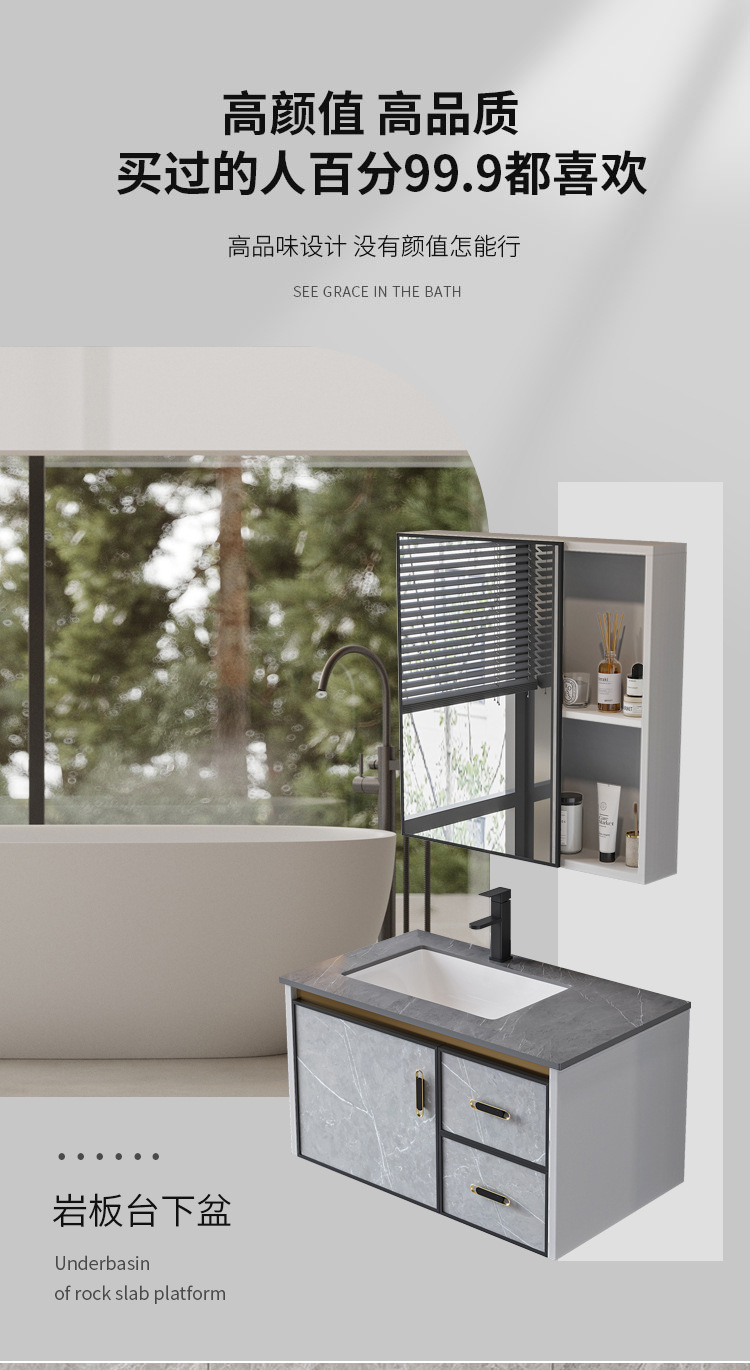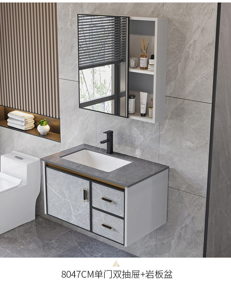 Luz de lujo espacio aluminio placa de roca baño gabinete combinación pequeño apartamento cuarto de baño lavabo mesa de lavado integrado espejo inteligente