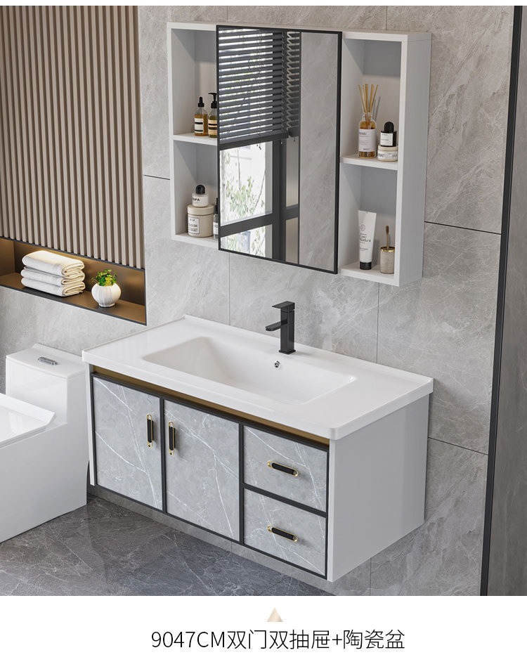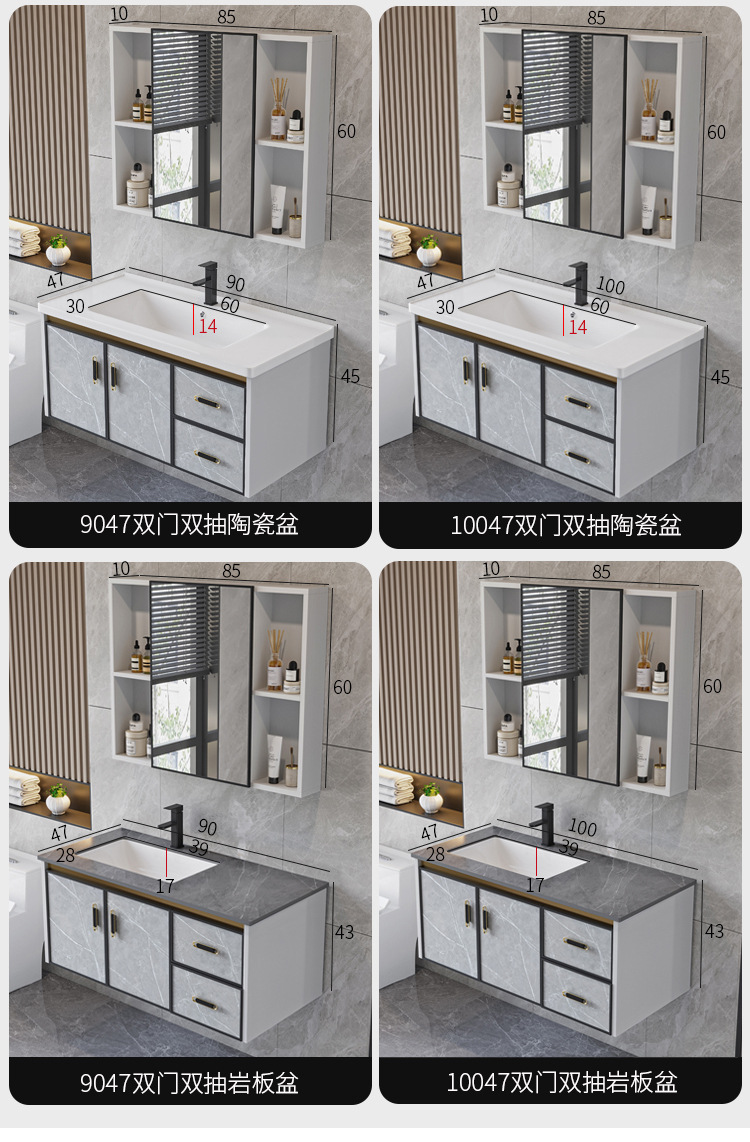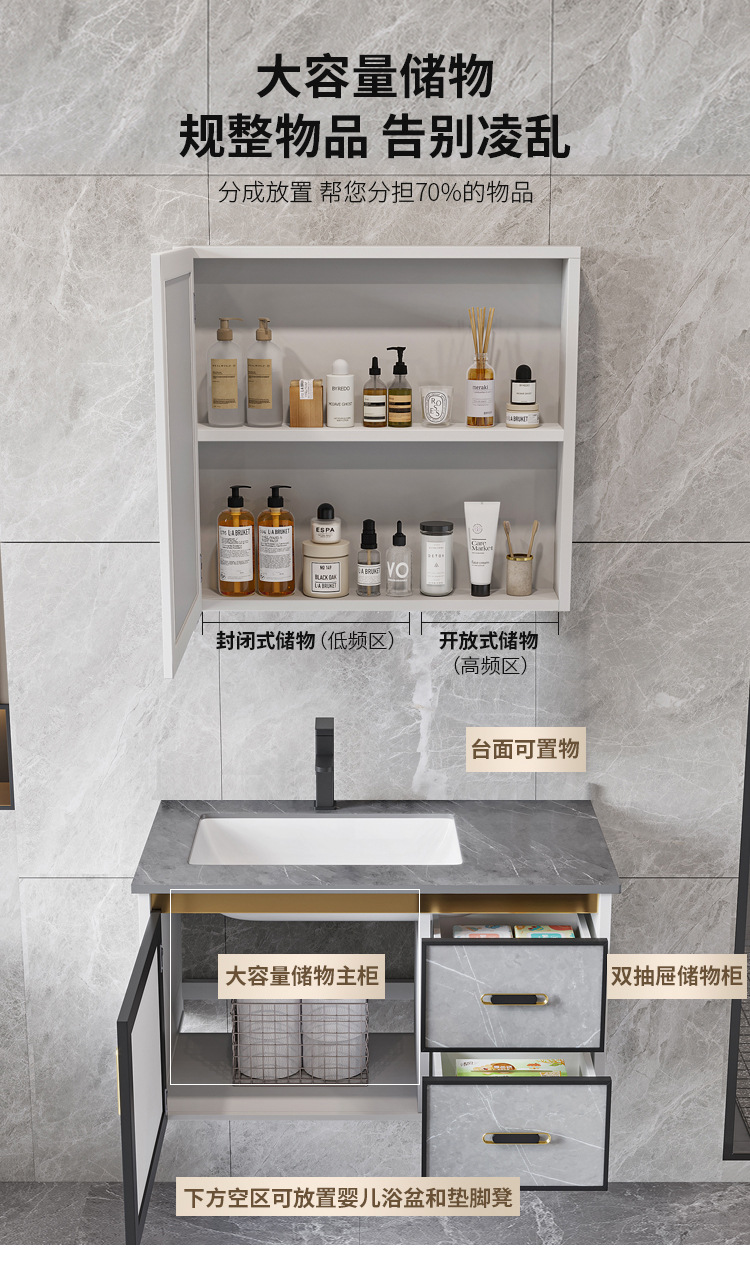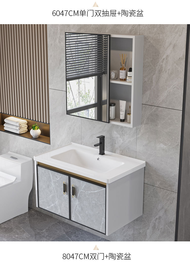 Luz de lujo espacio aluminio placa de roca baño gabinete combinación pequeño apartamento cuarto de baño lavabo mesa de lavado integrado espejo inteligente