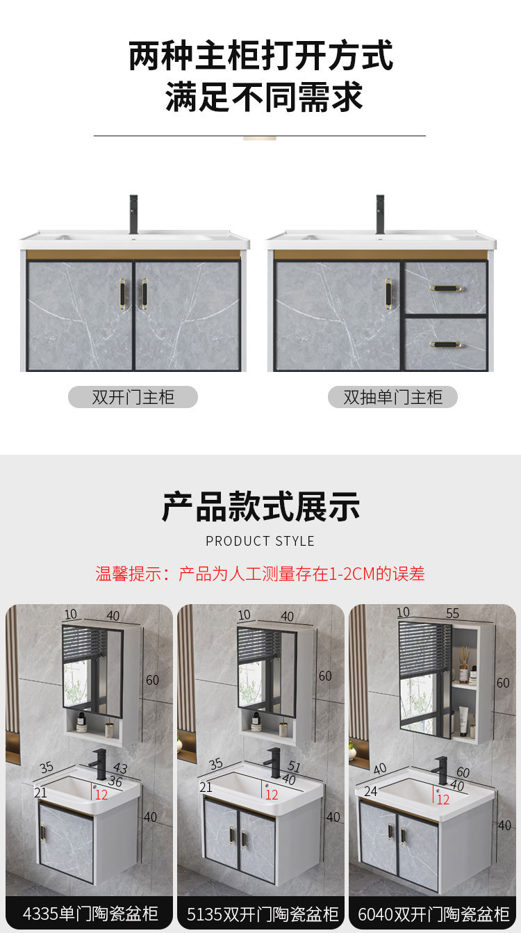 | Color | 43 × 35 gabinete de lavabo de cerámica de una sola puerta 43 × 35 gabinete de lavabo de cerámica de una sola puerta 43 × 35 + gabinete de espejo 51 × 35 puerta doble |
