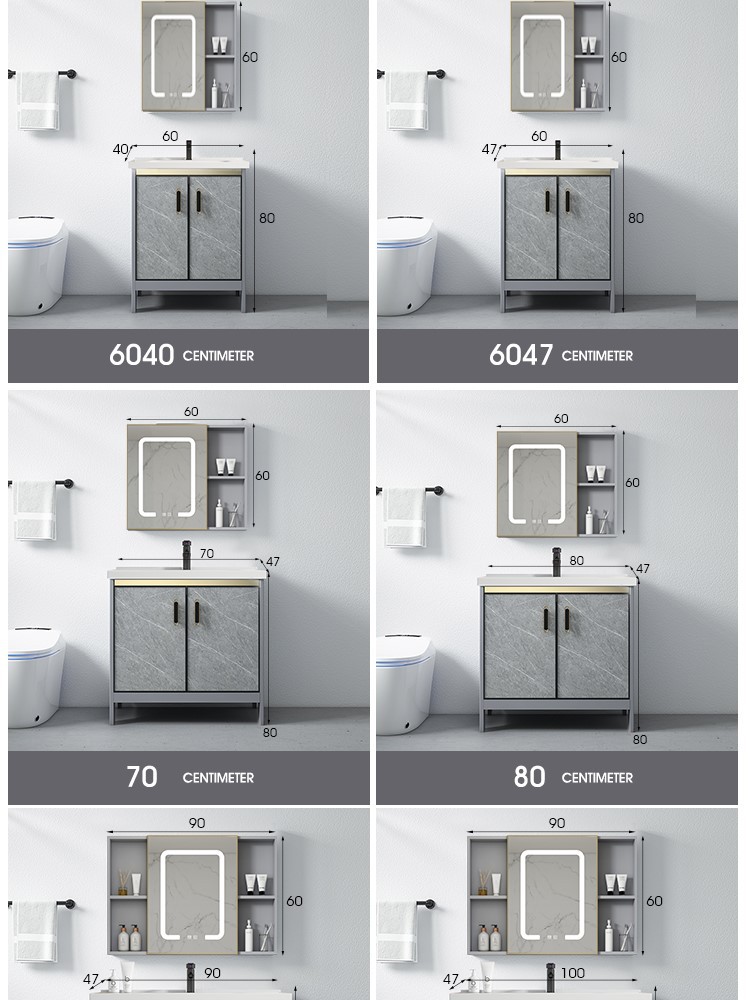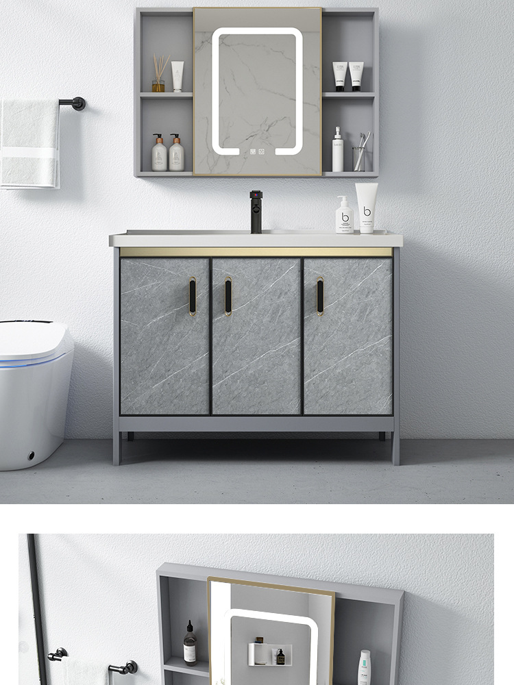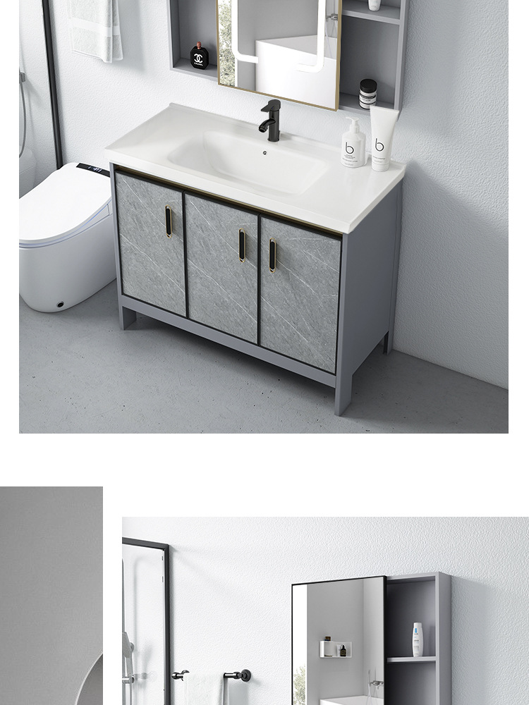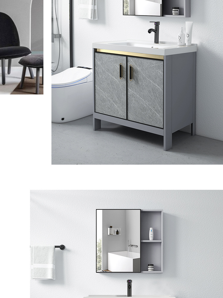 Baño de aluminio espacio gabinete de baño lavabo gabinete combinación de cerámica integrado lavabo gabinete moderno cuarto de baño mesa de lavado