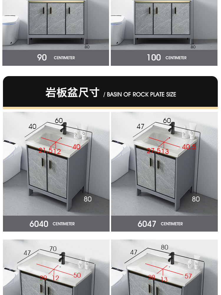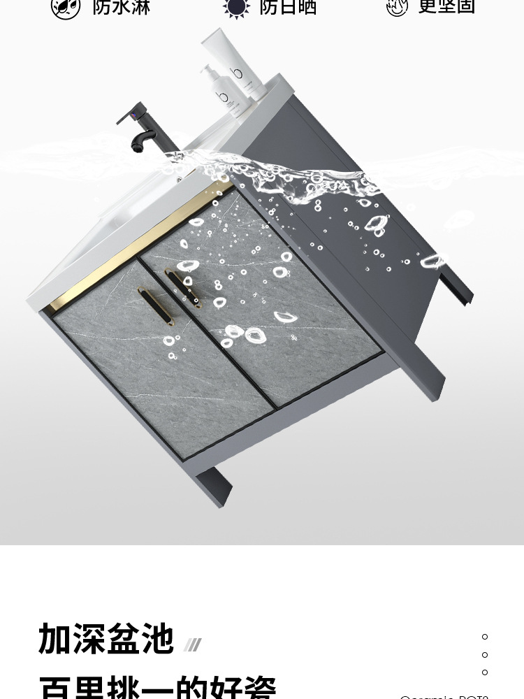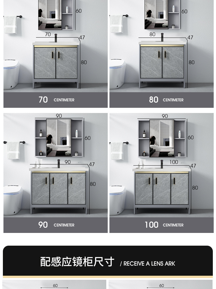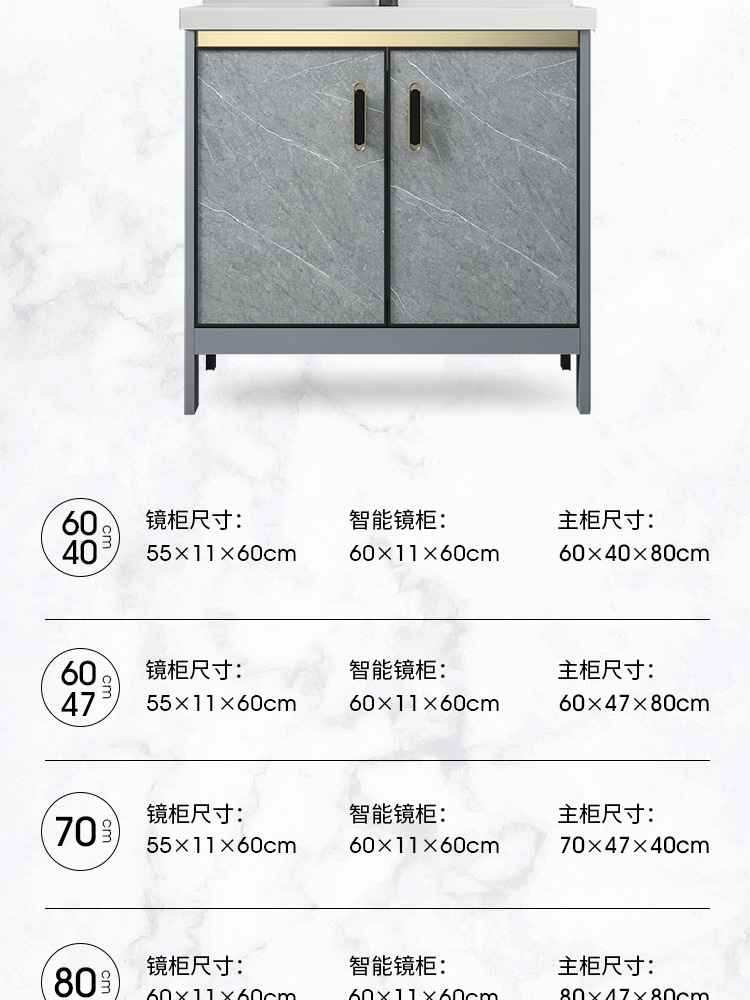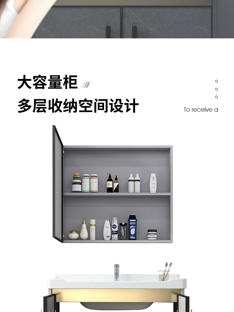 Baño de aluminio espacio gabinete de baño lavabo gabinete combinación de cerámica integrado lavabo gabinete moderno cuarto de baño mesa de lavado