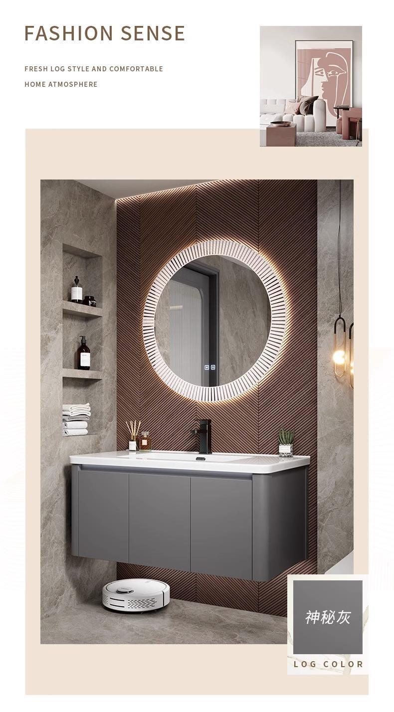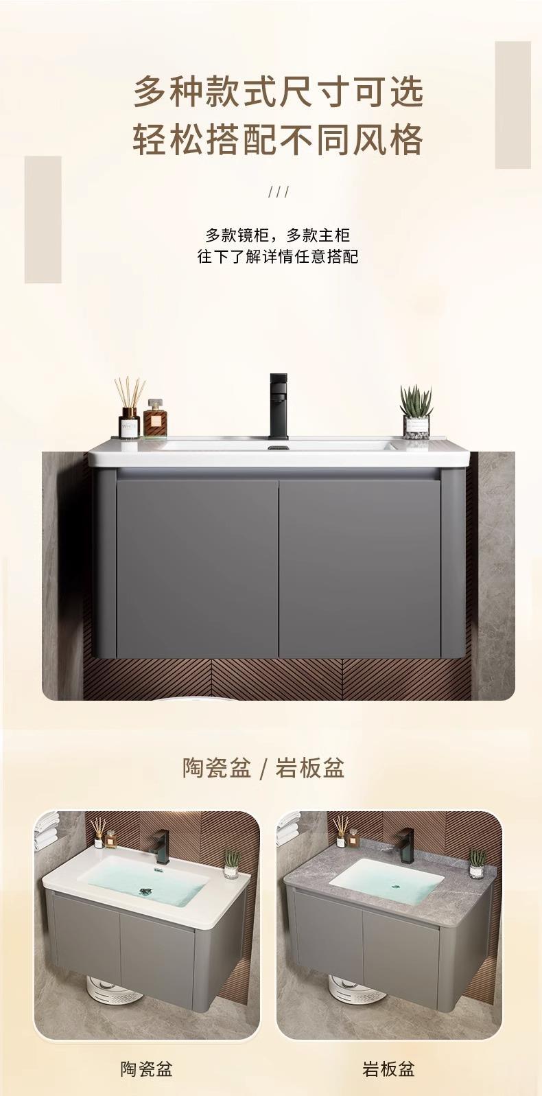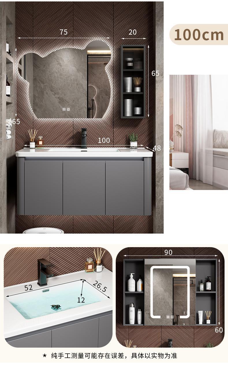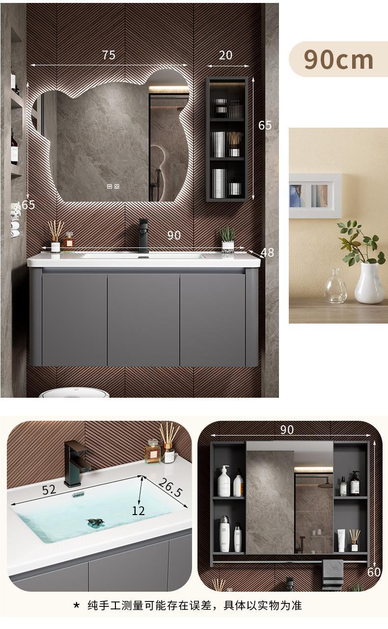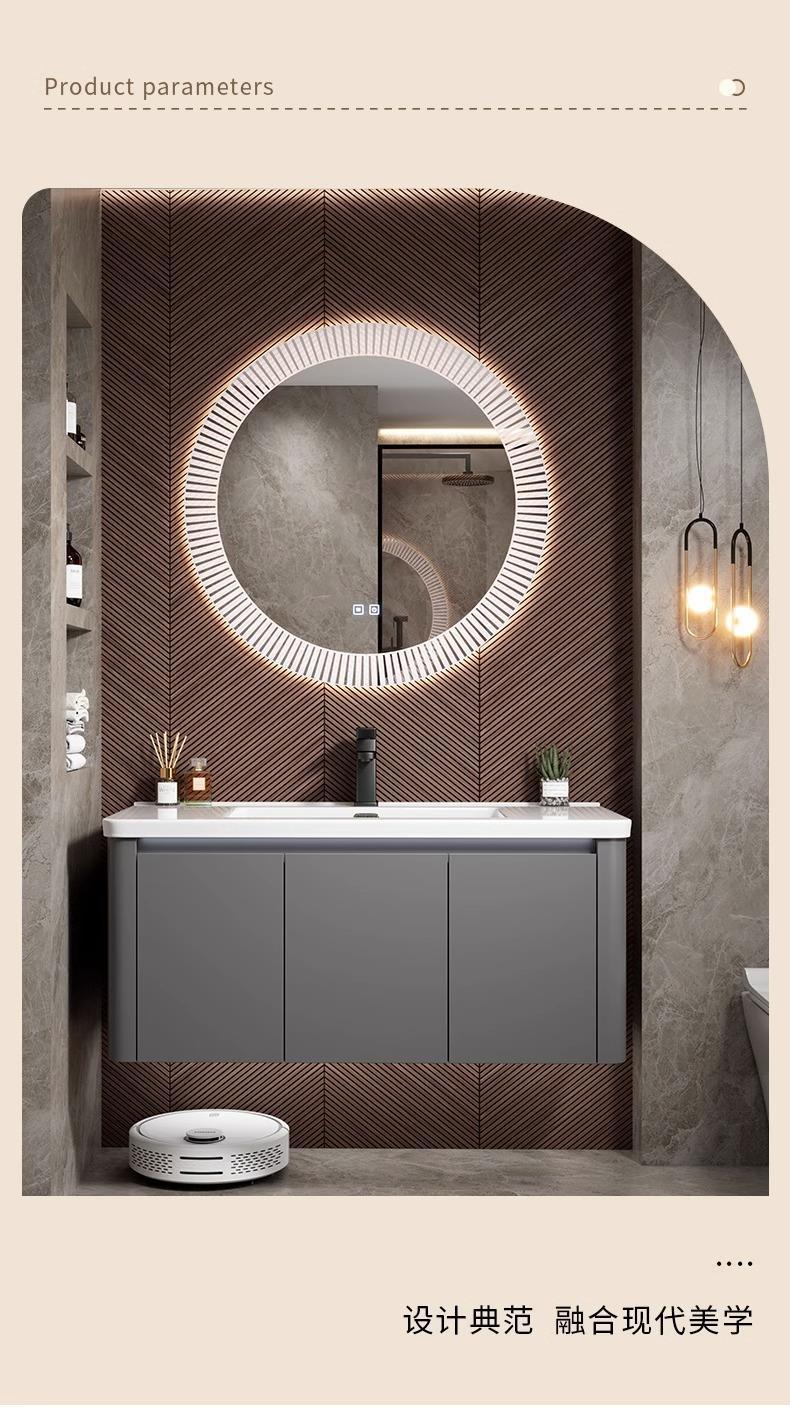 Moderno simple espacio de aluminio gabinete de baño combinación de baño redondeado lavabo de cerámica integrado lavabo mesa de lavado