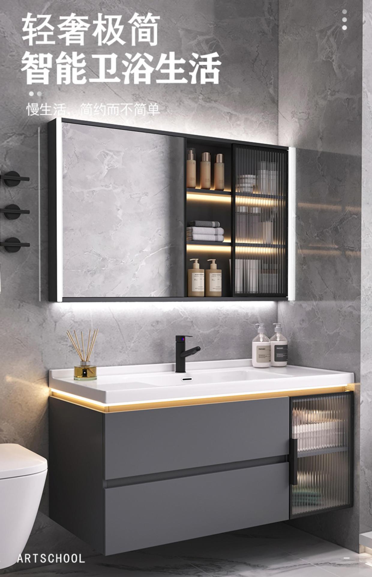 | Color | Hierro gris 60CM [gabinete de espejo de almacenamiento] + lavabo integrado de cerámica + lámpara de atmósfera inducción Cuerpo del Gabinete hierro gris 70CM [gabinete de espejo de almacenamiento] + lavabo integrado de cerámica + atmósfera |