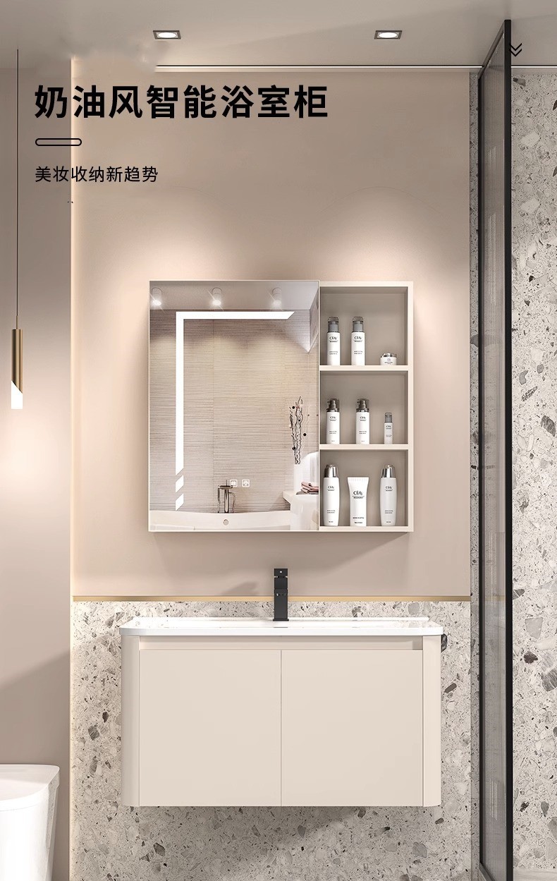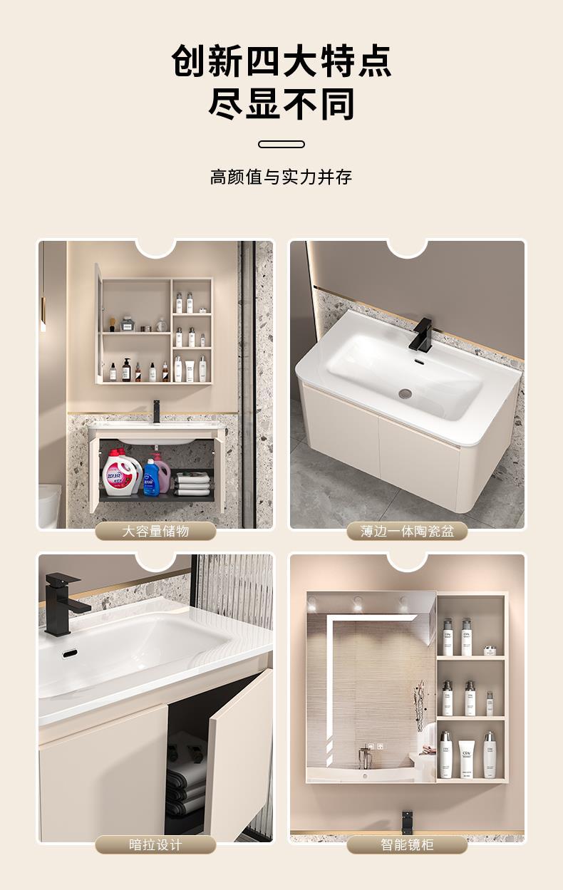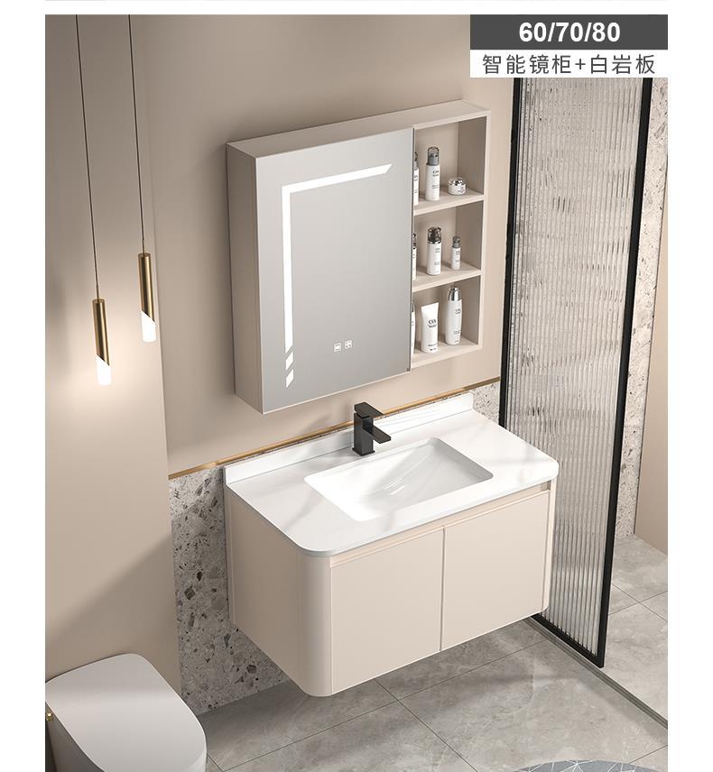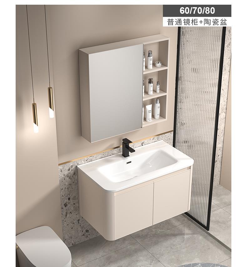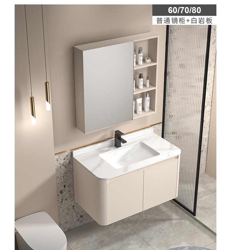 Gabinete de baño de aluminio espacio simple lavabo de baño combinación de gabinete de cerámica integrado lavabo Placa de roca mesa de lavado