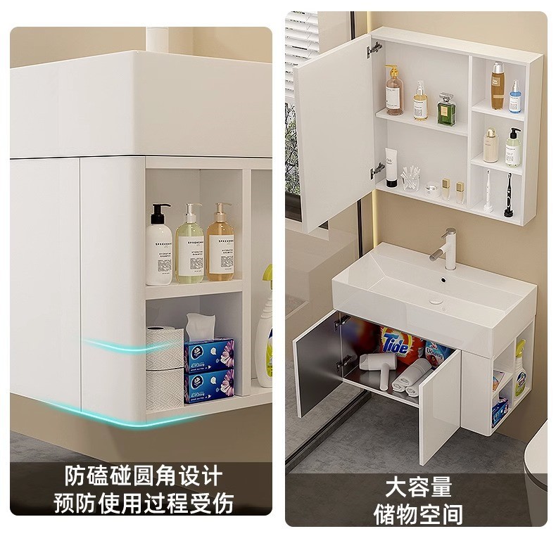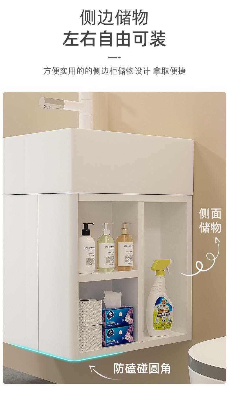 Arco lateral de acero inoxidable baño gabinete combinación pequeño apartamento lado Lavado de Manos lavabo de cerámica integrado