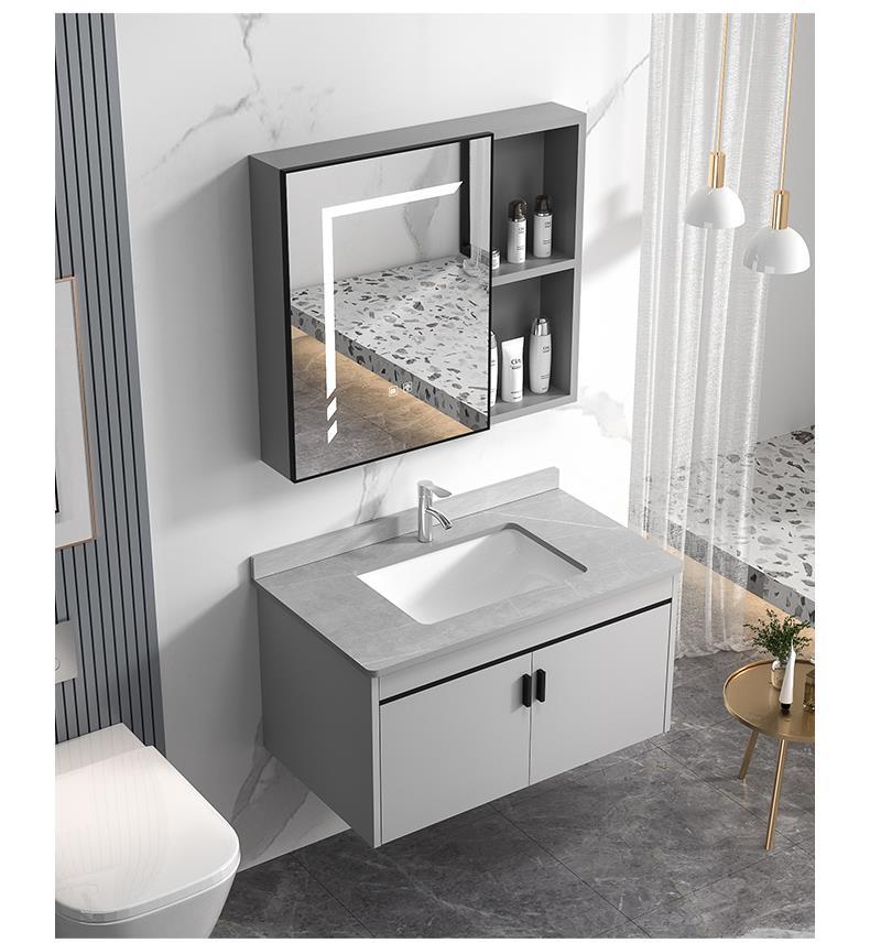 Gabinete de baño de aleación de aluminio espacial baño Placa de roca lavabo combinación de Gabinete integrado lavabo de cerámica lavabo mesa de lavado