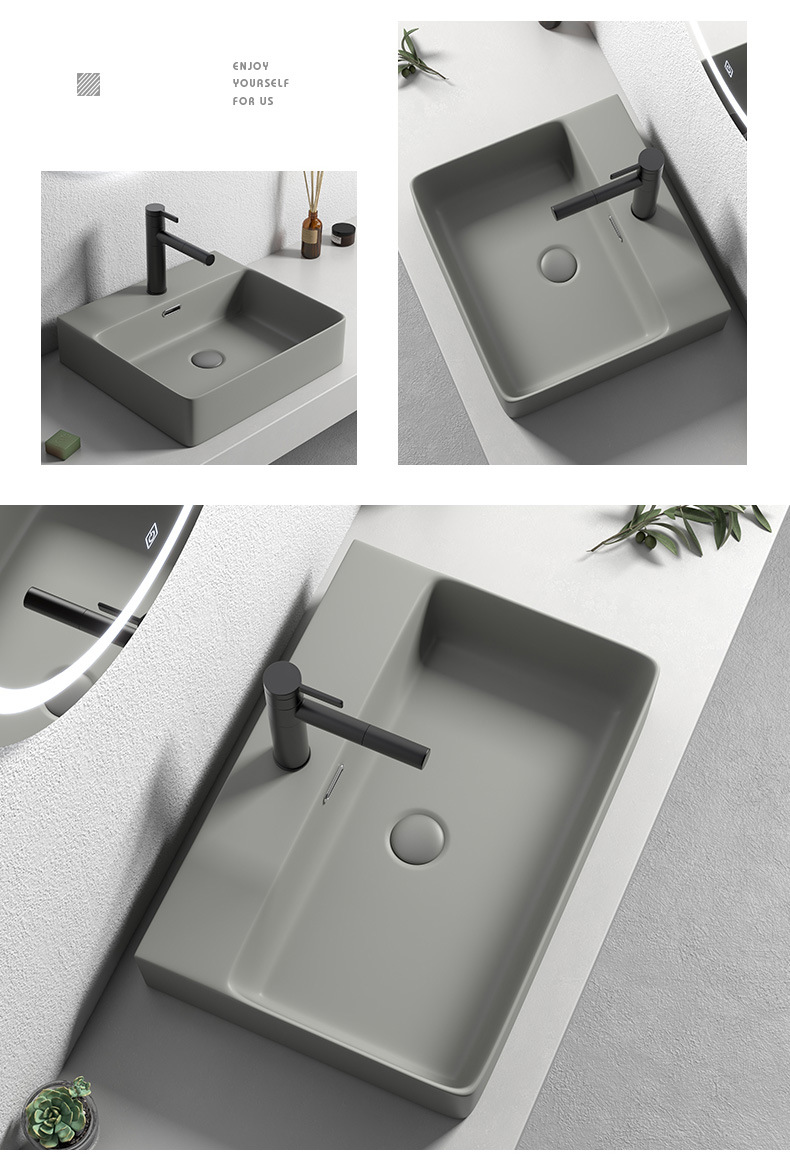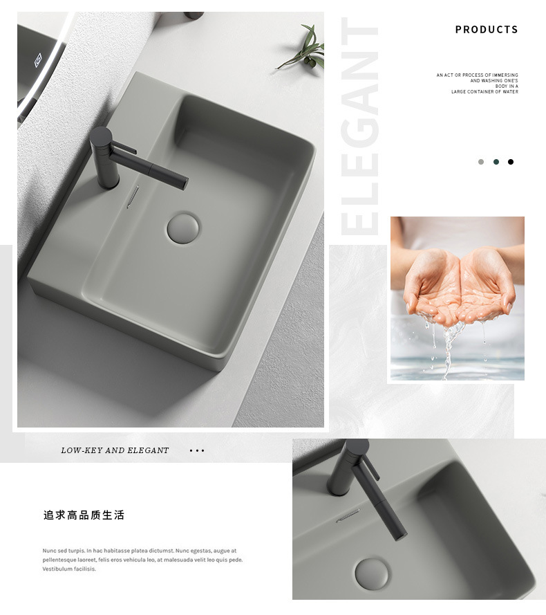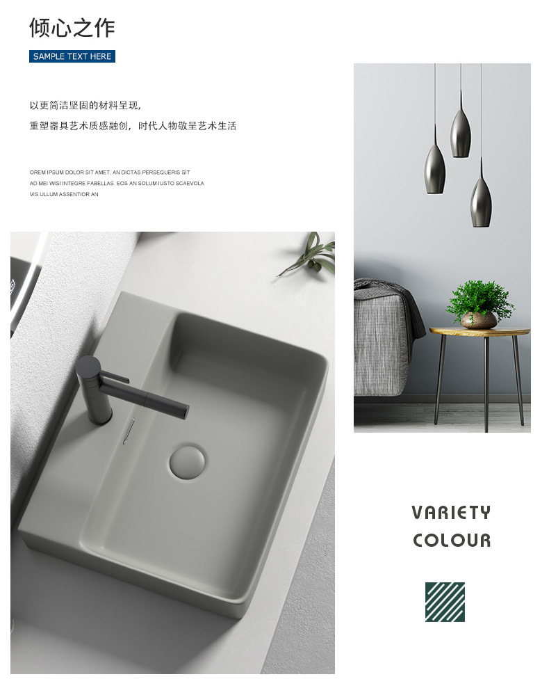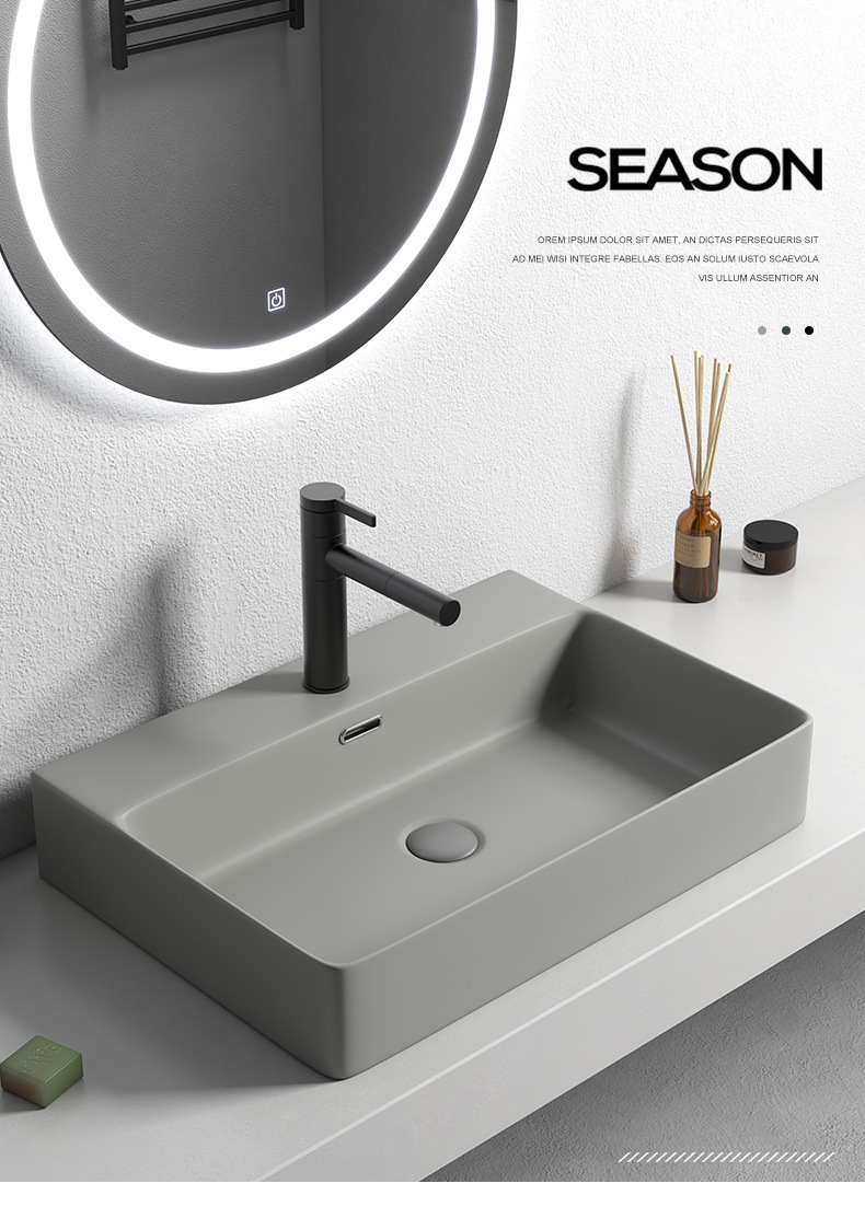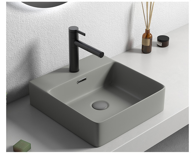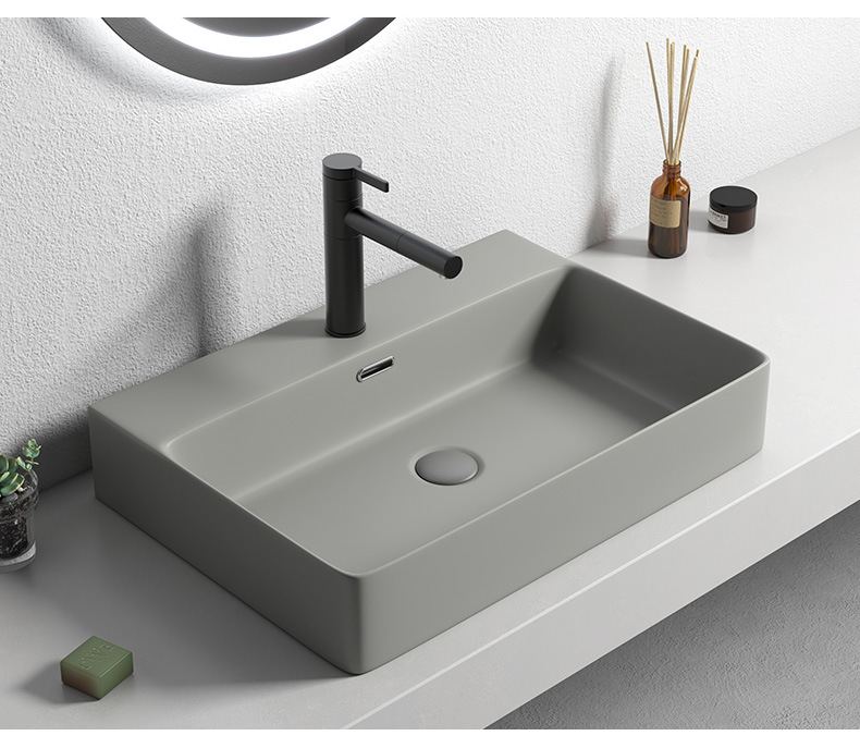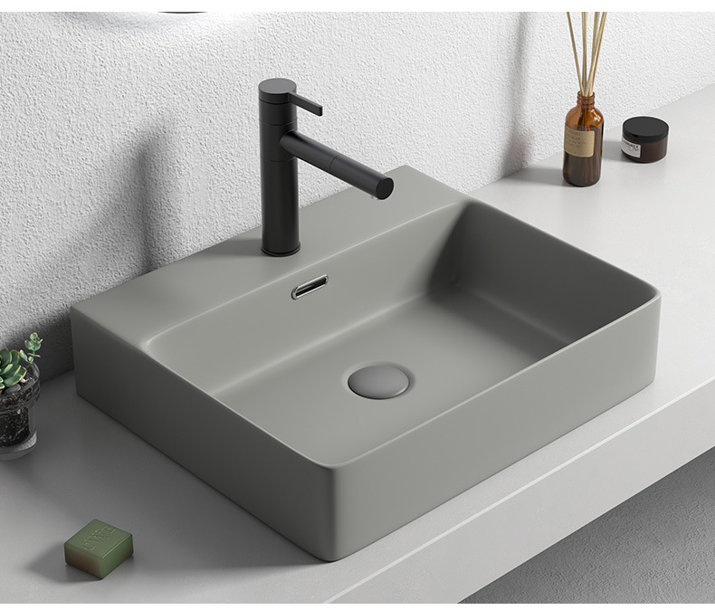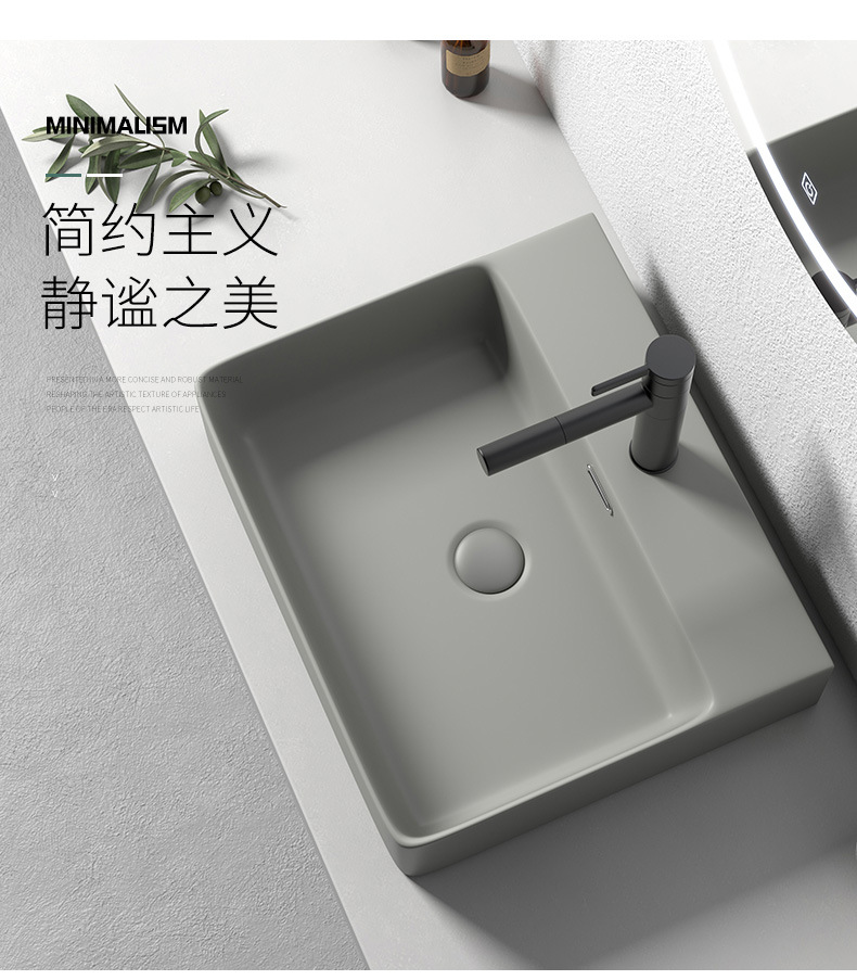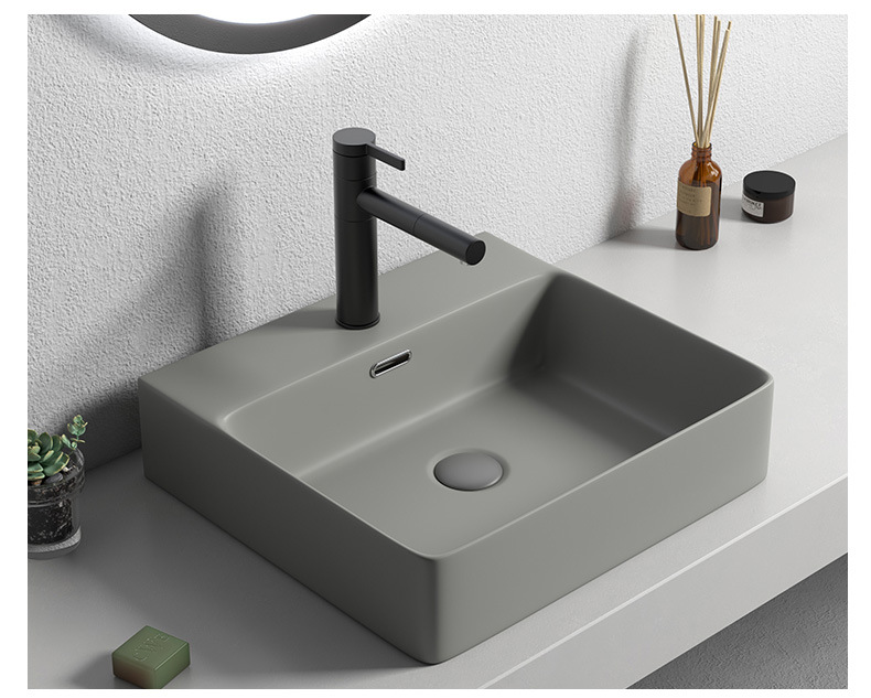 Mesa nórdica cuenca gris lavabo cuadrado de cerámica del hogar lavabo de gran tamaño lavabo único lavabo Baño