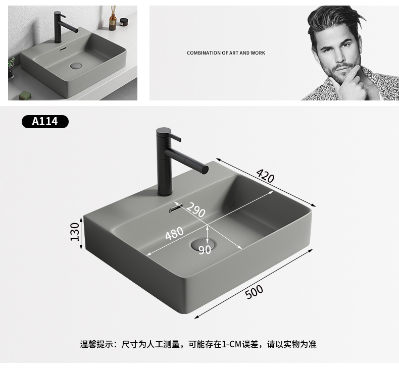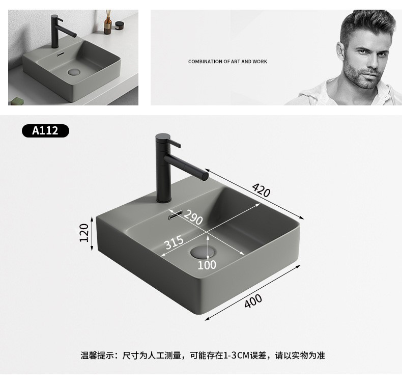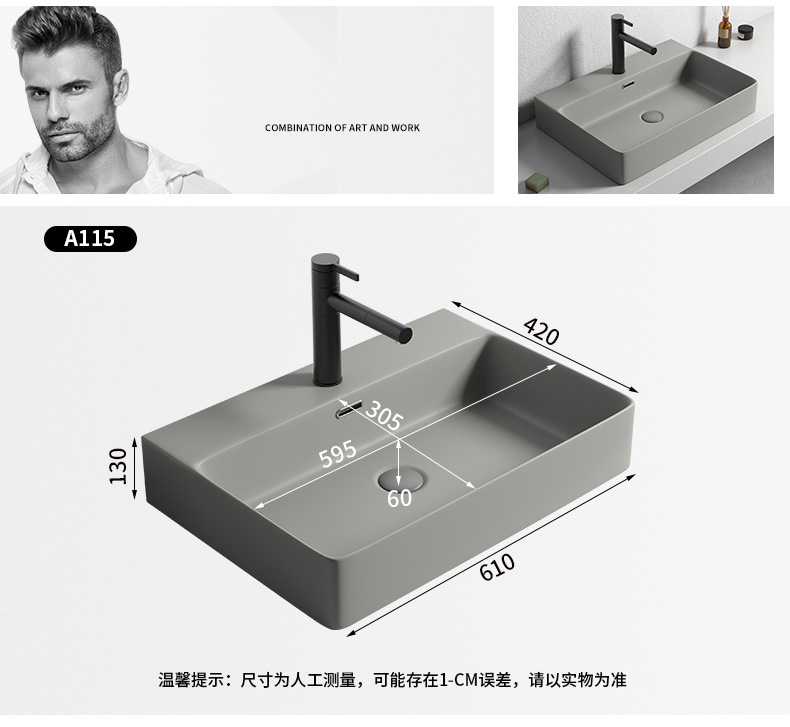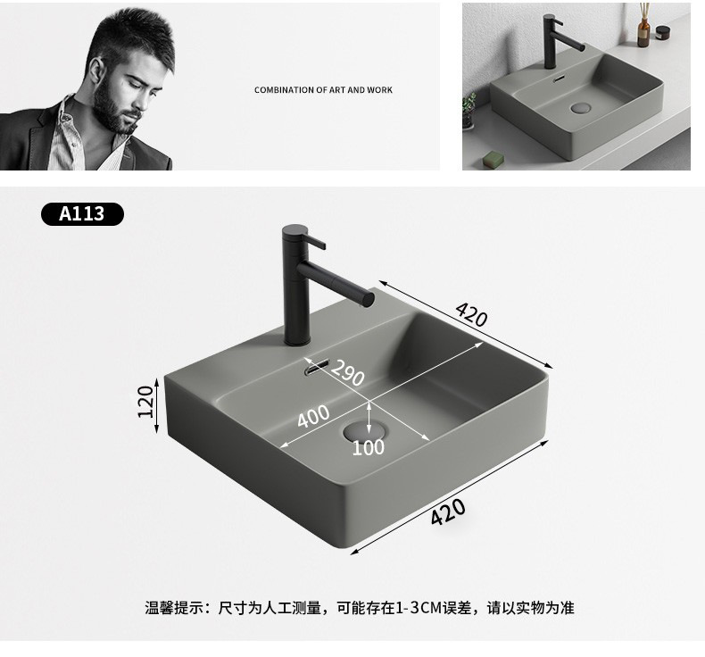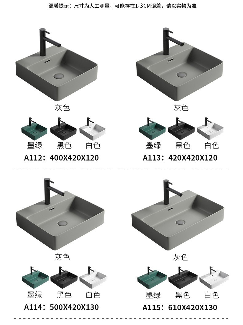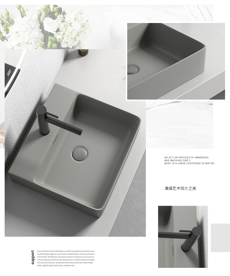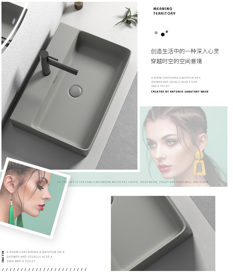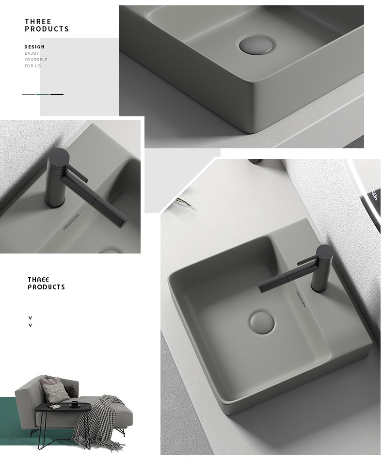 Mesa nórdica cuenca gris lavabo cuadrado de cerámica del hogar lavabo de gran tamaño lavabo único lavabo Baño