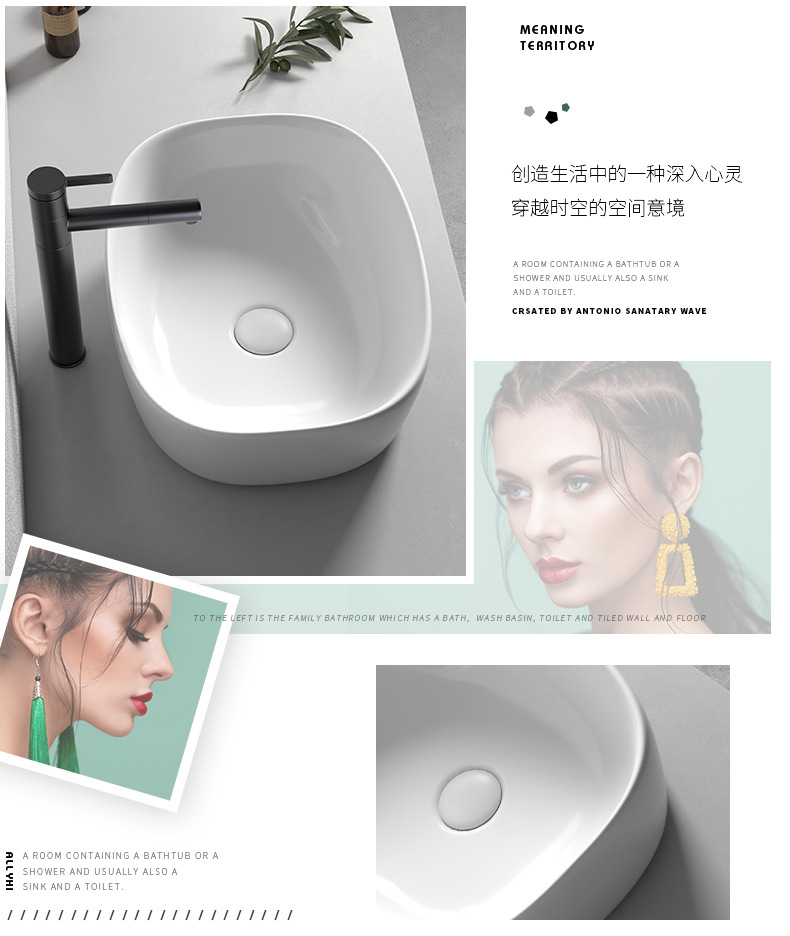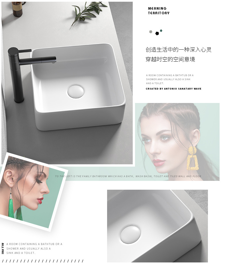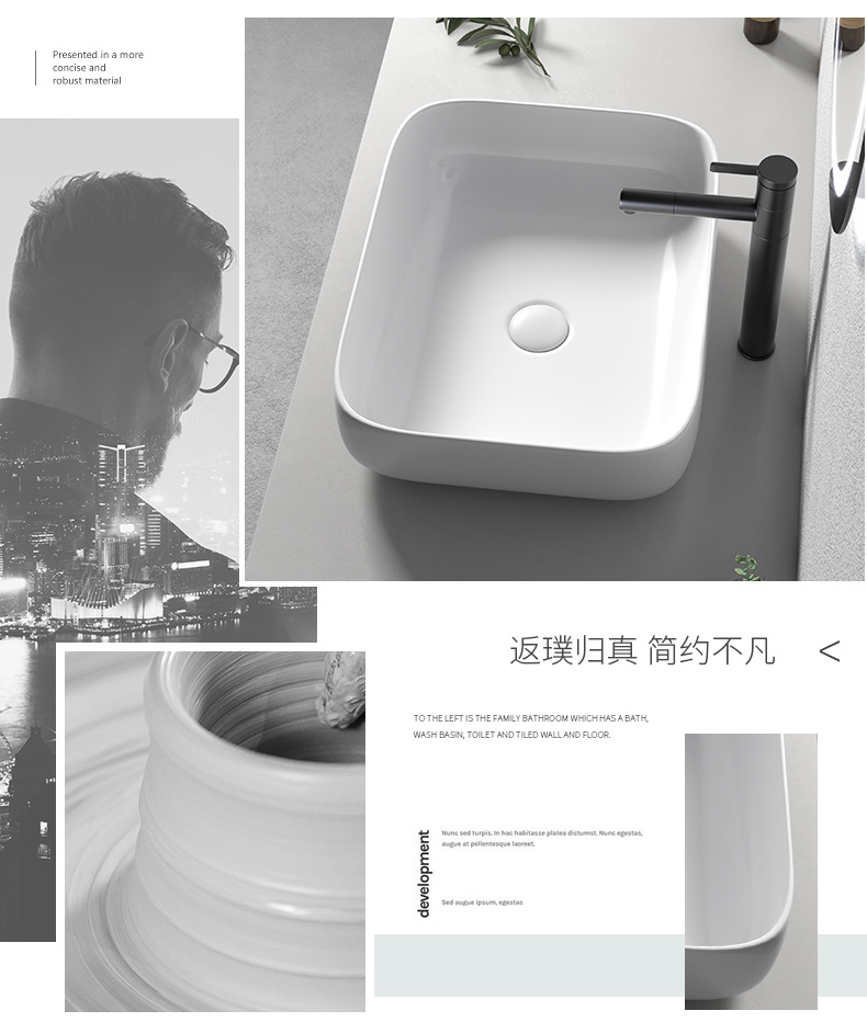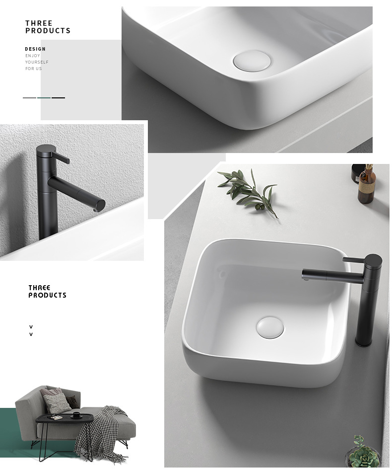 Mesa nórdica cuenca sola cuenca del hogar lavabo de cerámica Mesa cuenca baño cuadrado lavabo balcón lavabo