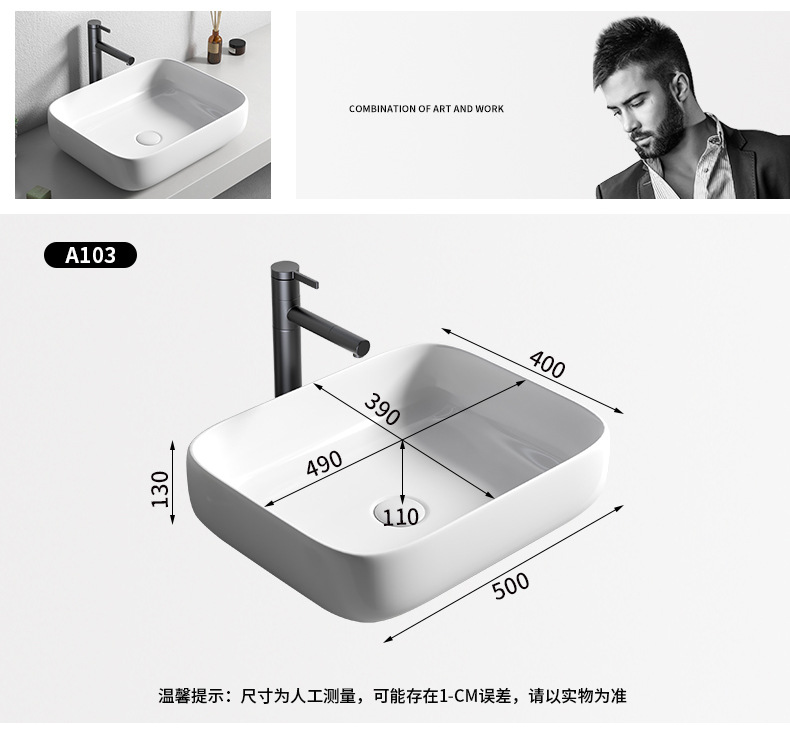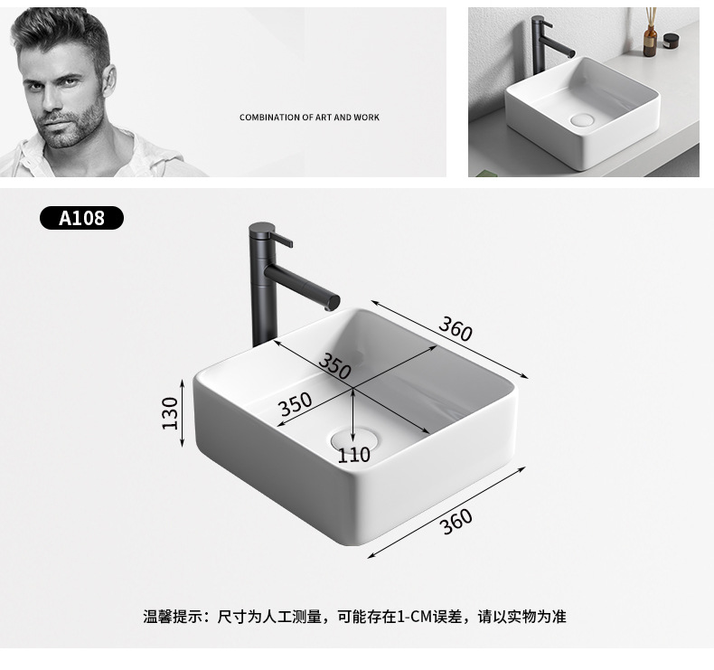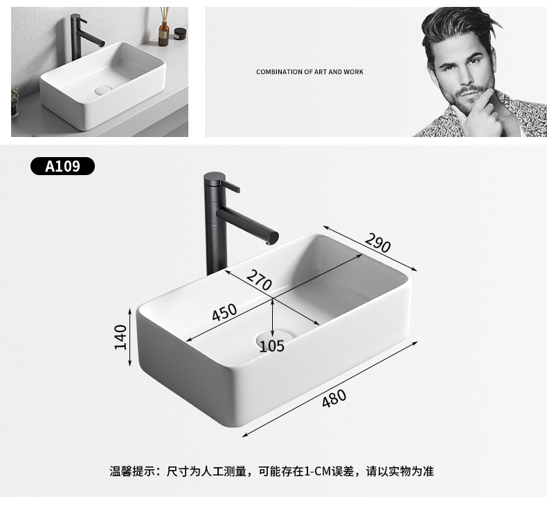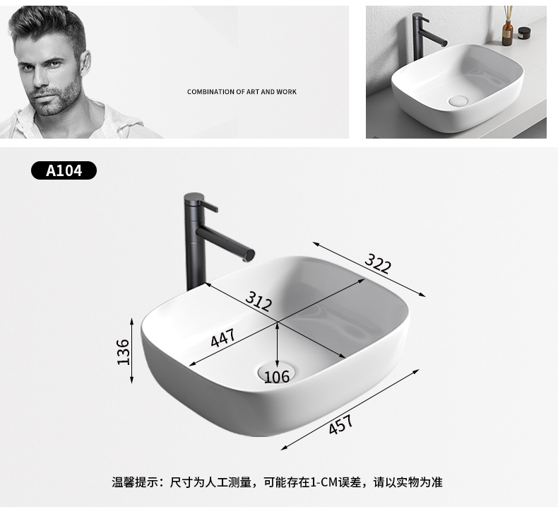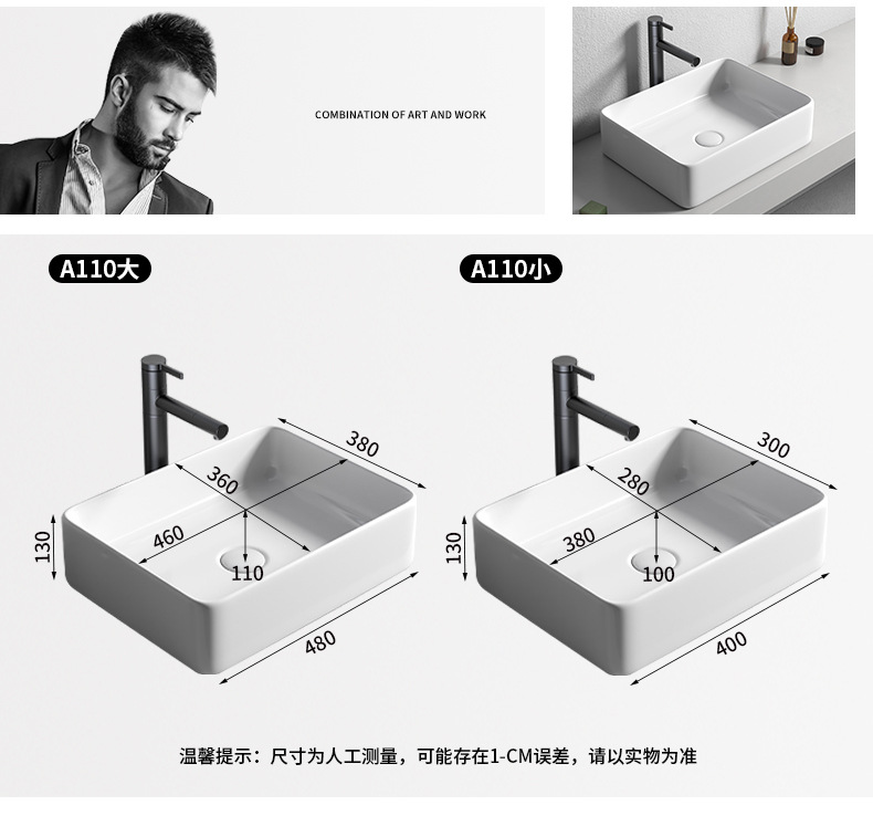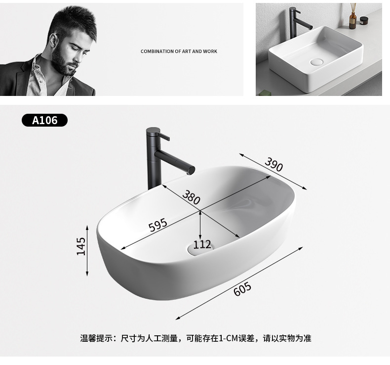 Mesa nórdica cuenca sola cuenca del hogar lavabo de cerámica Mesa cuenca baño cuadrado lavabo balcón lavabo