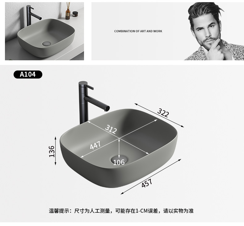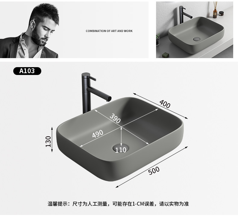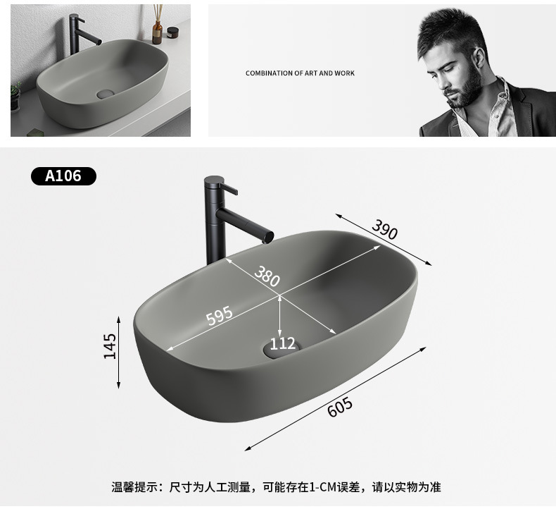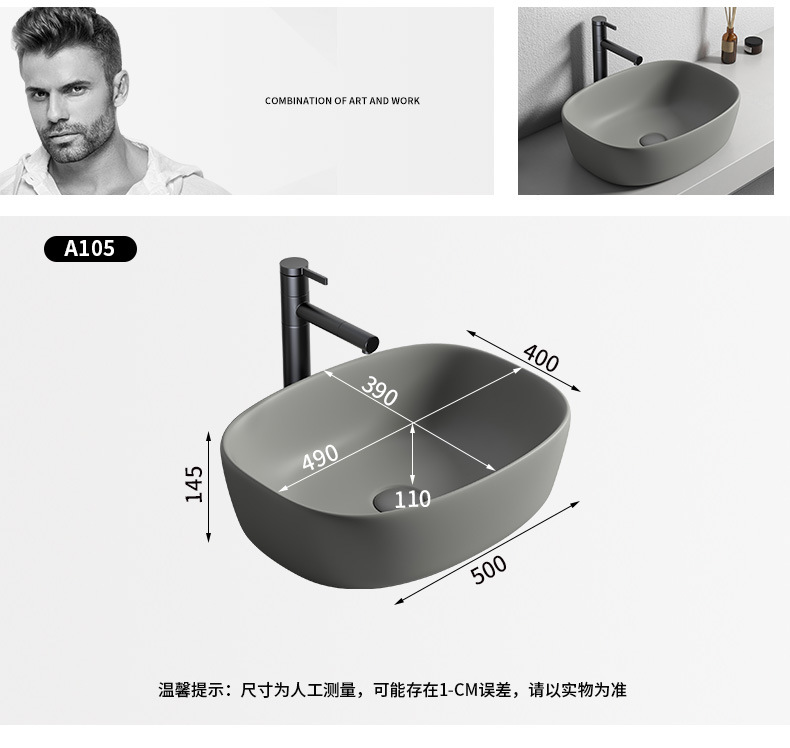Mesa nórdica lavabo de gran tamaño lavabo único baño lavabo simple hogar gris lavabo creativo