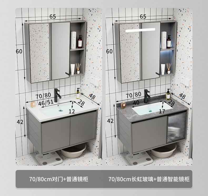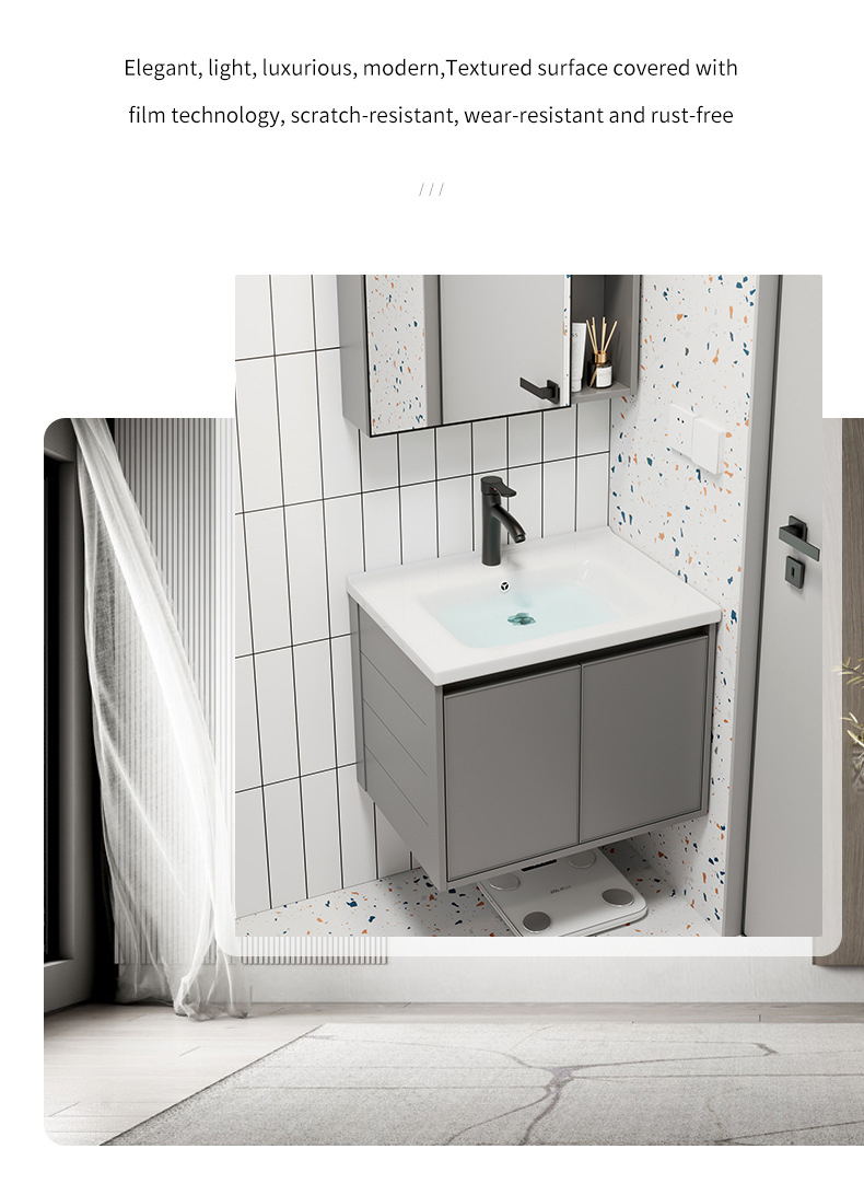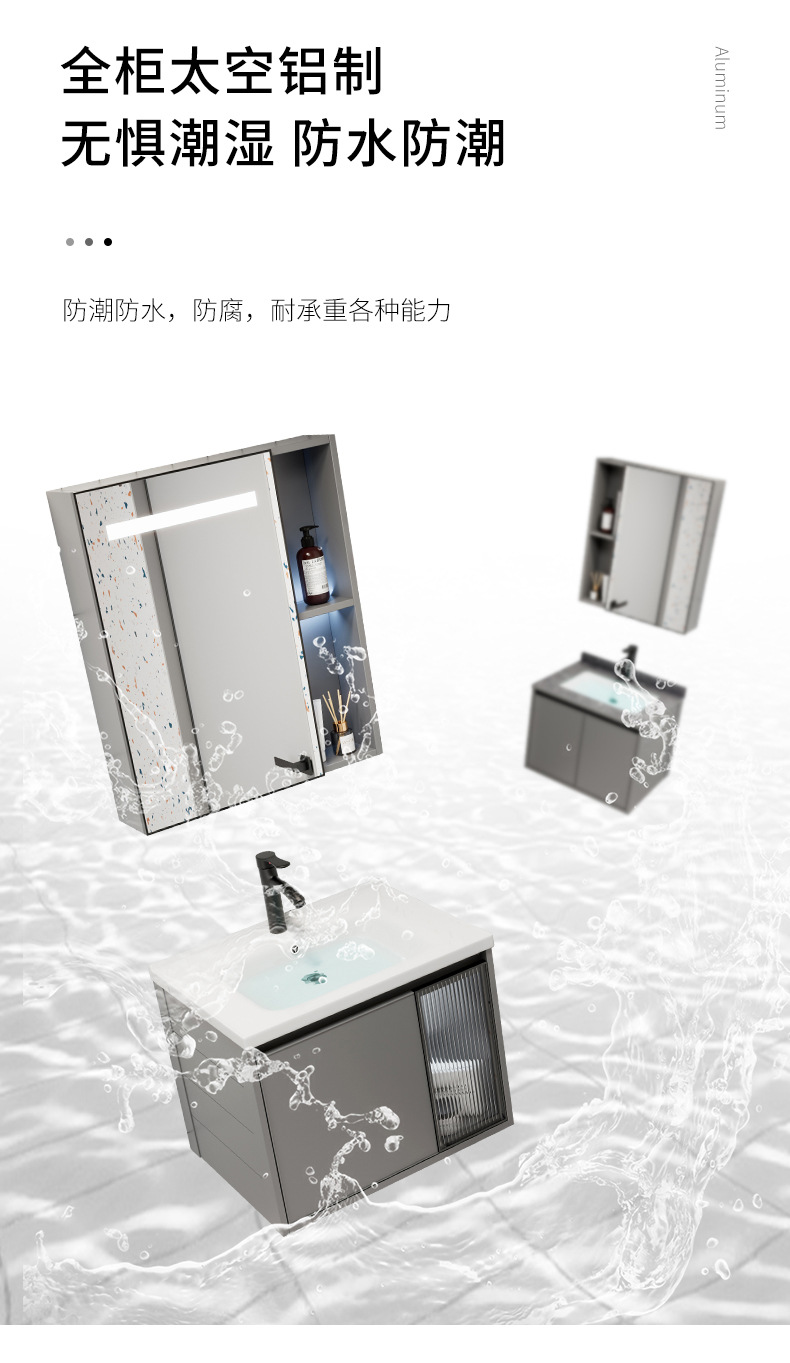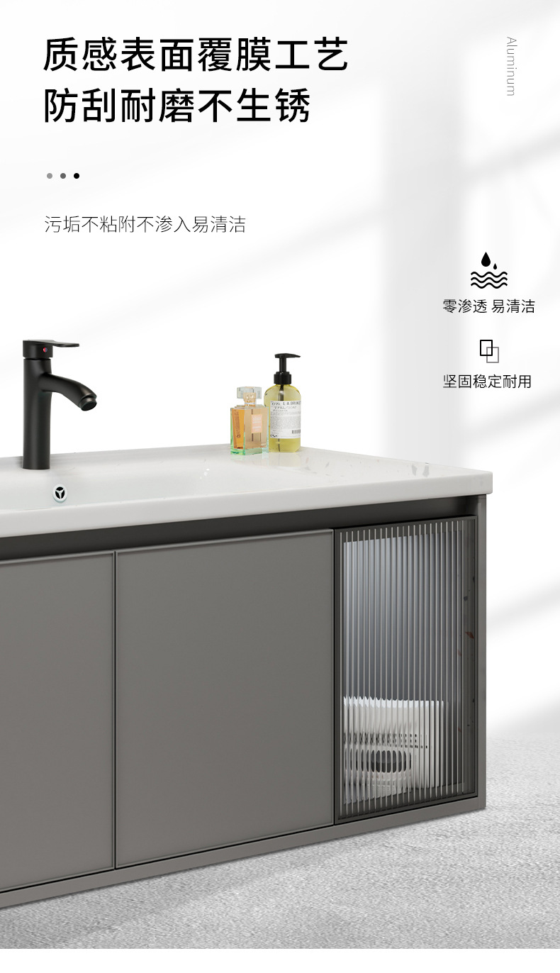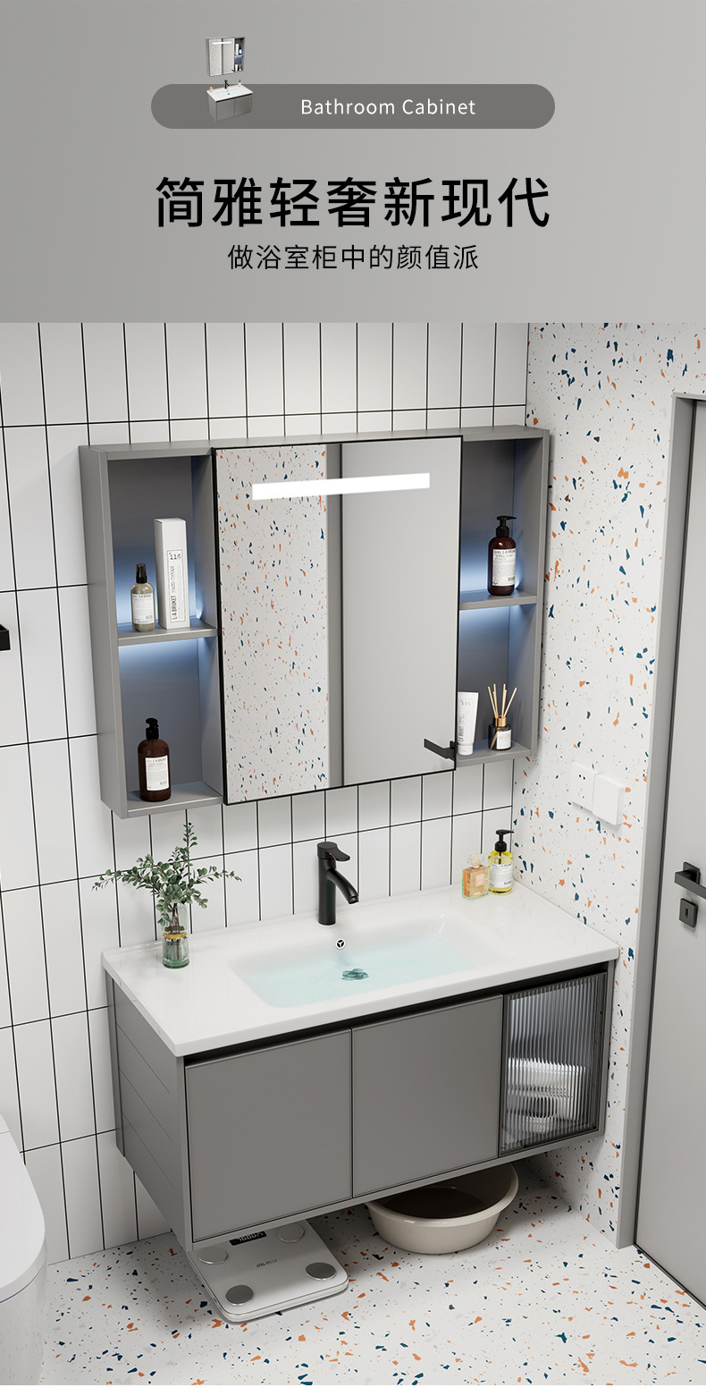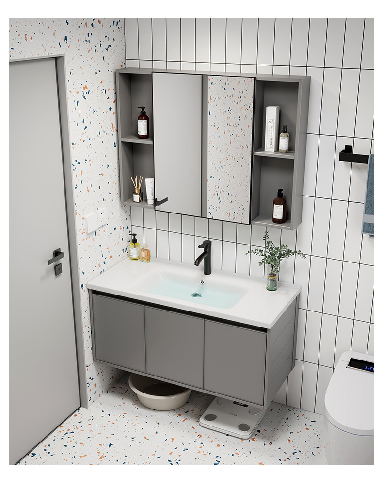 Moderno simple espacio aleación de aluminio baño gabinete combinación baño lavabo cerámica lavabo integrado lavabo