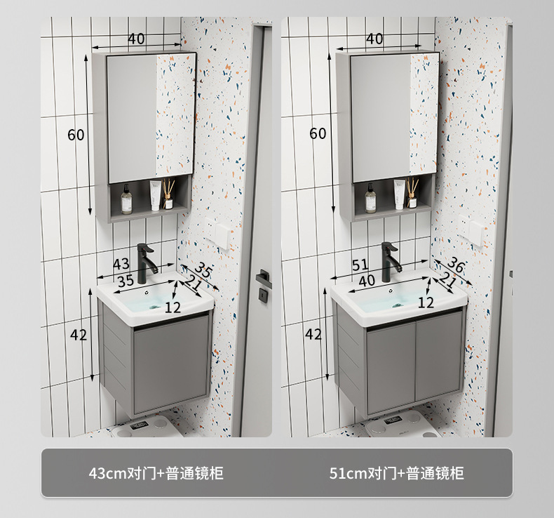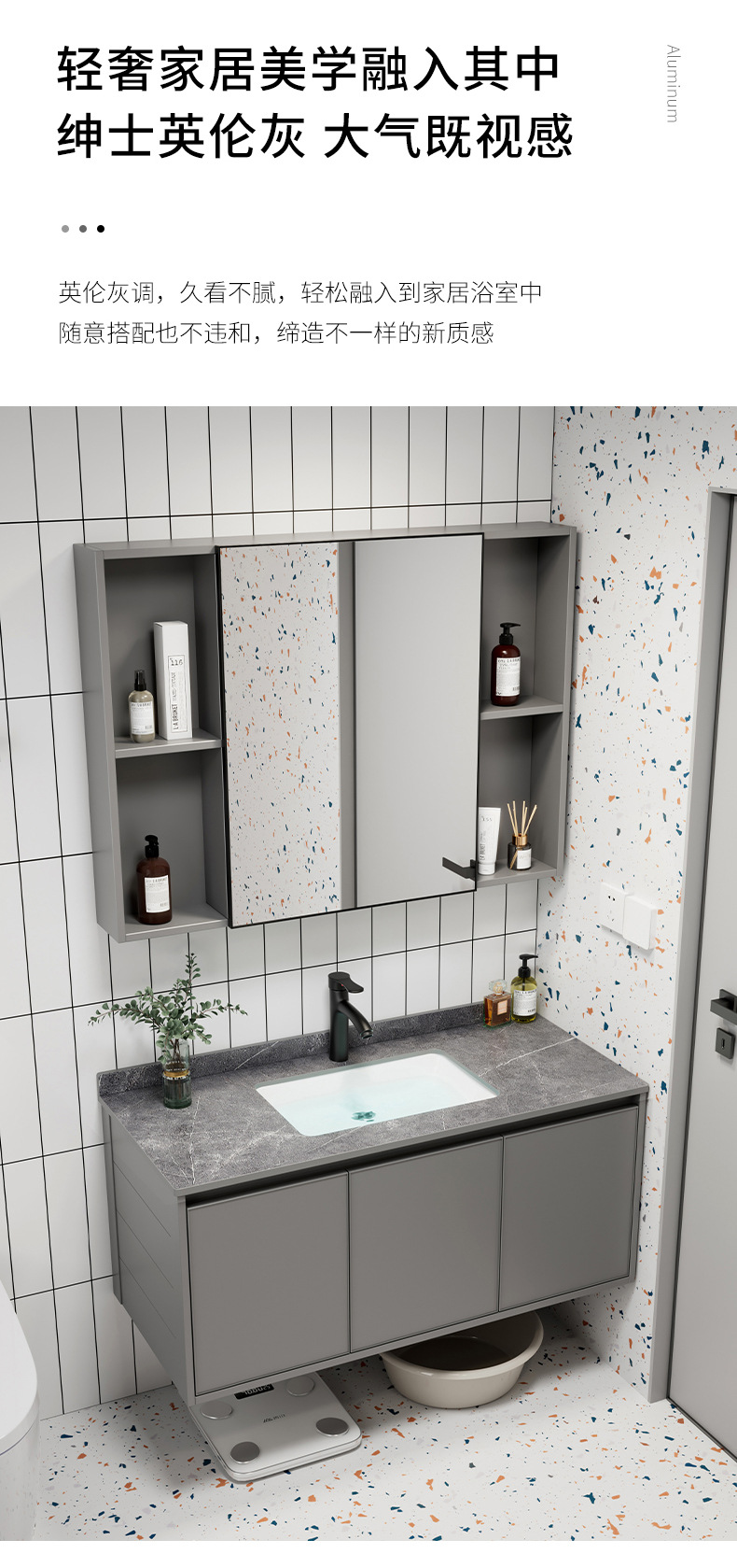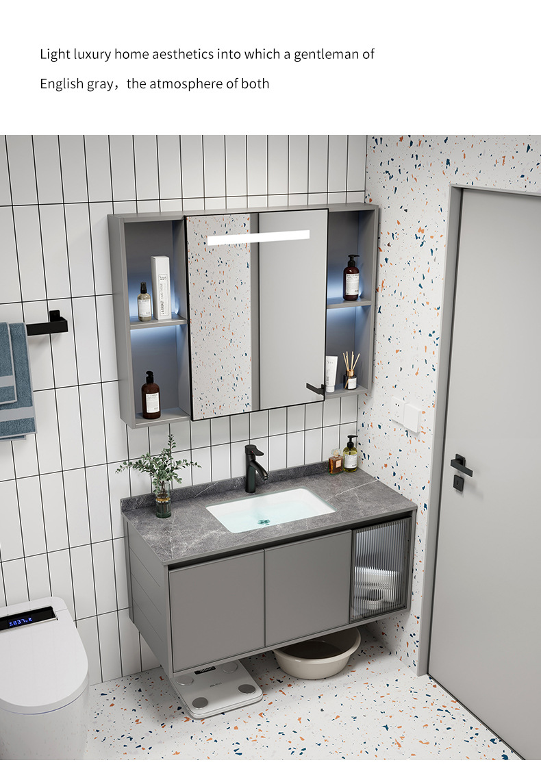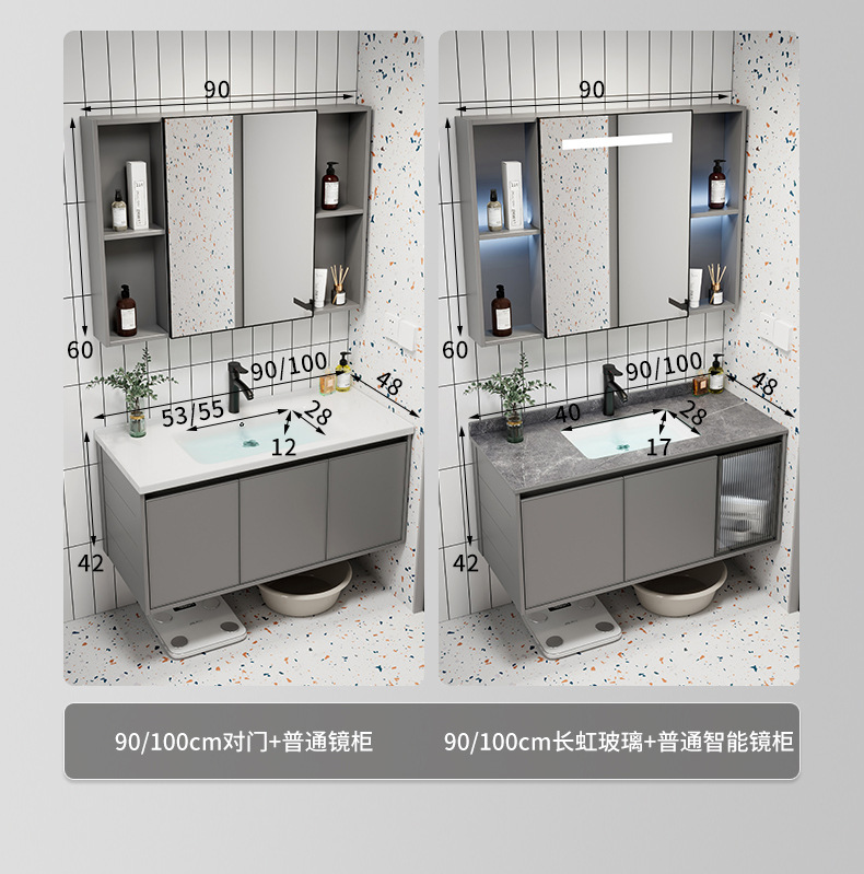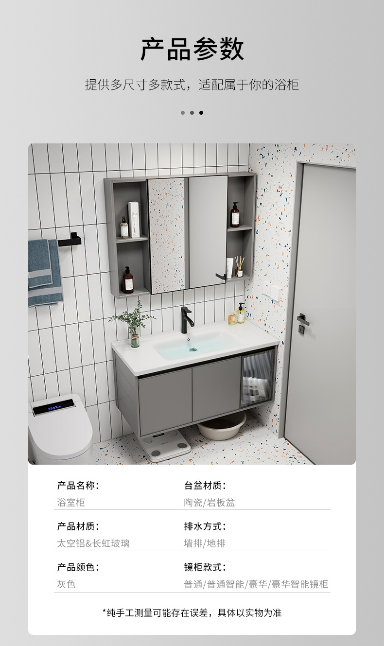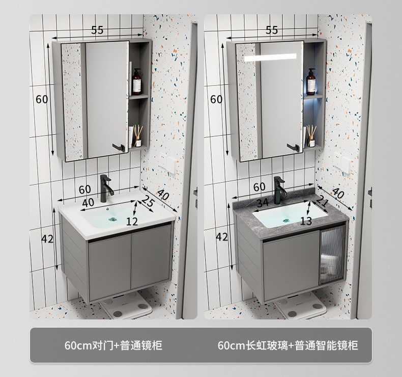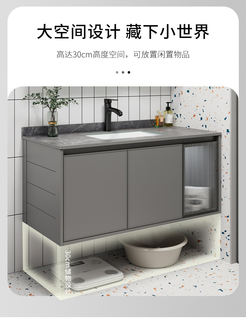 Moderno simple espacio aleación de aluminio baño gabinete combinación baño lavabo cerámica lavabo integrado lavabo